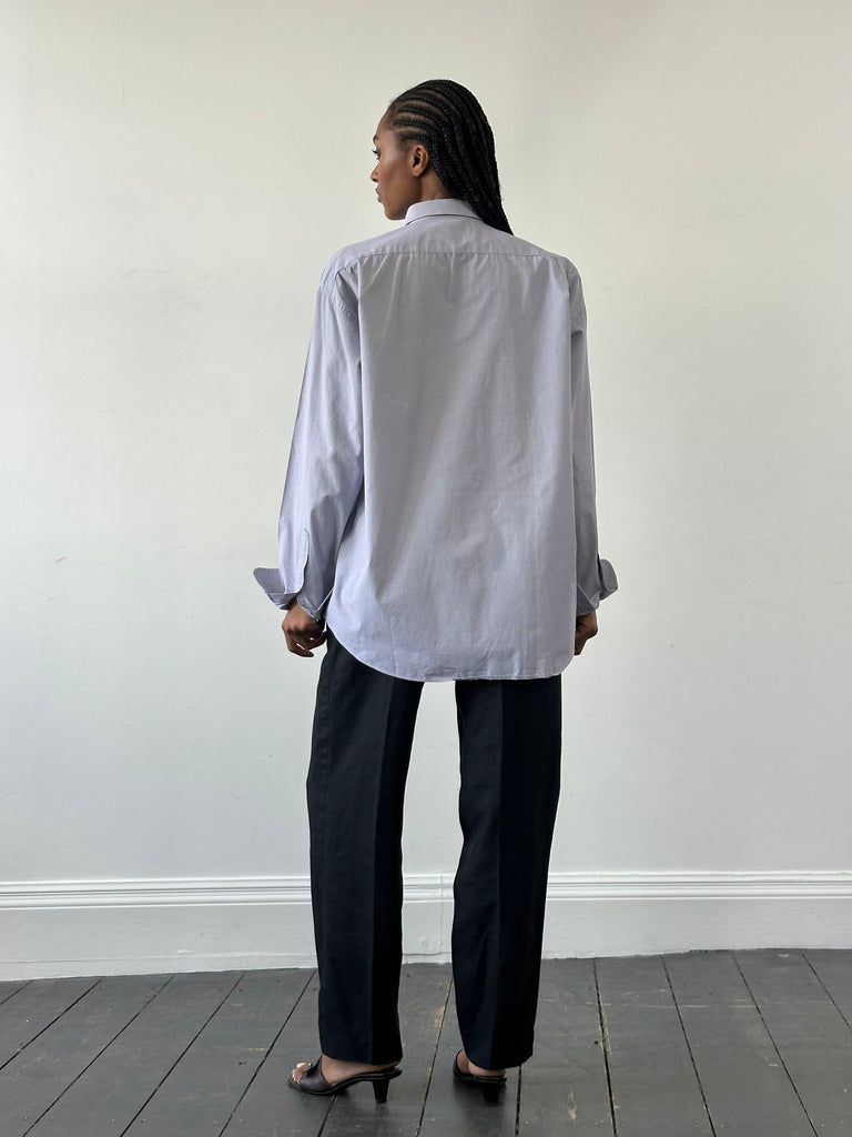 A late 90s/early 2000s Yves Saint Laurent pour homme shirt in a cotton blend, cut with a relaxed silhouette and tonal logo embroidery.