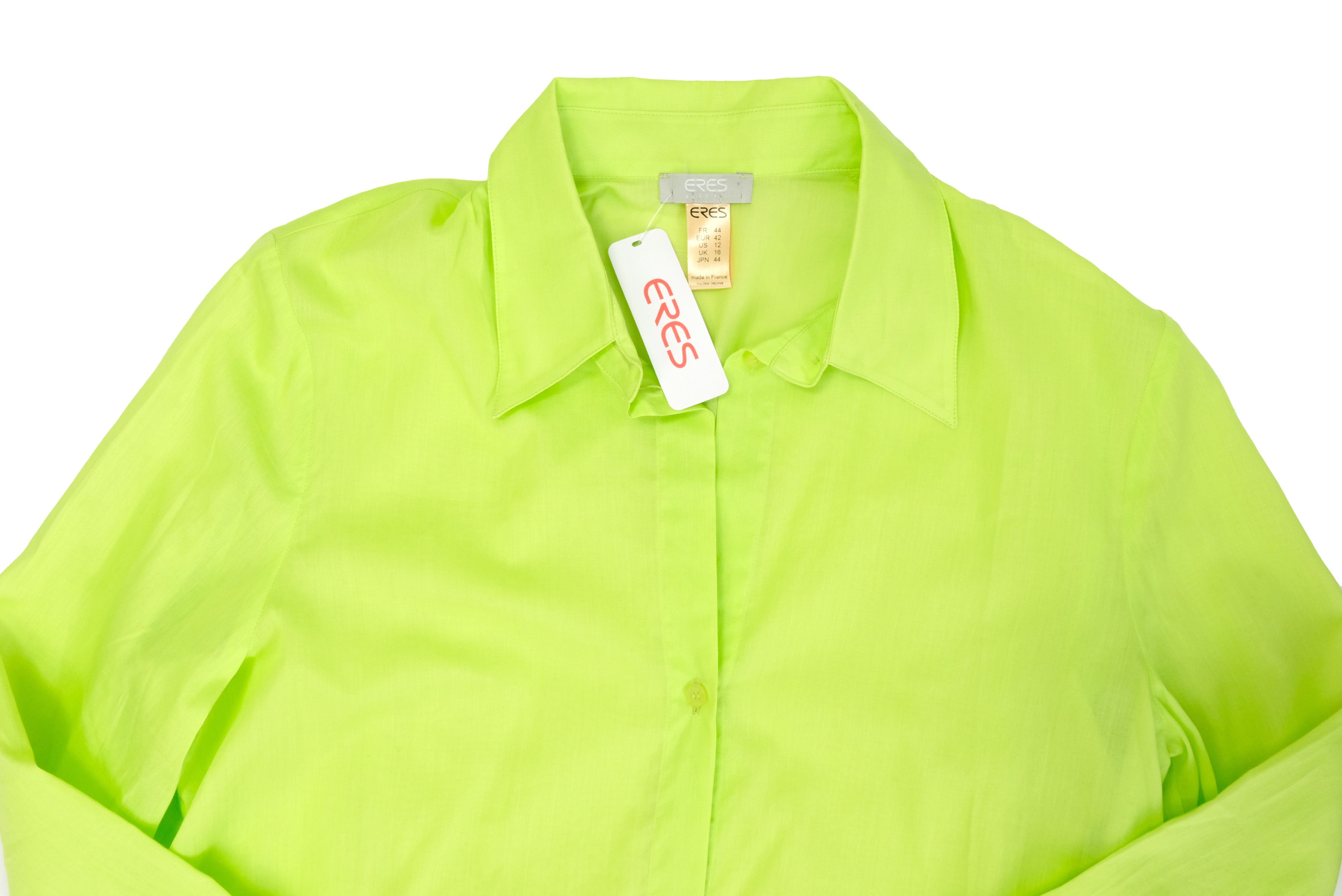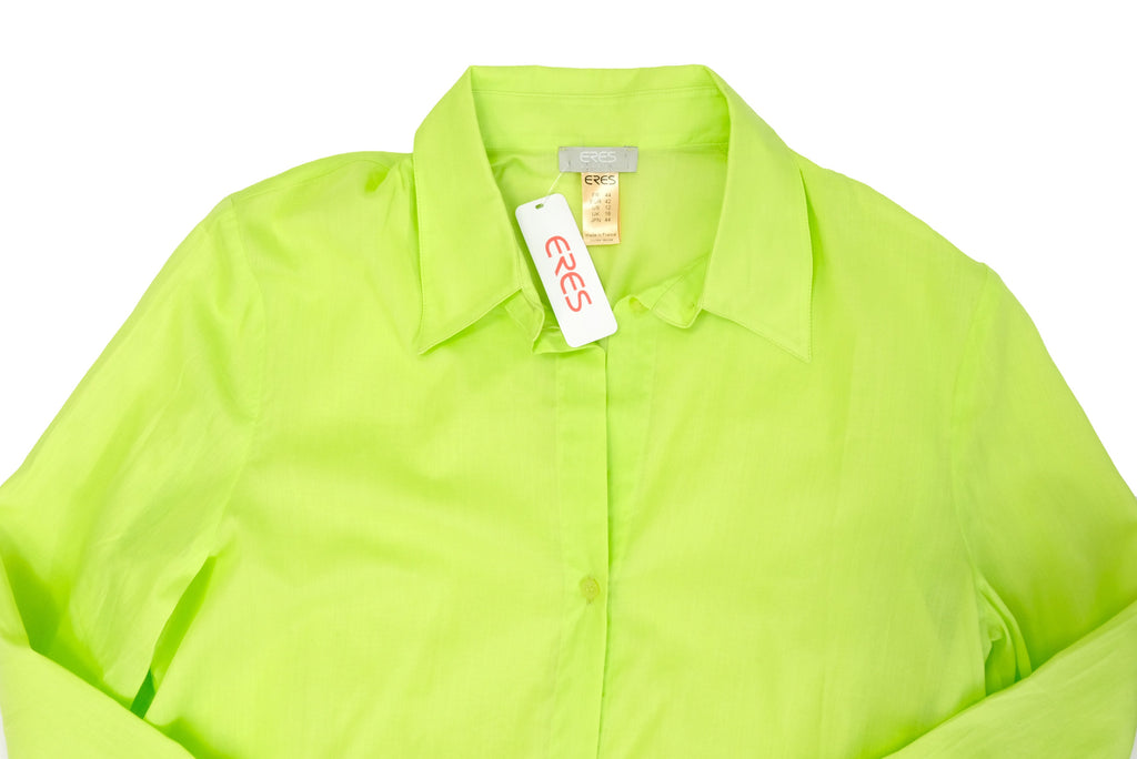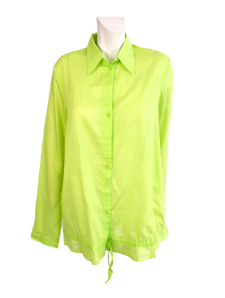 Eres Beach Shirt in Semi Sheer Lime Green Cotton, UK16