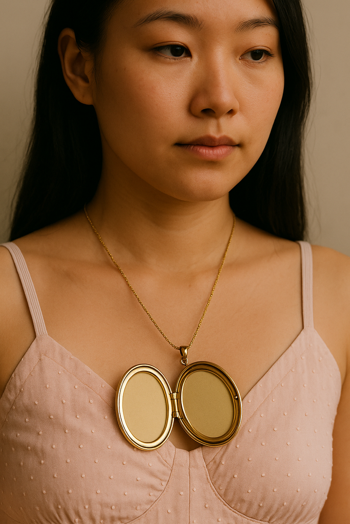 This exquisite 1940s 14 carat gold brushed locket pendant features a distinctive oval shape with a finely etched floral motif on the front. Designed to open to a double photo inside, it carries a rich history as a “sweetheart charm,” traditionally gifted by soldiers to their loved ones. Accompanied by an authentic 14 carat gold vintage chain, this piece combines timeless elegance with sentimental heritage. Perfect for collectors and those appreciating vintage craftsmanship, it is a rare example of mid-century romantic jewellery.