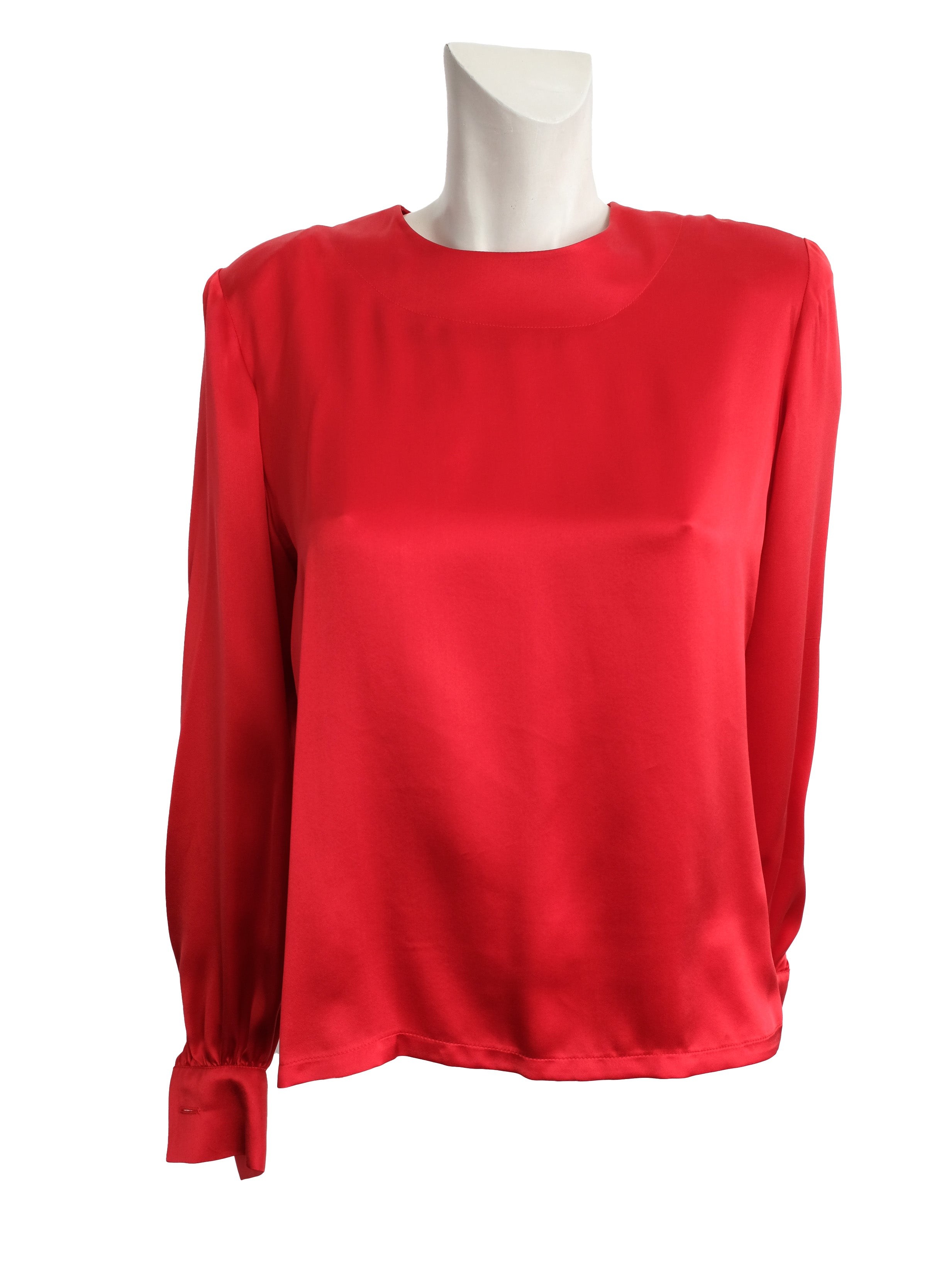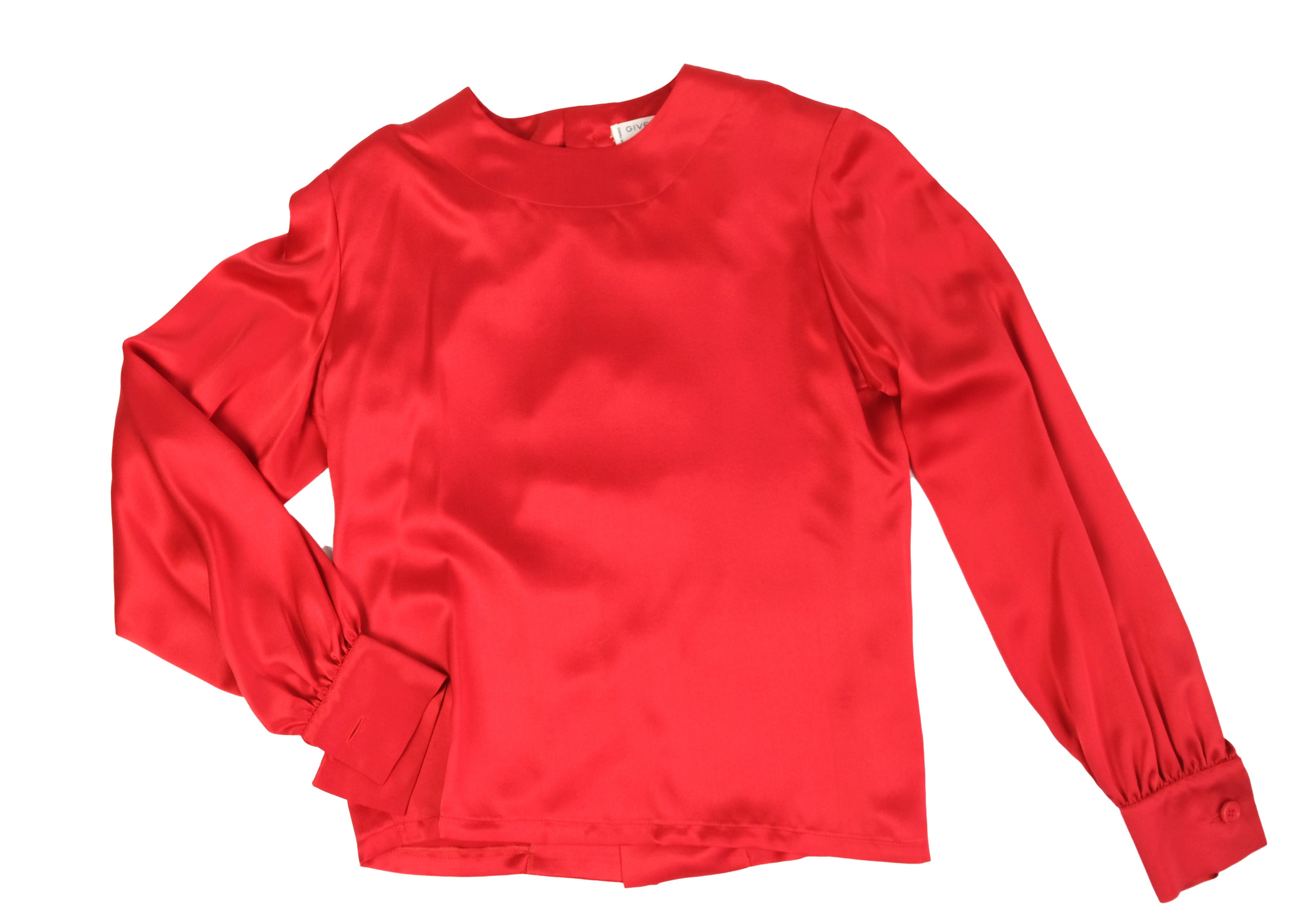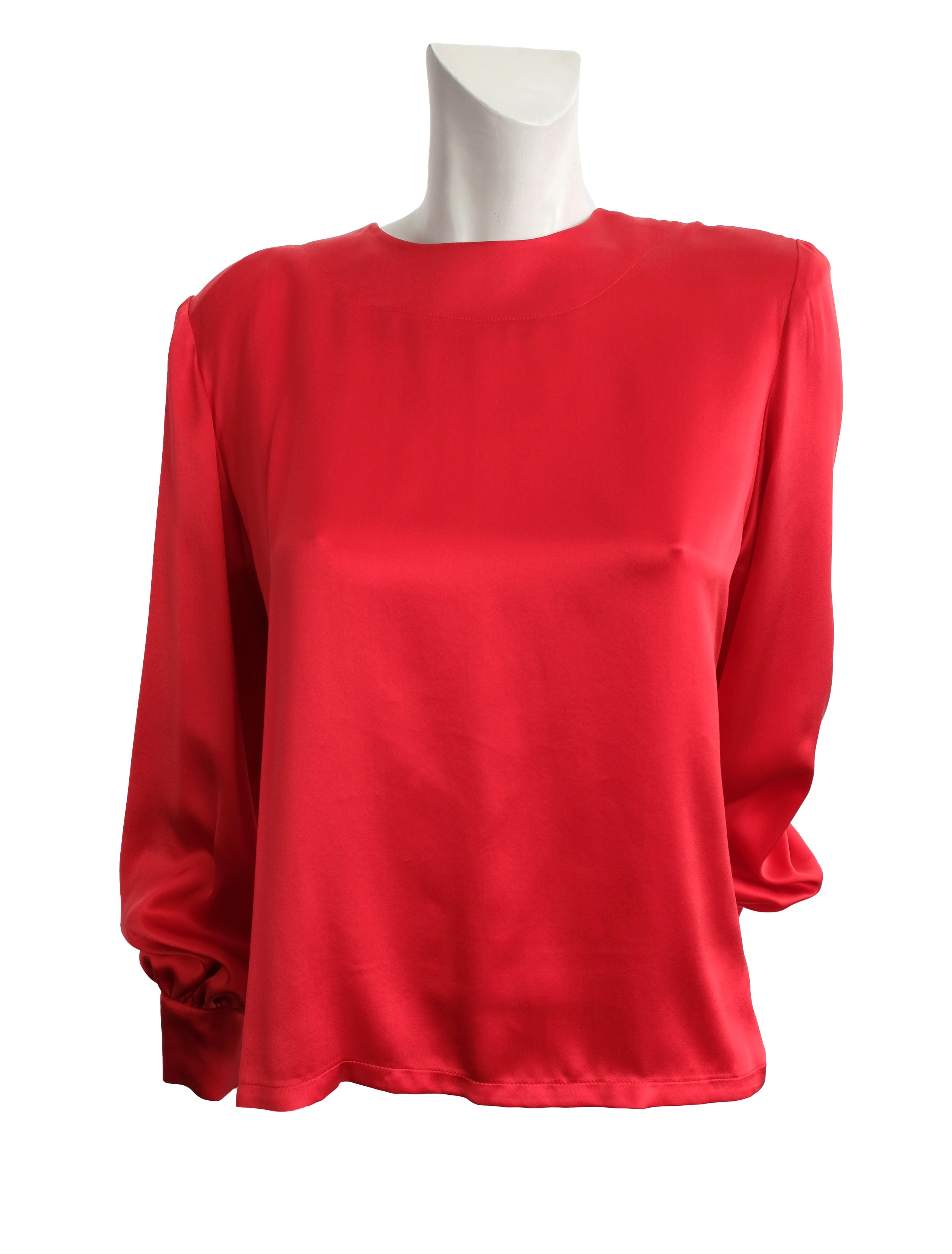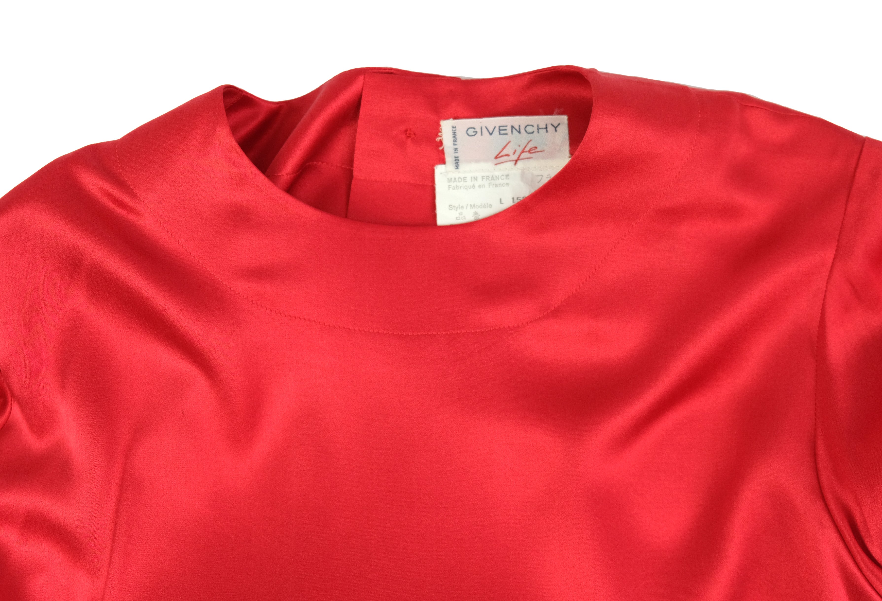 A pristine 1980s vintage blouse by Givenchy, in vivid scarlet silk satin.