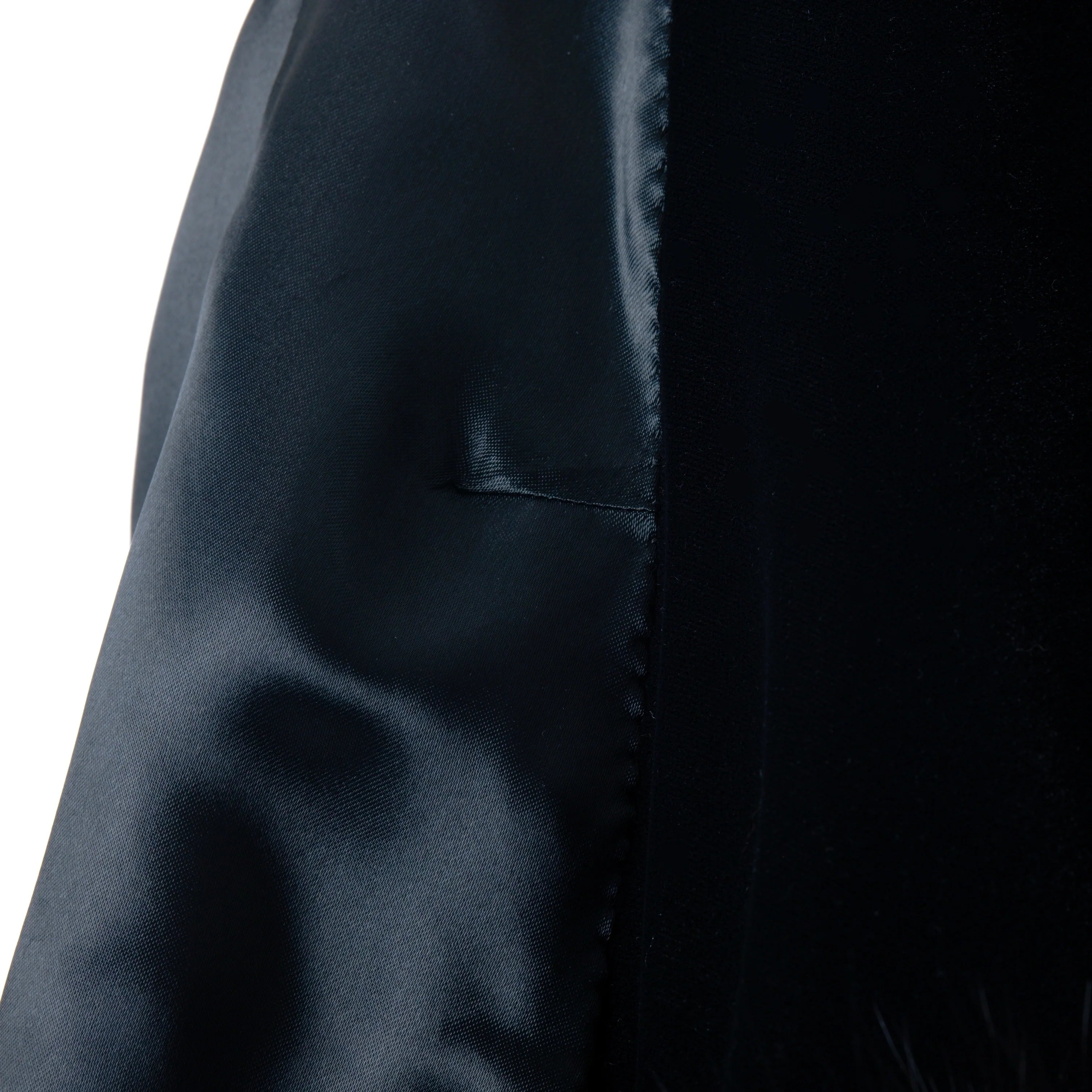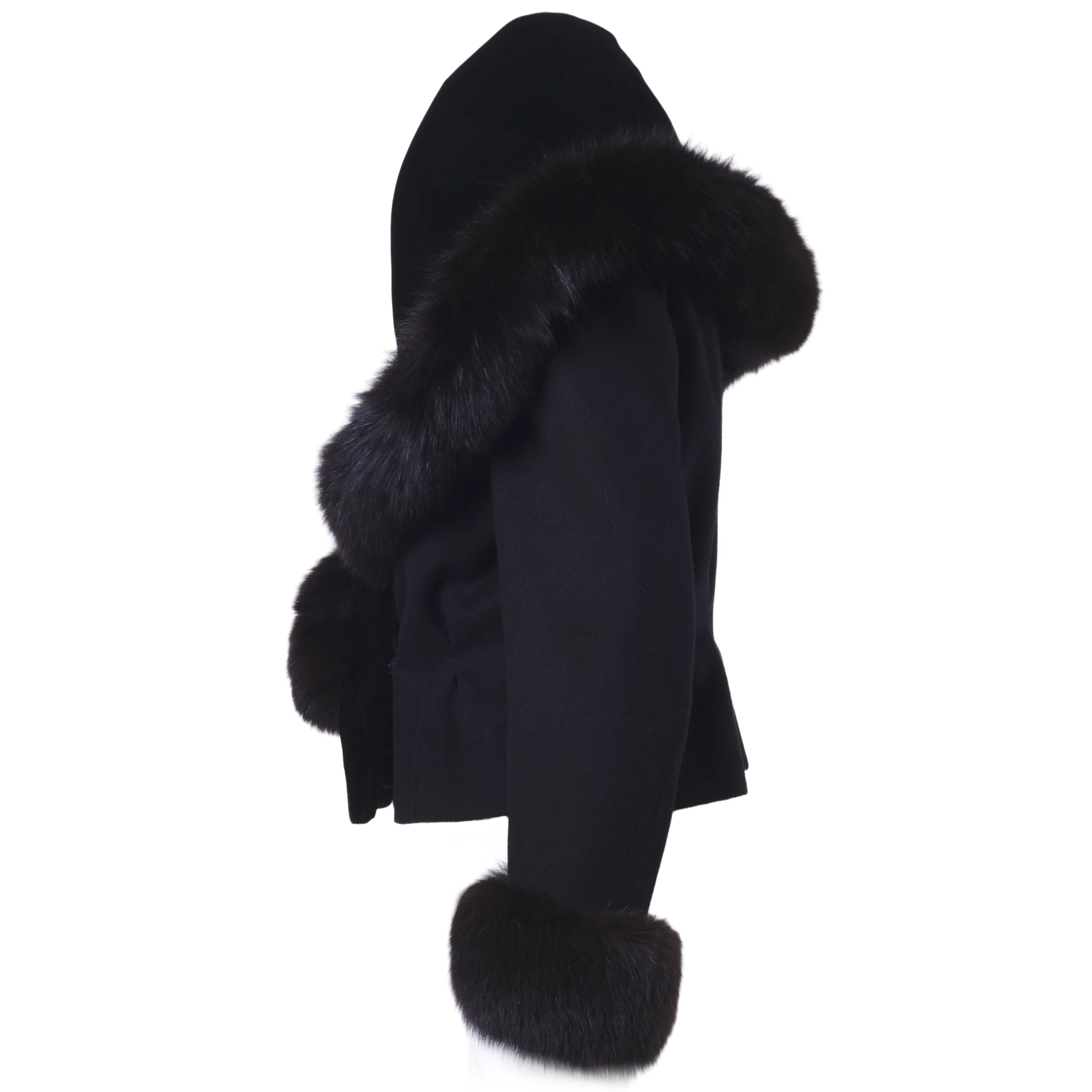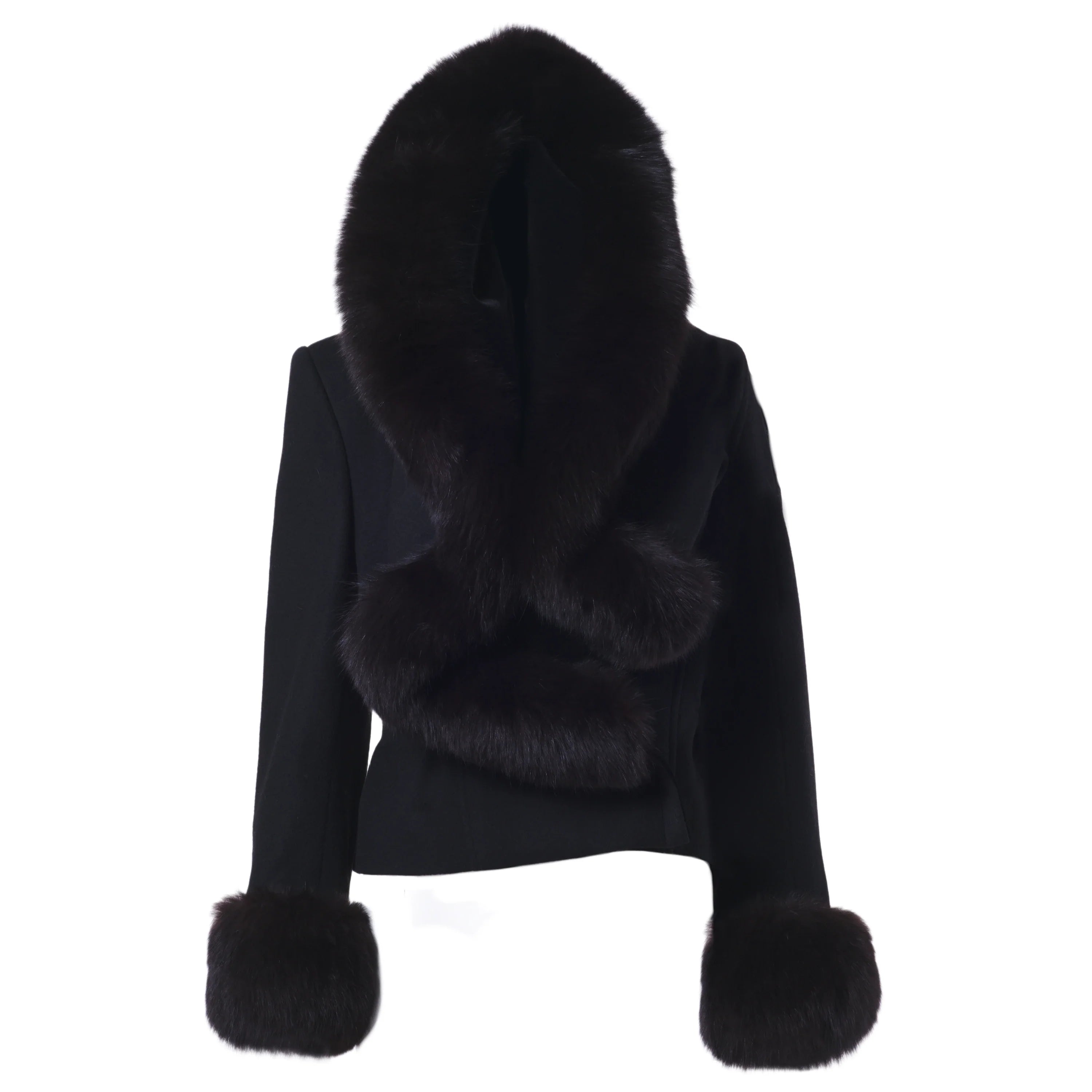 Elegant black couture jacket by Mario Borsato, defined by a refined tailored silhouette and luxurious fur trim along the collar and cuffs. A statement yet timeless piece, designed to elevate evening looks and sophisticated winter styling.
