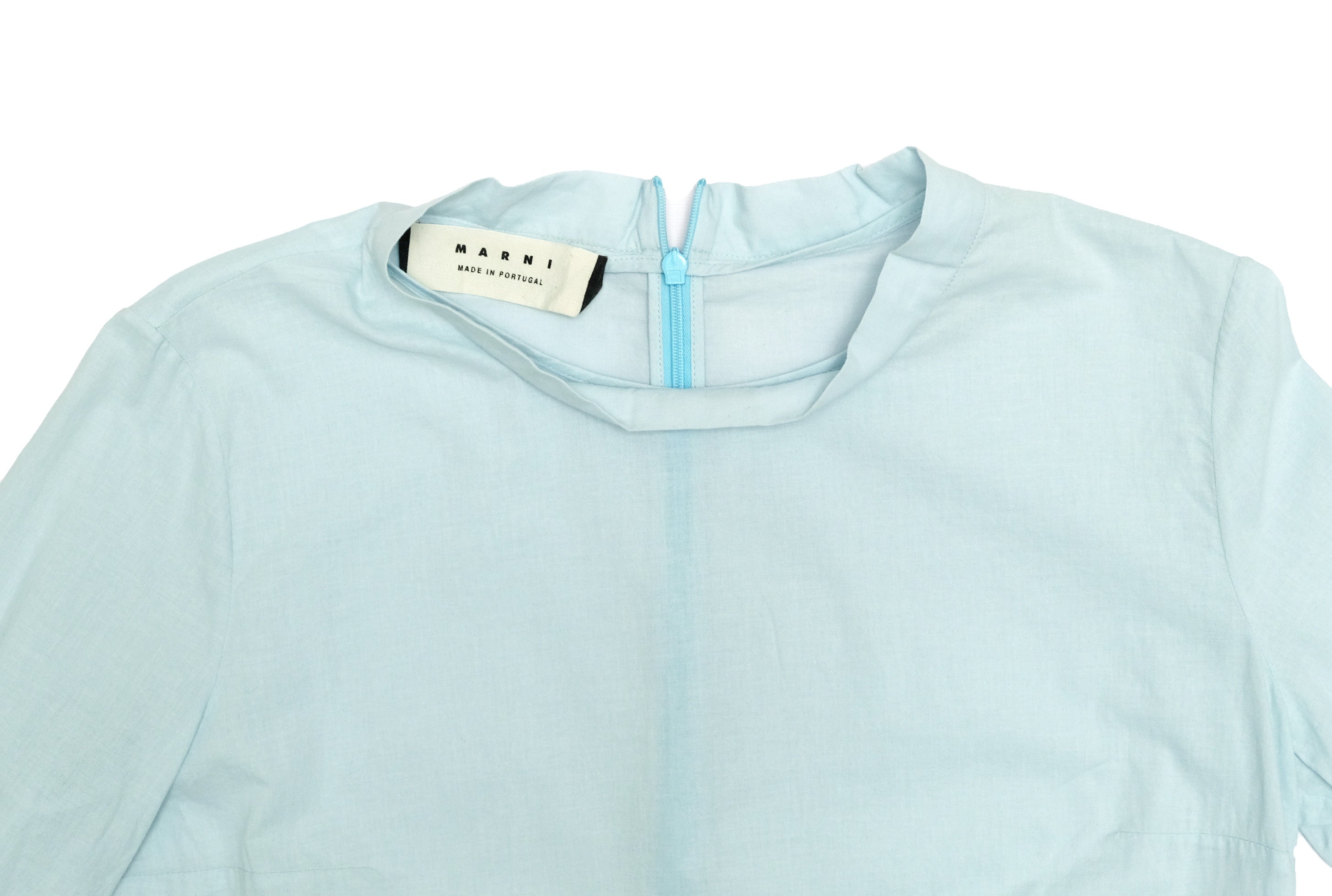 A lovely fresh summery smock top by Marni in ice blue fine cotton.