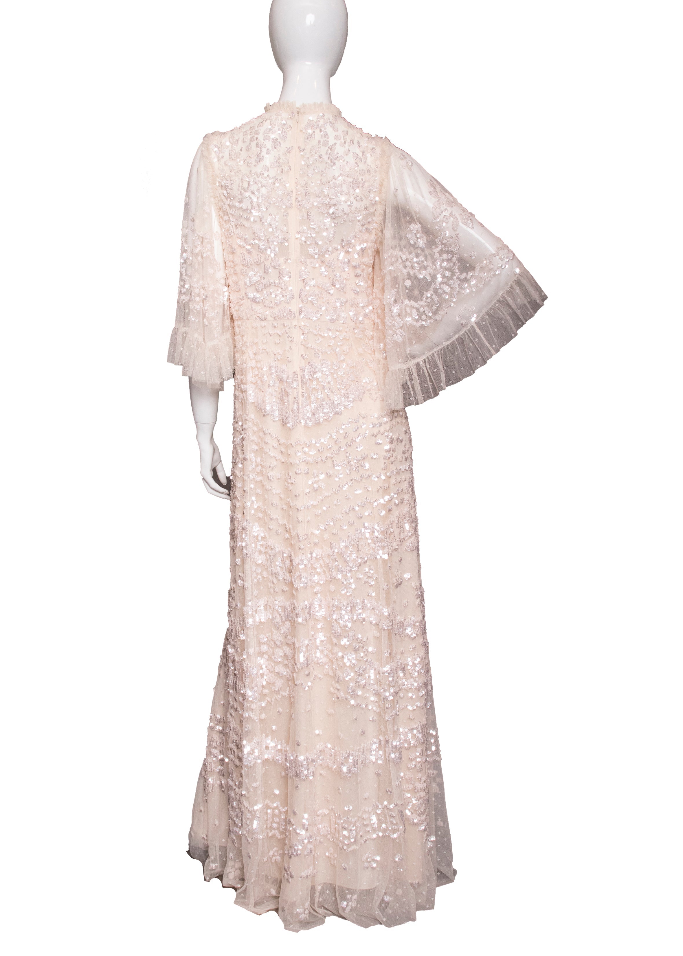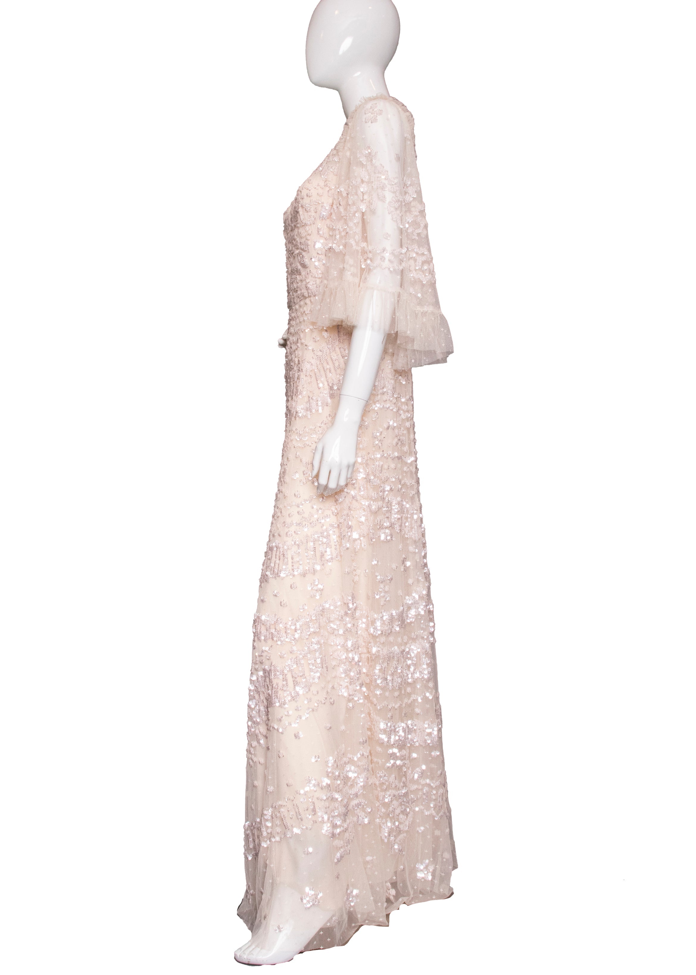 Celebrity Owned Needle & Thread Blush Sequin & Beaded Maxi Dress.
