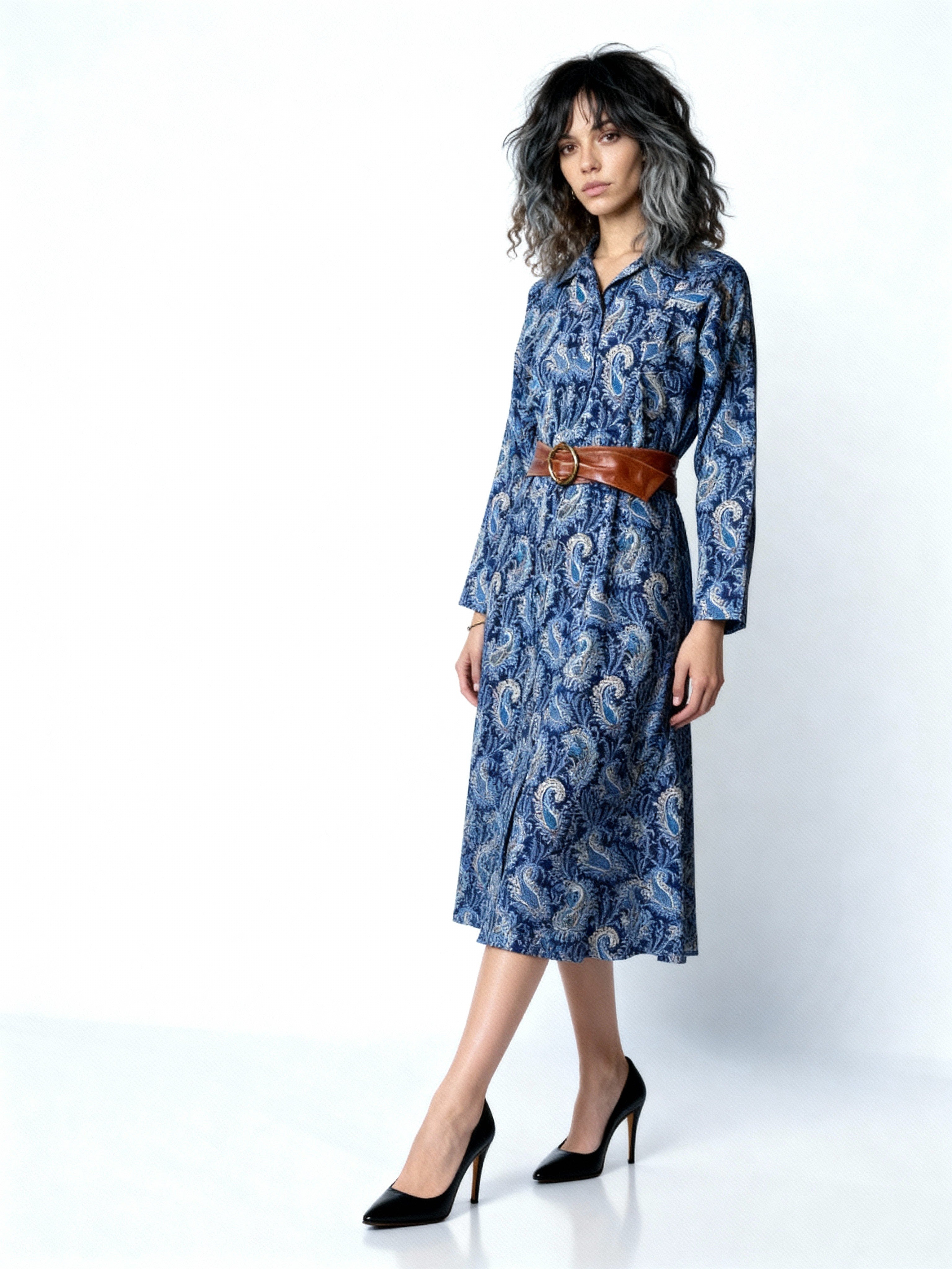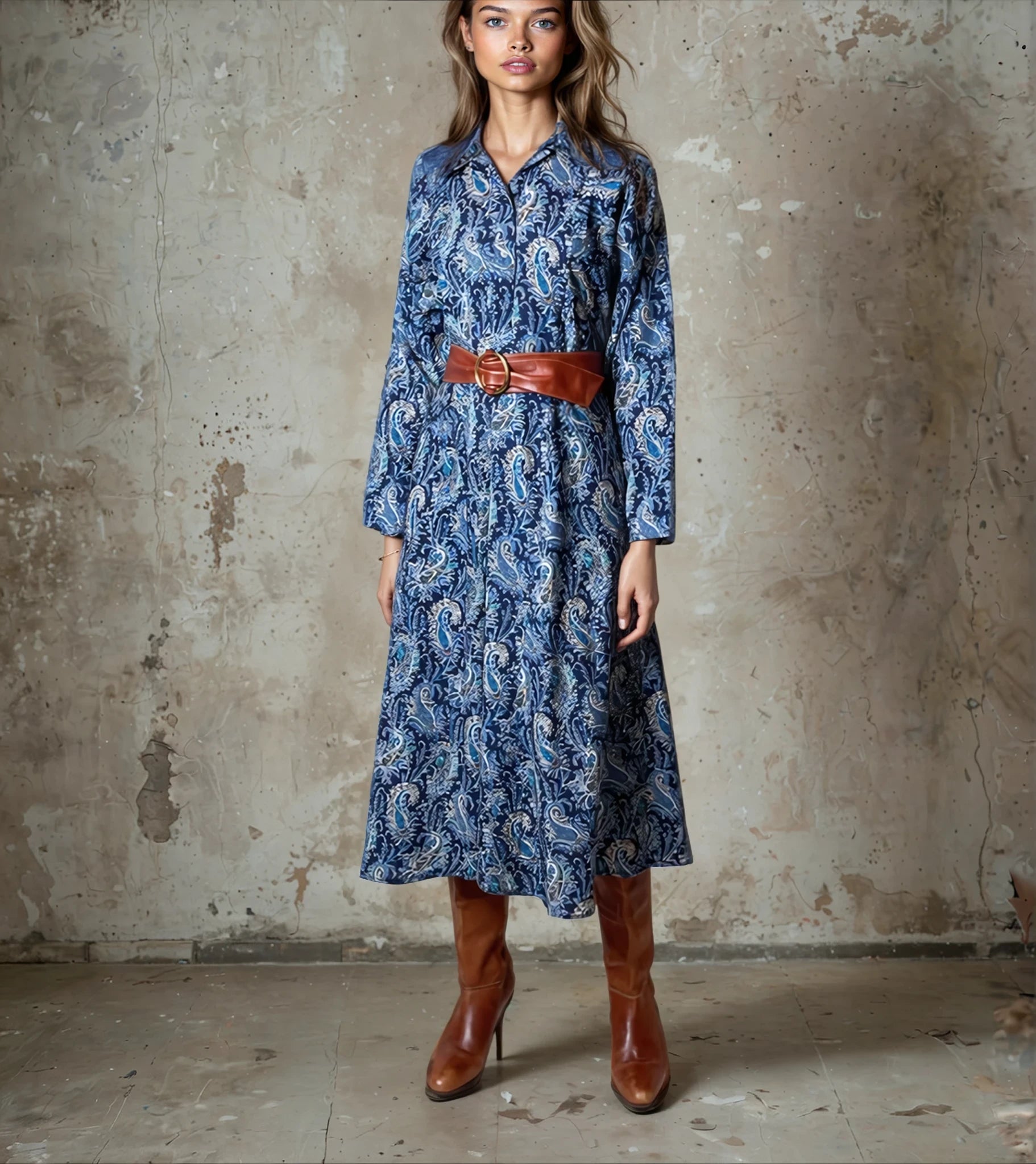 This Original Vintage 1970's Liberty Print 100% Wool Paisley Print Blue Dress is in great condition. It has a button up collar and would fit a UK size 10 - 12 so please do check the measurements to avoid disappointment.