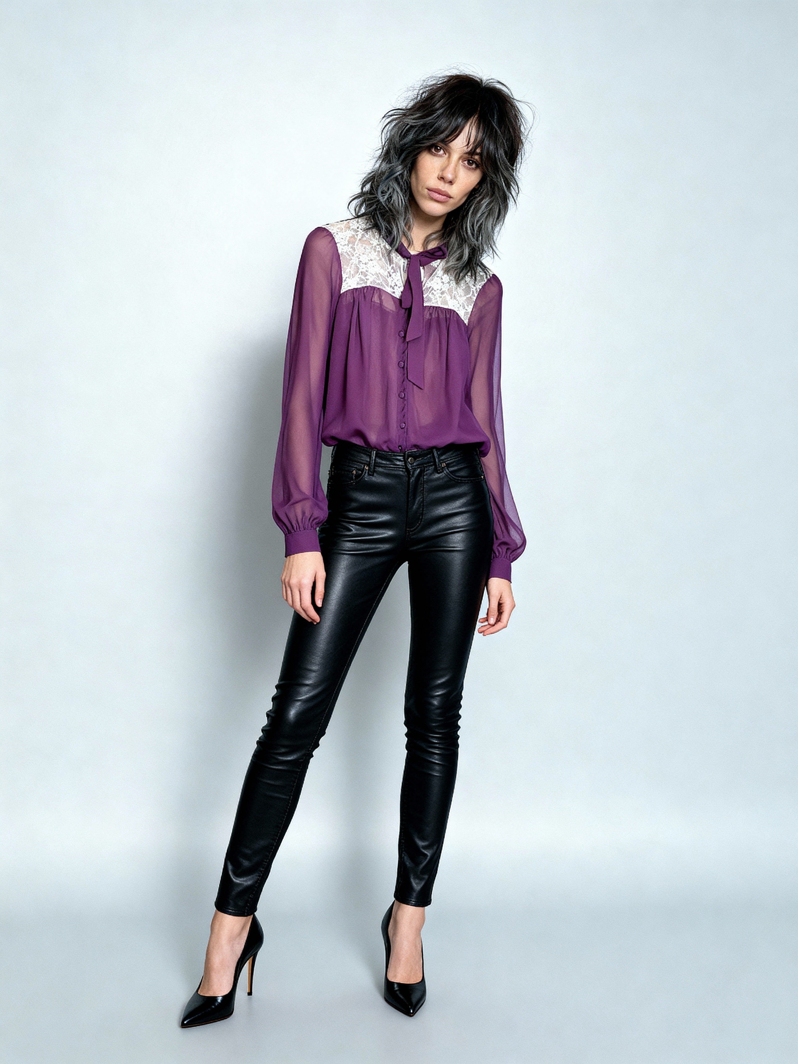 Elevate your vintage wardrobe with this authentic 1980s lace blouse, a timeless piece that captures the era's romantic aesthetic. Crafted in a striking purple and white palette, the delicate lace detailing offers sophisticated texture and visual interest. Designed for UK sizes 12-14, this blouse pairs effortlessly with tailored trousers, vintage denim, or modern separates for a curated, eclectic look. The quality construction and period-accurate design make it a standout addition for vintage enthusiasts and fashion collectors seeking genuine 80s pieces with character and wearability.