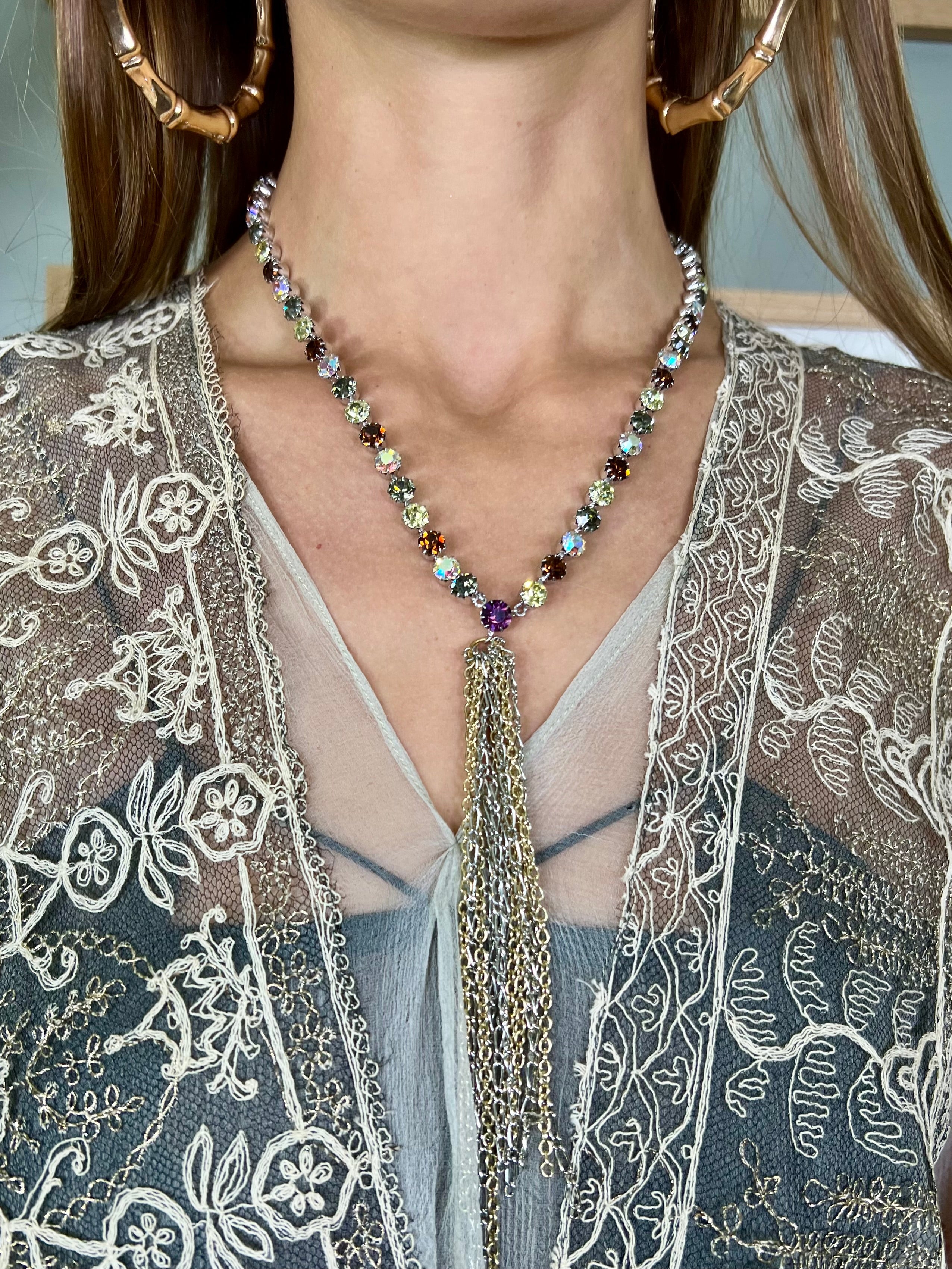 Sistine, reworked vintage diamanté necklace with chain tassel