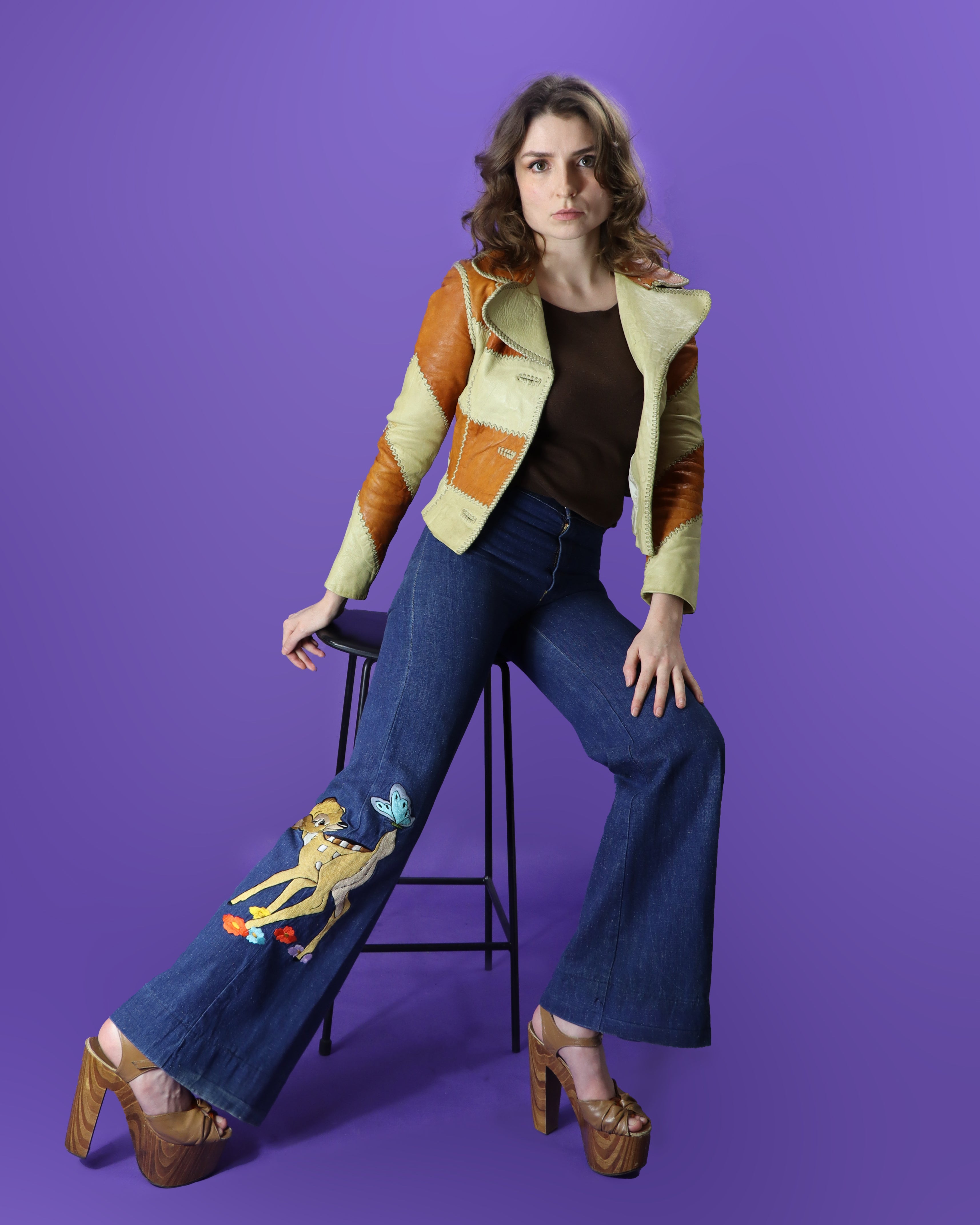 Vintage 1970s Antonio Guiseppe Bambi Denim Embroidered Flares Jeans