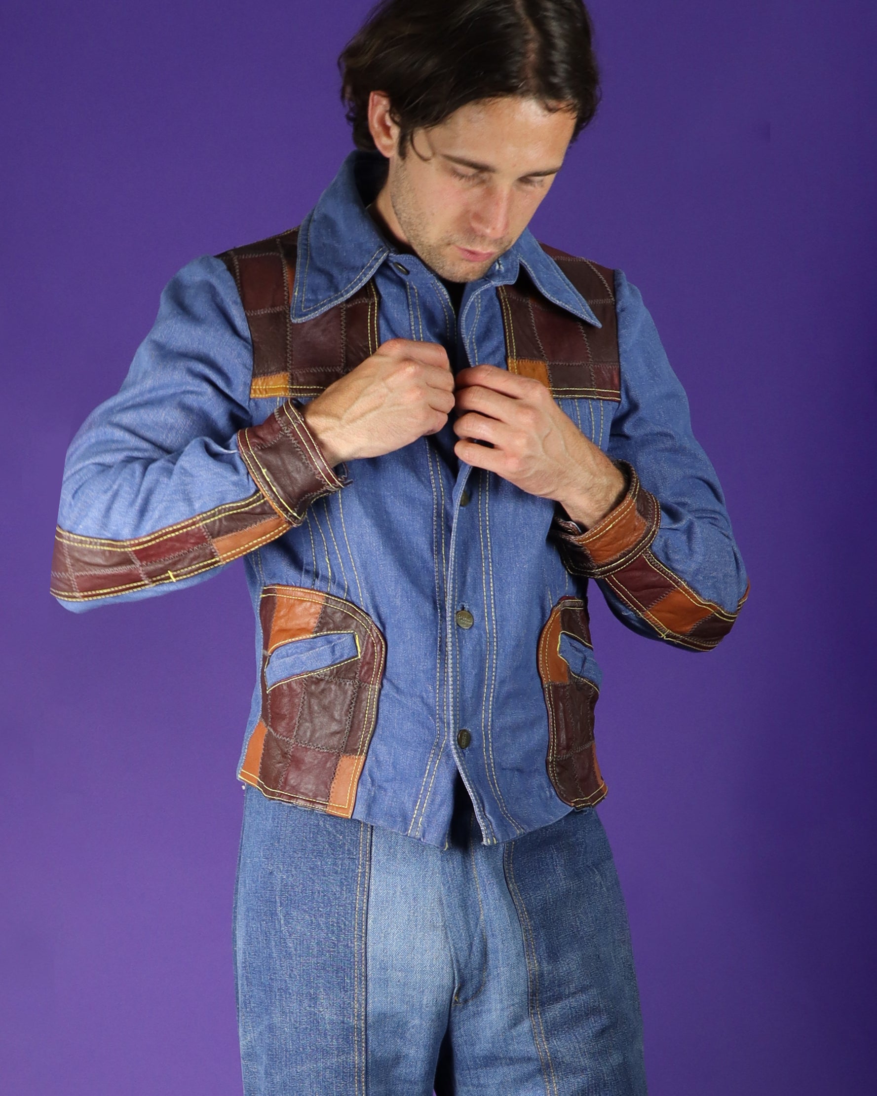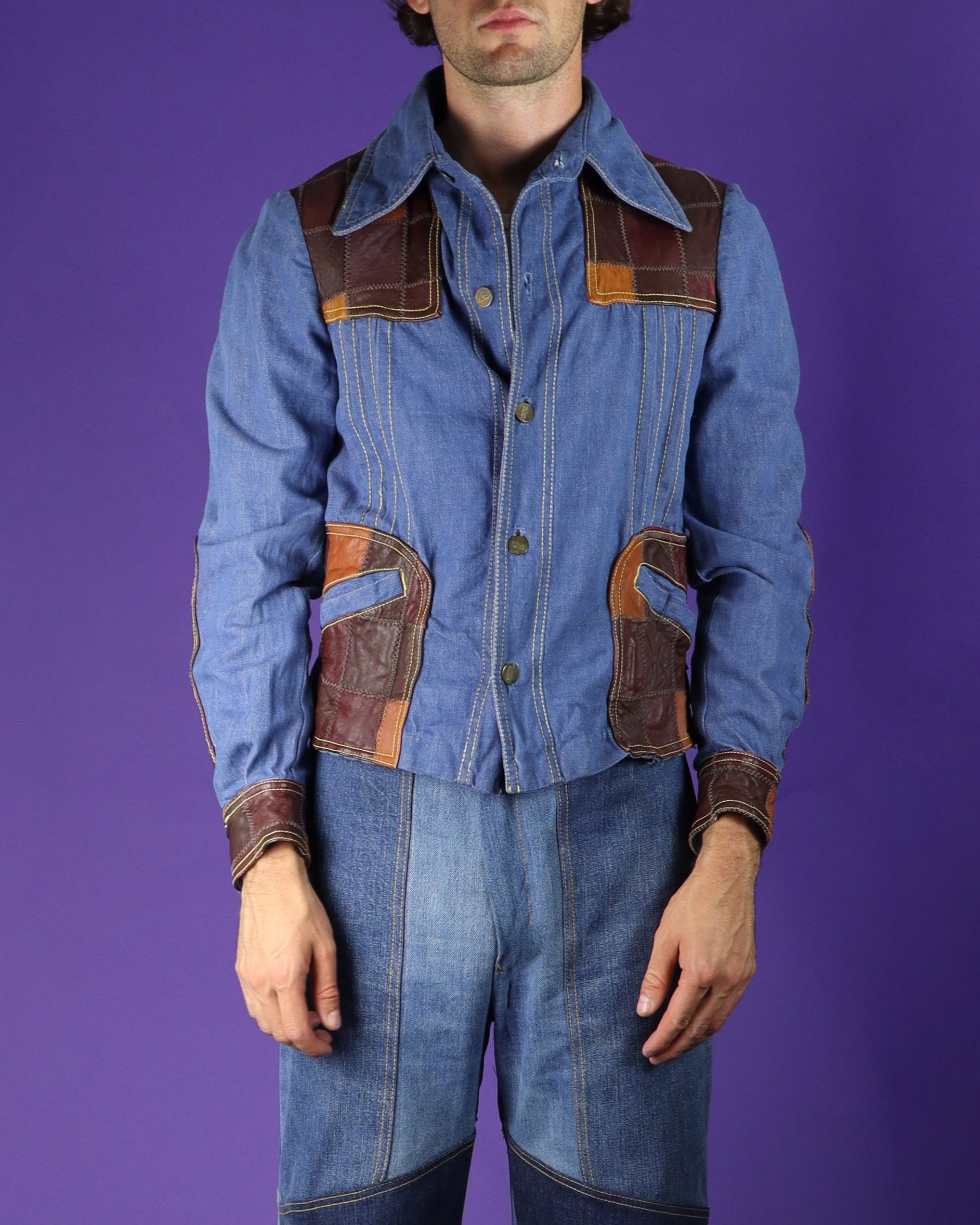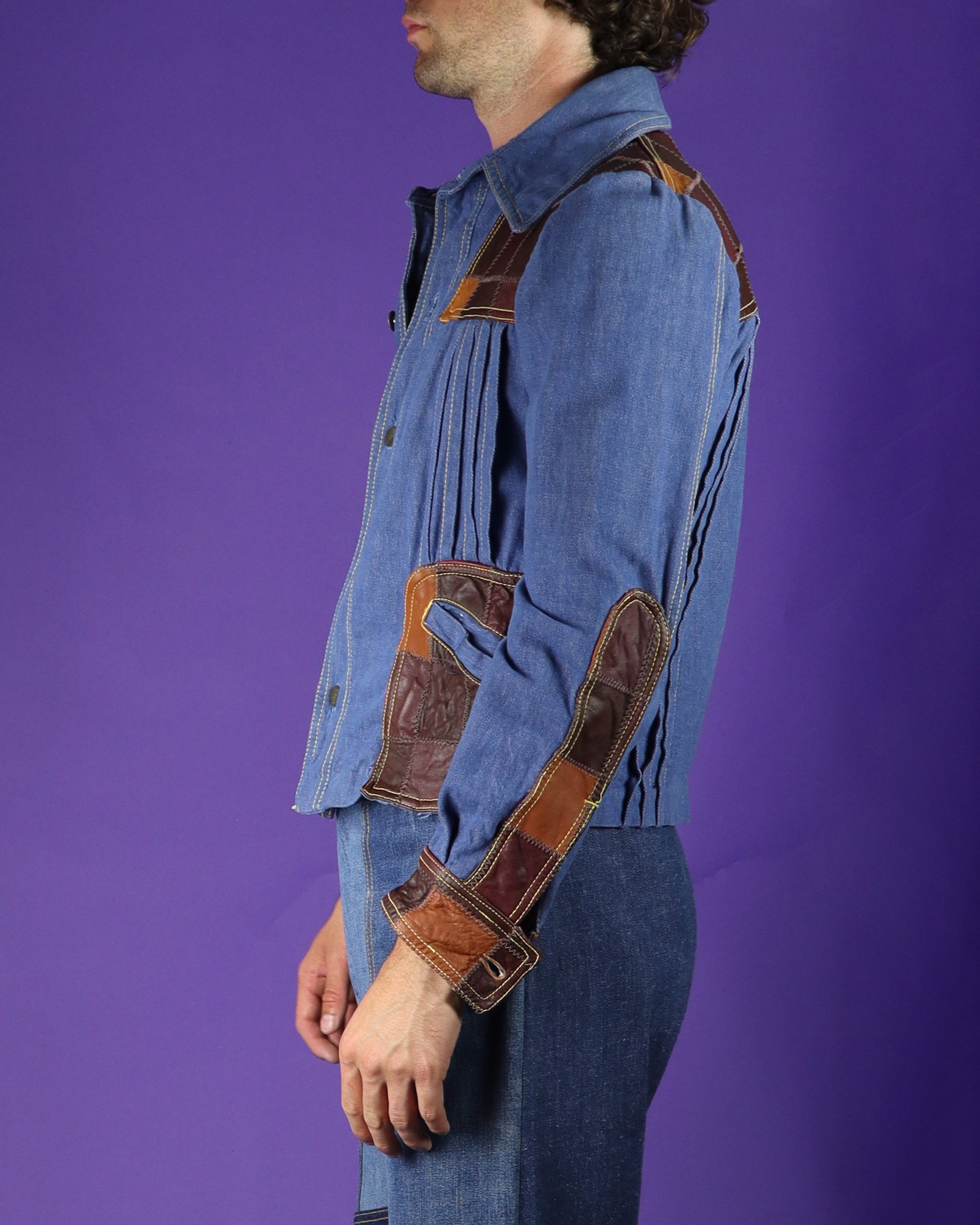 Vintage 1970s Patchwork Leather Denim Jacket