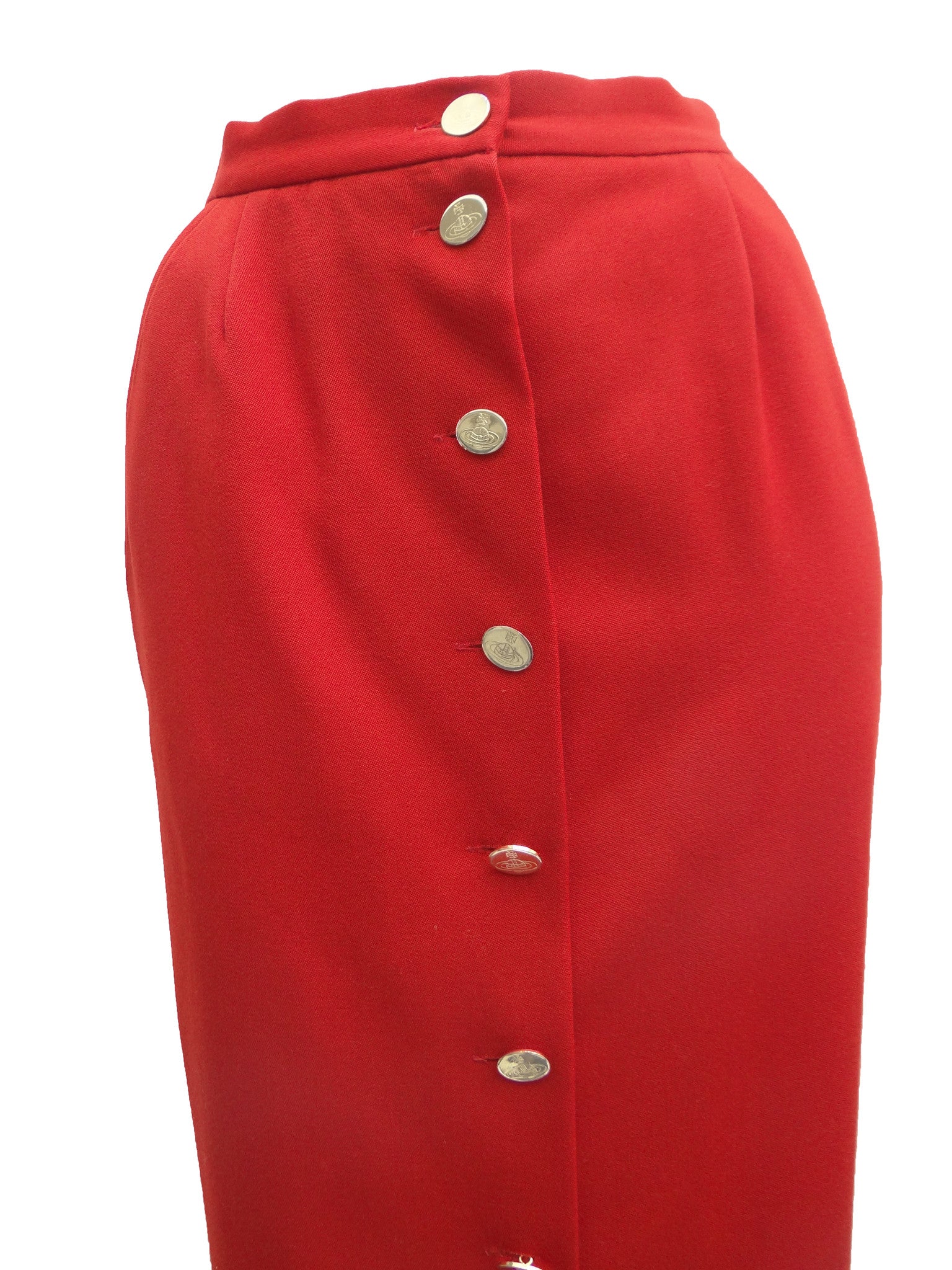 An exquisite early 1990s vintage tailored Vivienne Westwood button through skirt in pillar box red wool.