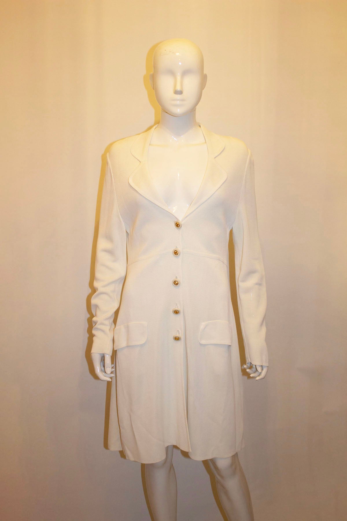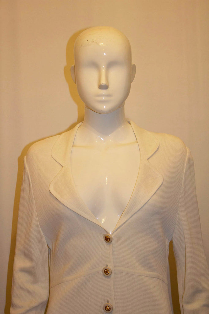 A super white vintage coat dress by Celine. The coat is made of a heavy viscose and hangs beautifully , and has all the original buttons. It has a cut away collar, 2 flap pockets on the front and a 22'' slit at the back. The coat is unlined.