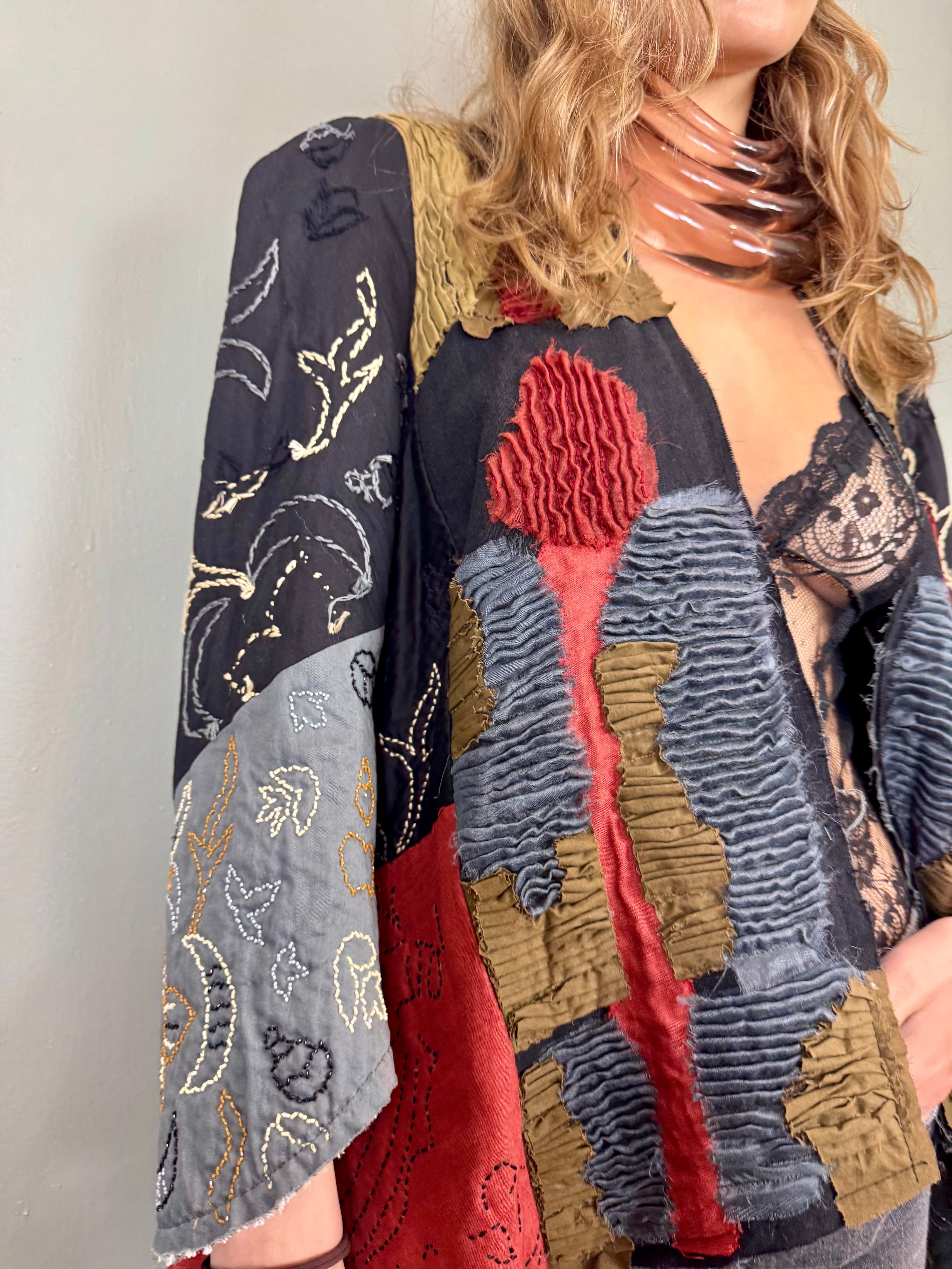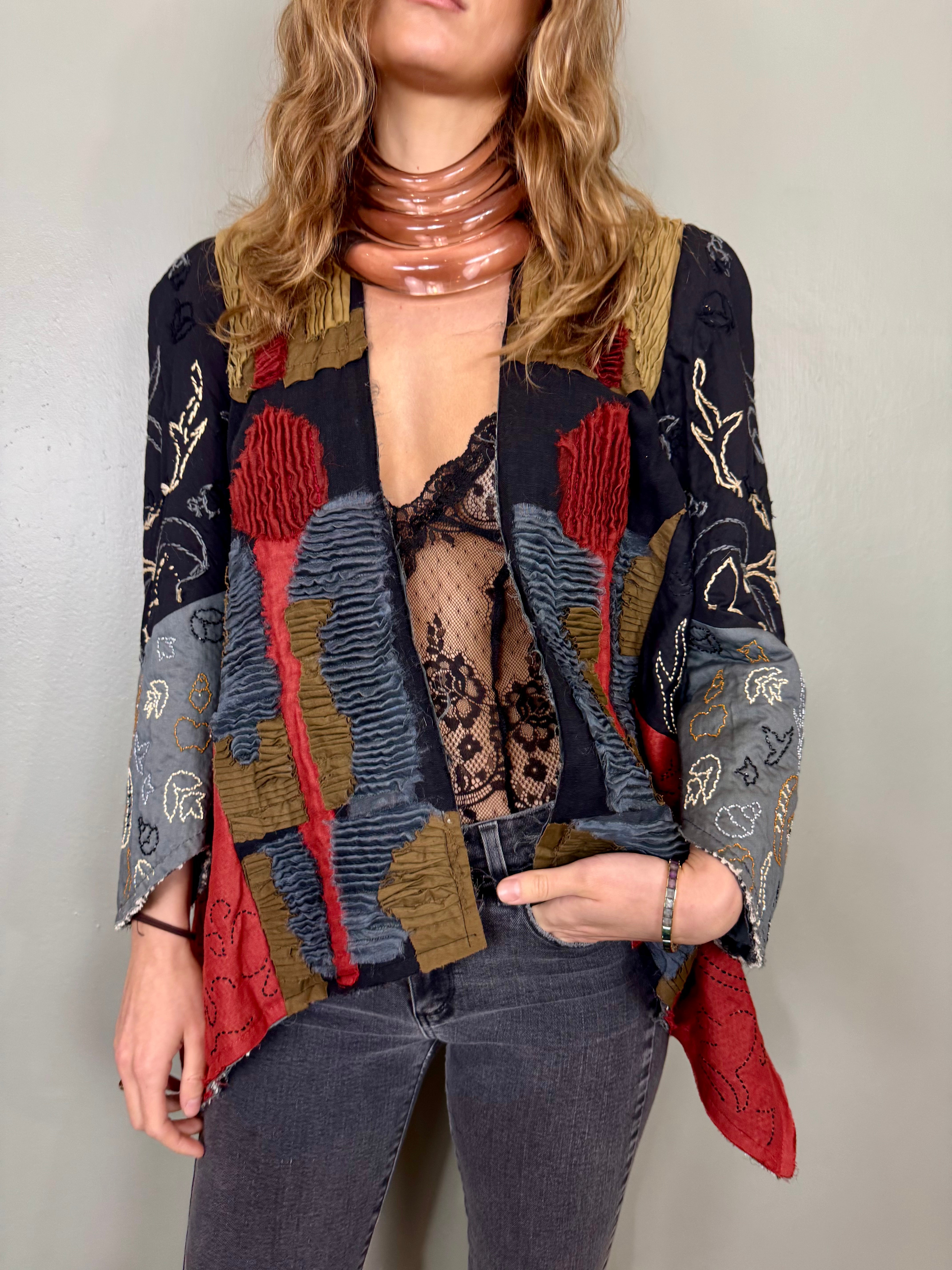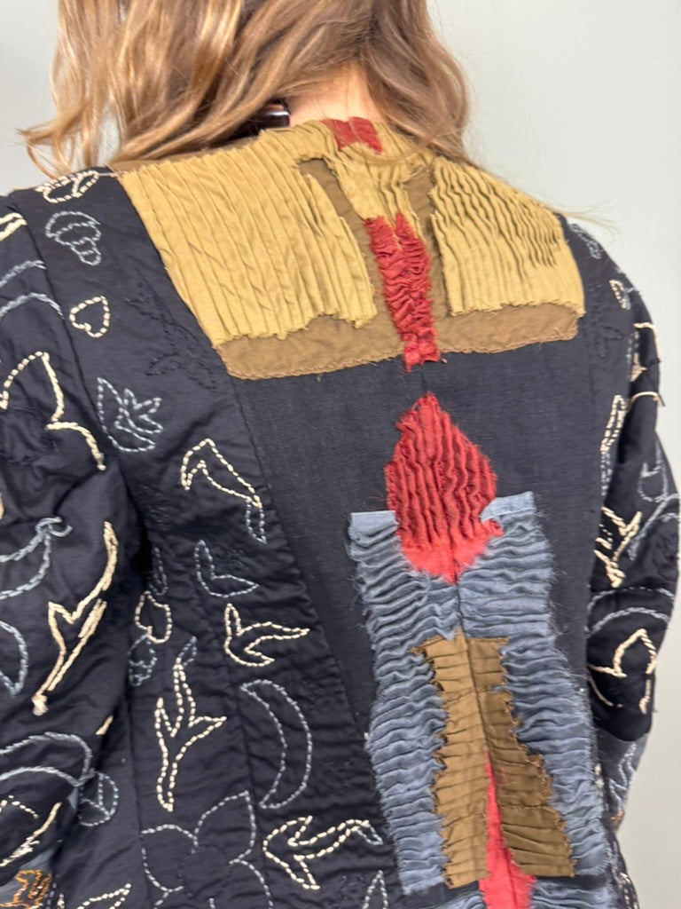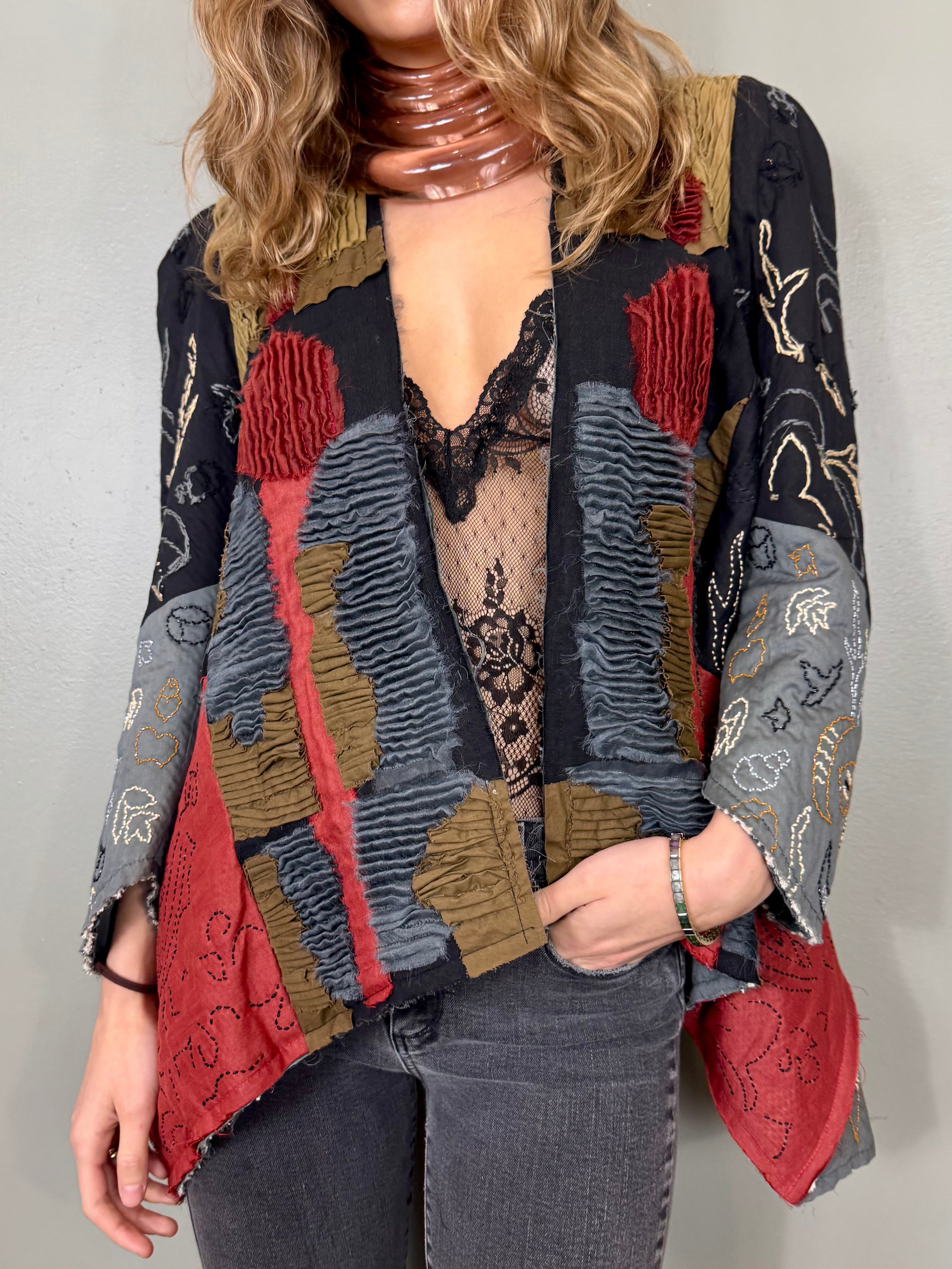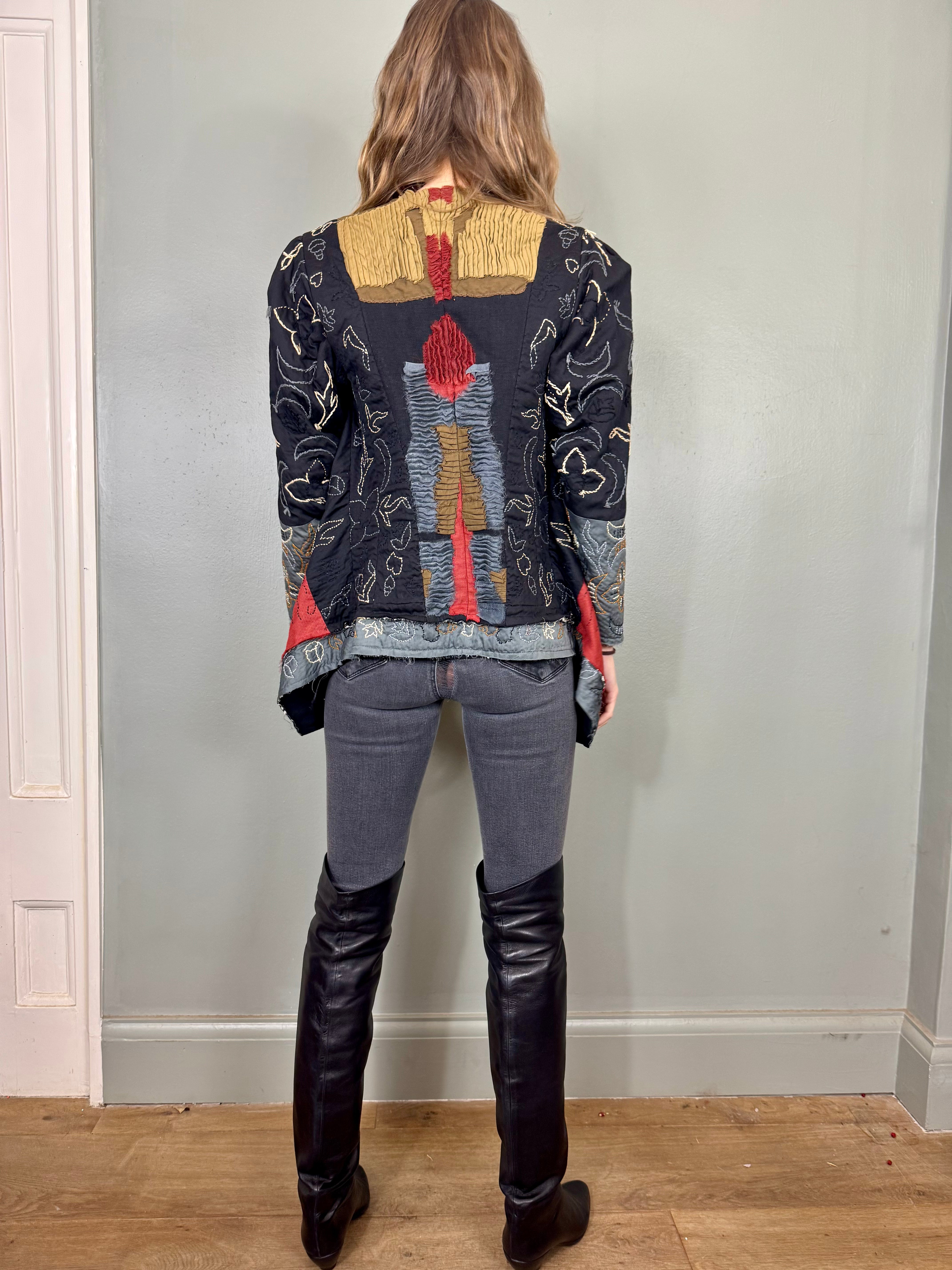 Expertly crafted with incredible texture and structure, this inspiring beaded jacket features long sleeves, firm shoulders, and a fitted waist for a flattering shape. The asymmetrical hem and intricate beaded flower detailing add a touch of elegance to this stunning piece. Perfect for elevating any outfit.
