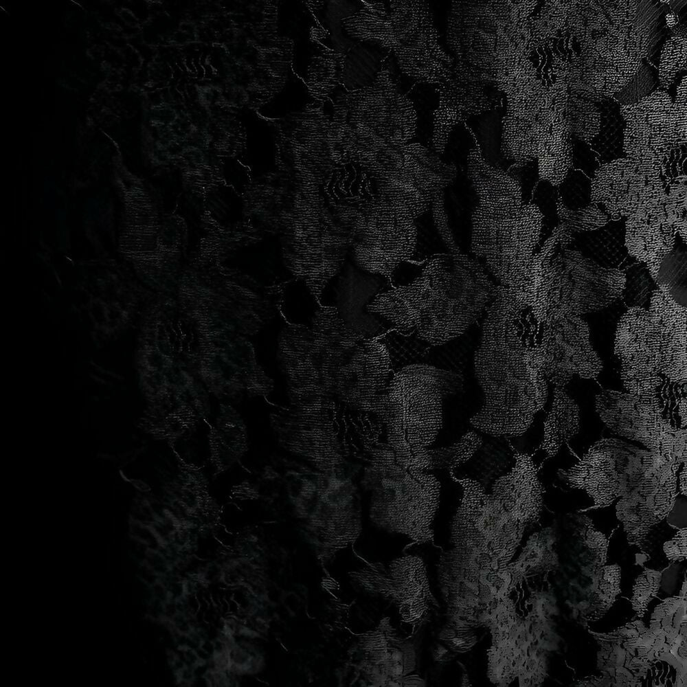 Beautiful full length black sleeveless lace dress in a flower design, with a front ruffle. The dress flares out at the bottom.