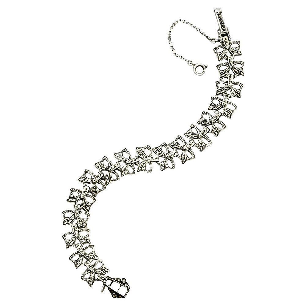 SILVER AND MARCASITE BOW DESIGN LINK BRACELET CIRCA 1930S