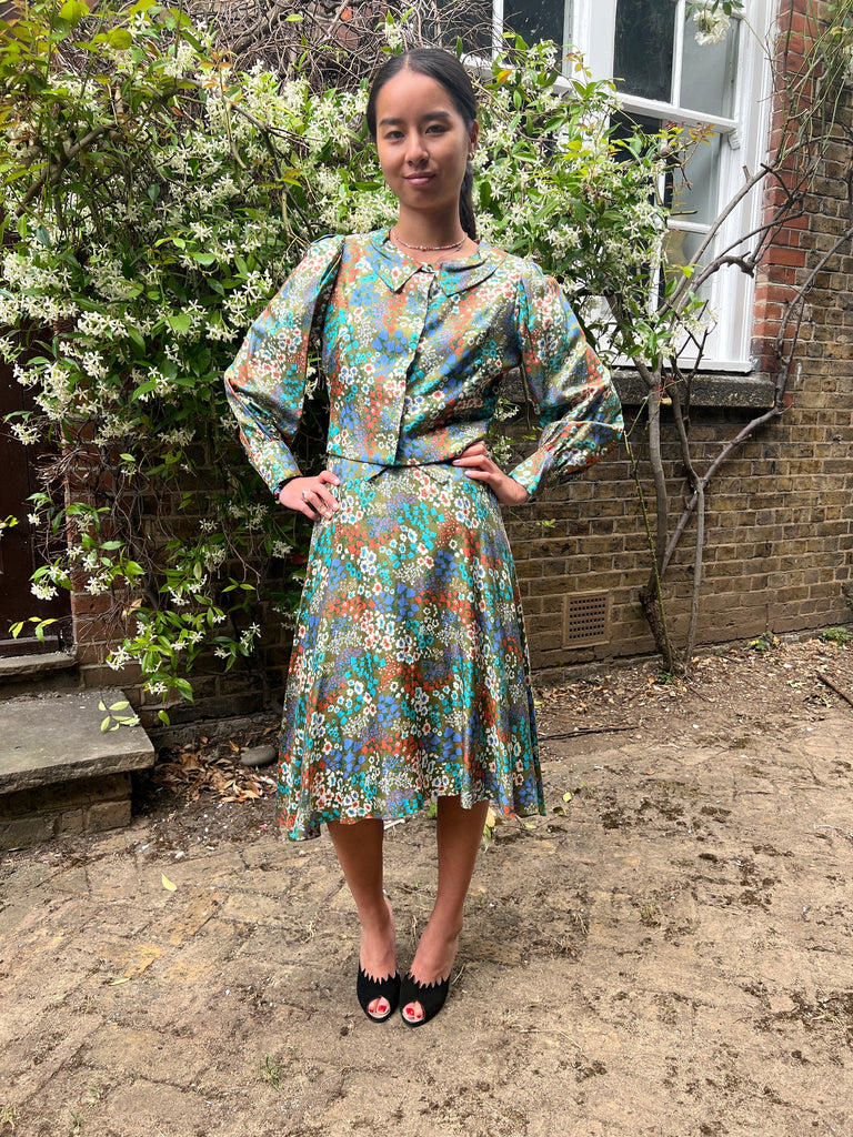Both garments are in wonderful vintage condition with no faults or stains to note. Although unlabelled, both have been very well made by a competent dress maker, perhaps for an atelier. There is a good deal of hand finished work and generous seam allowances. The ensemble would best fit up to a size UK 10 or US 6.