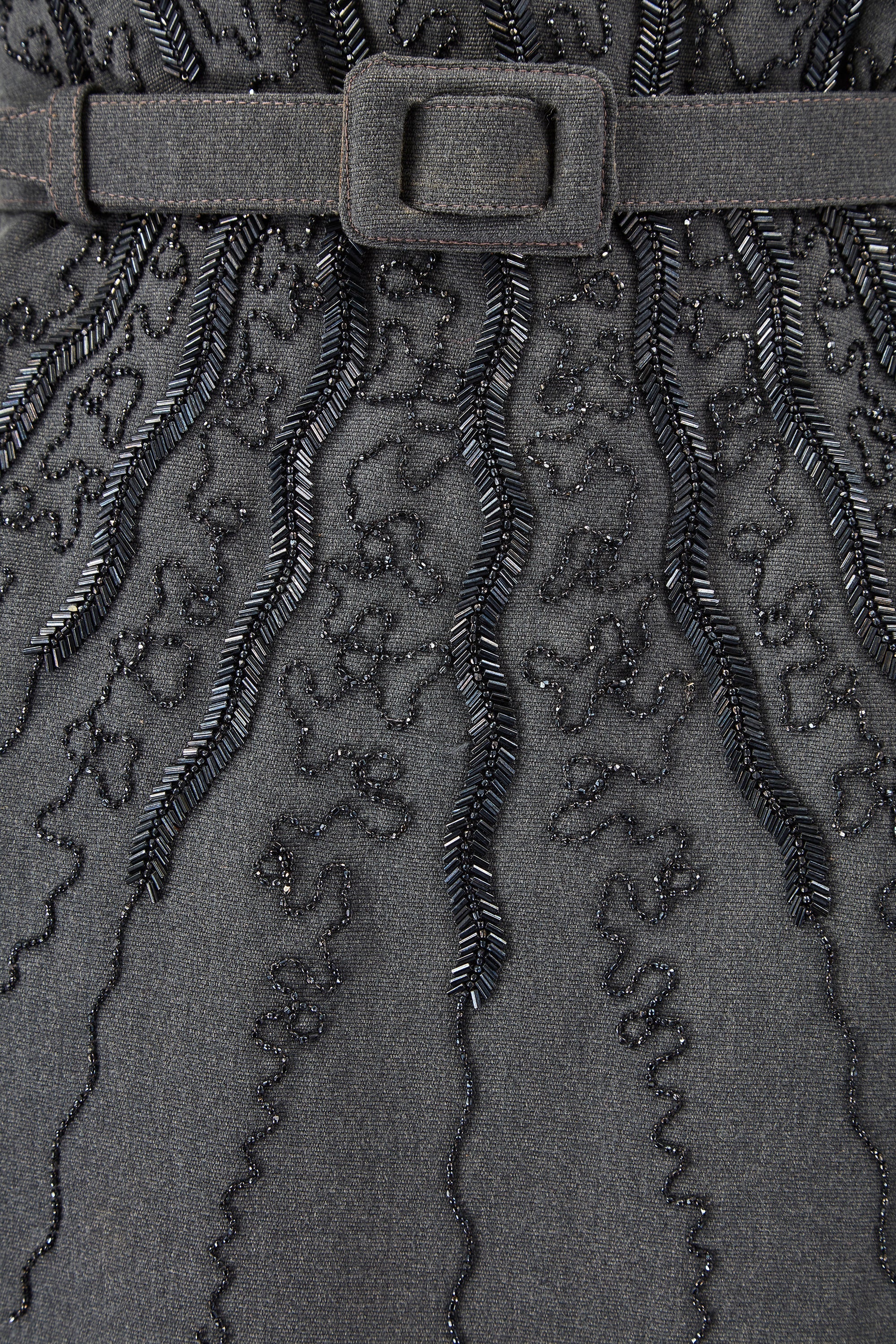 1950s Grey Wool Dolman Sleeve Dress with Elaborate Beadwork