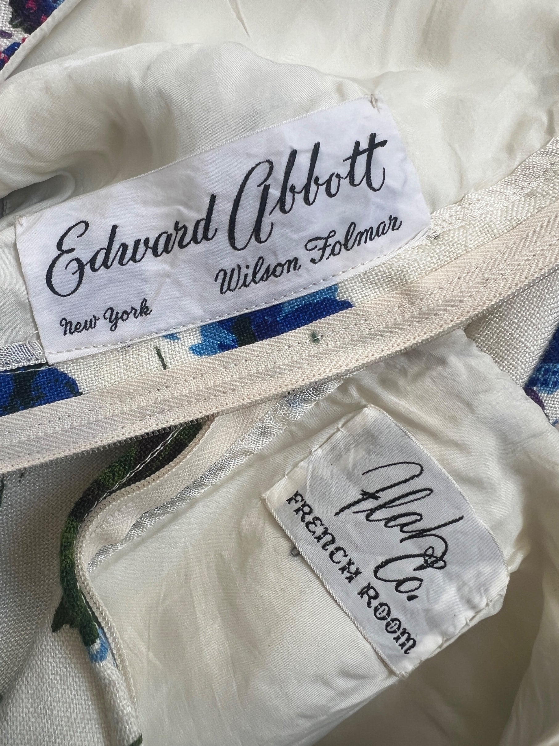 1960s Edward Abbott Cream Dress with Purple and Blue Florals