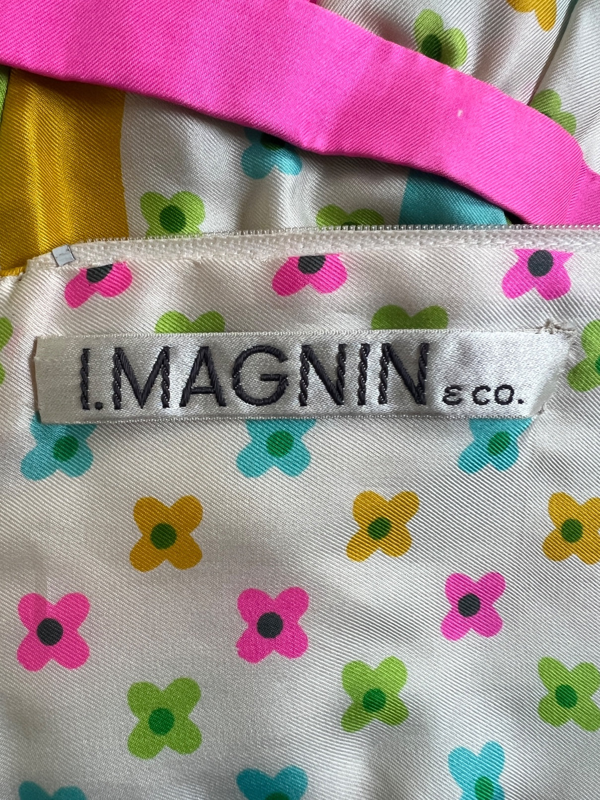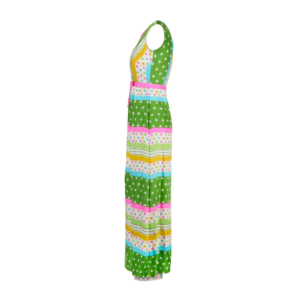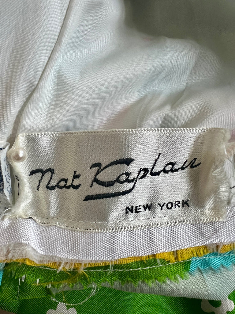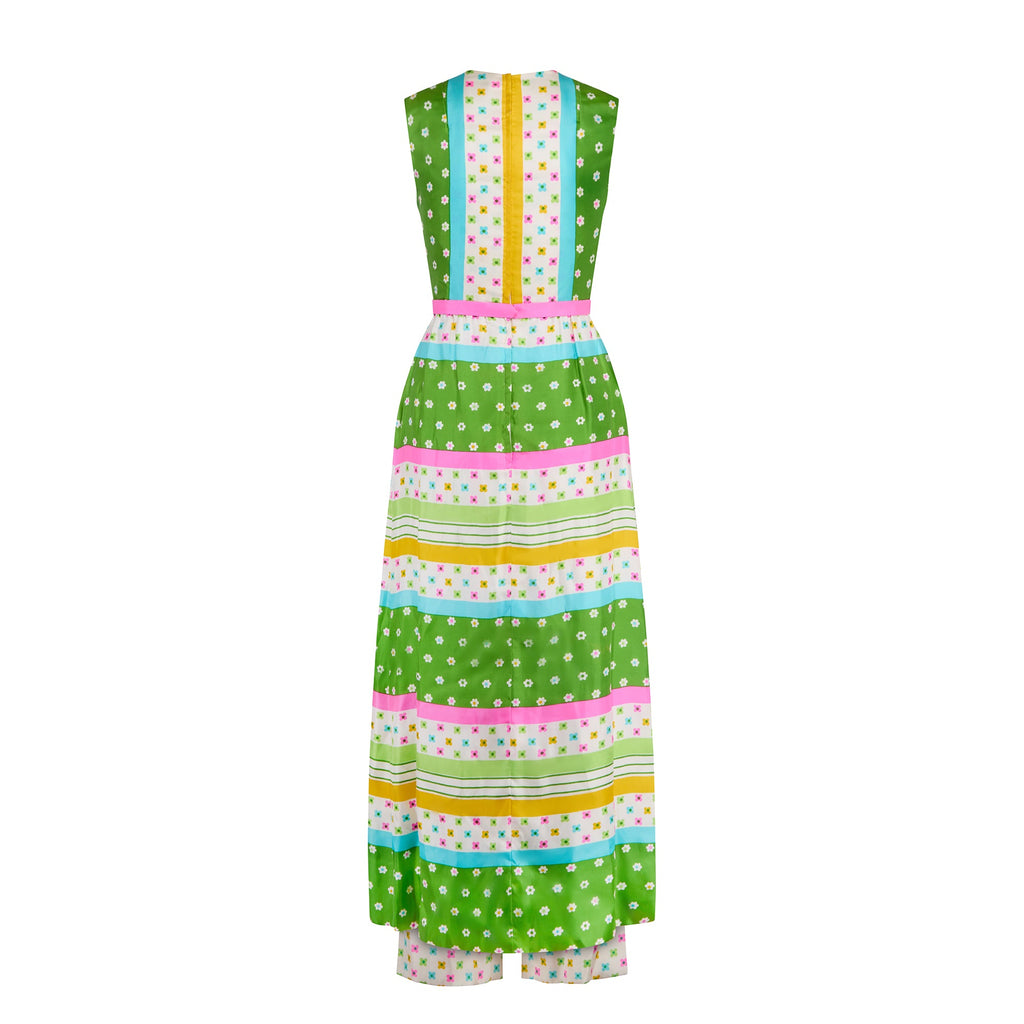 This playful and vibrant maxi dress and trousers ensemble was made by high-end American designer and manufacturer Nat Kaplan and retailed in San Francesco's premier department store I. Magnin & Co in the late 1960s to early 1970s.