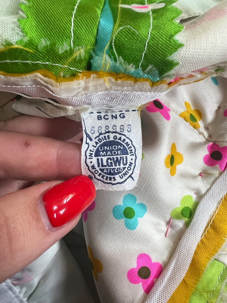 This ensemble is in truly excellent vintage condition with no flaws of any note. Retaining all of the labels, the ensemble also has the ILGWU union label for the period 1964 and 1973. We believe that this would best fit a UK size 6-8 or US 2-4.