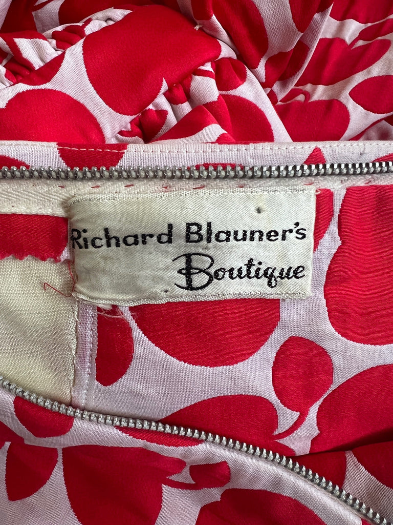 1960s Richard Blauner’s Boutique Red Apple Print Maxi-Dress