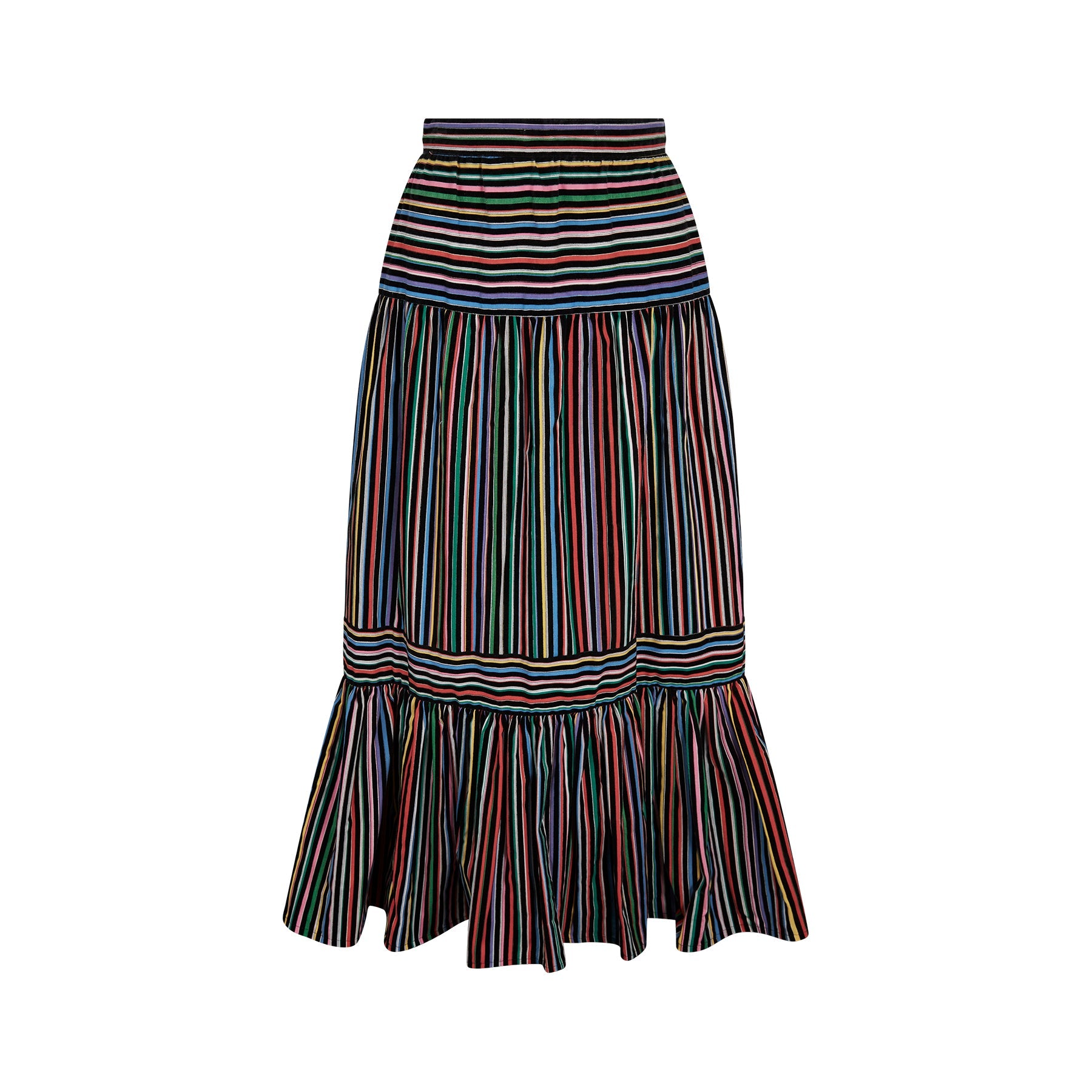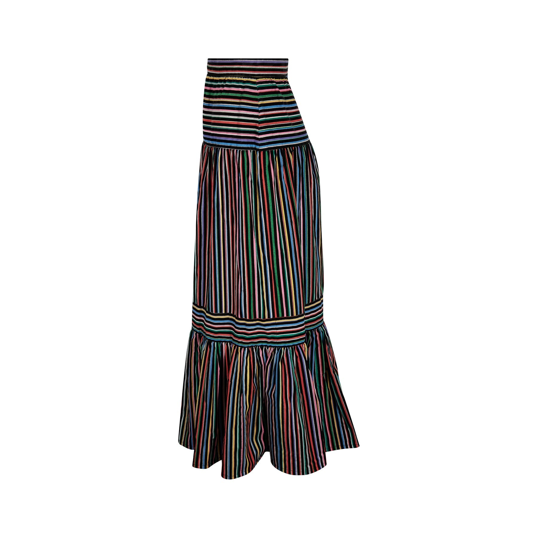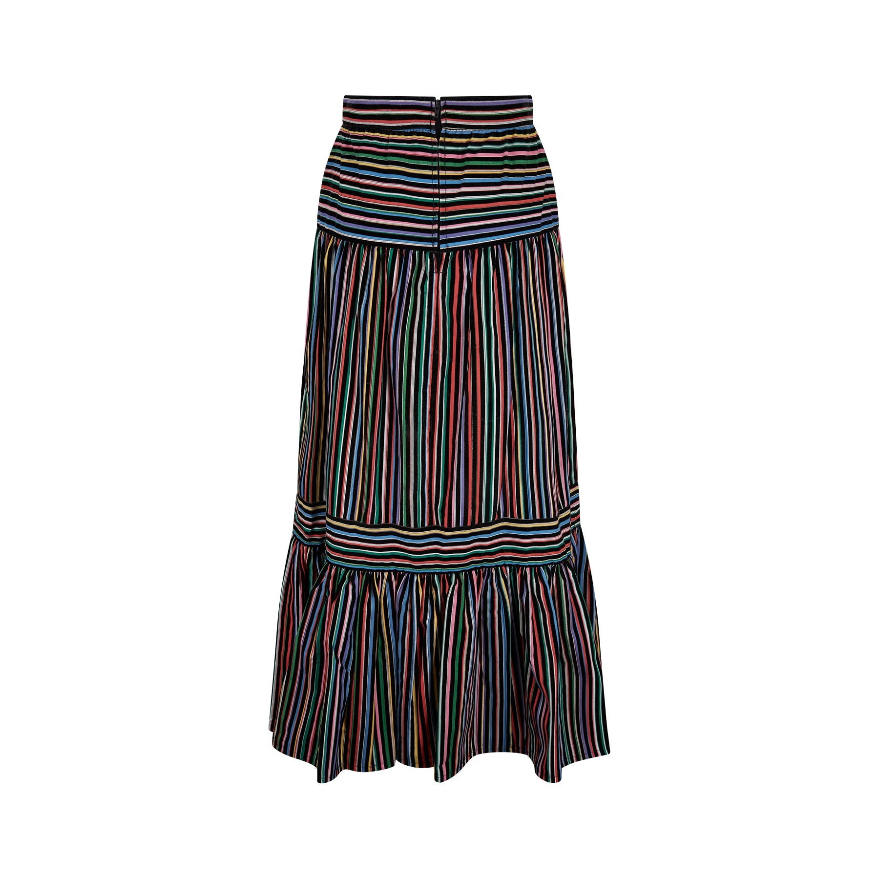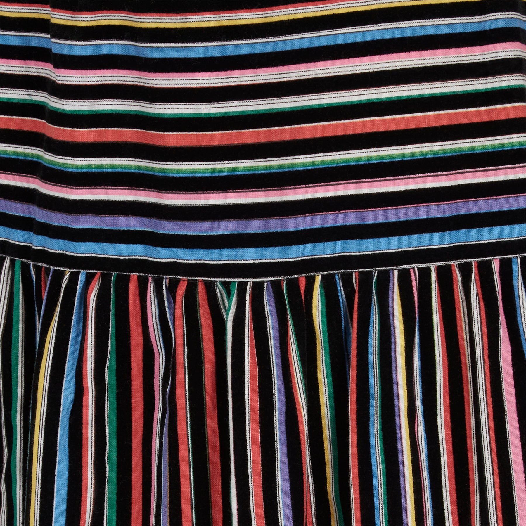 1970s Jupe Multicolour Striped Cotton Velvet Embossed Skirt