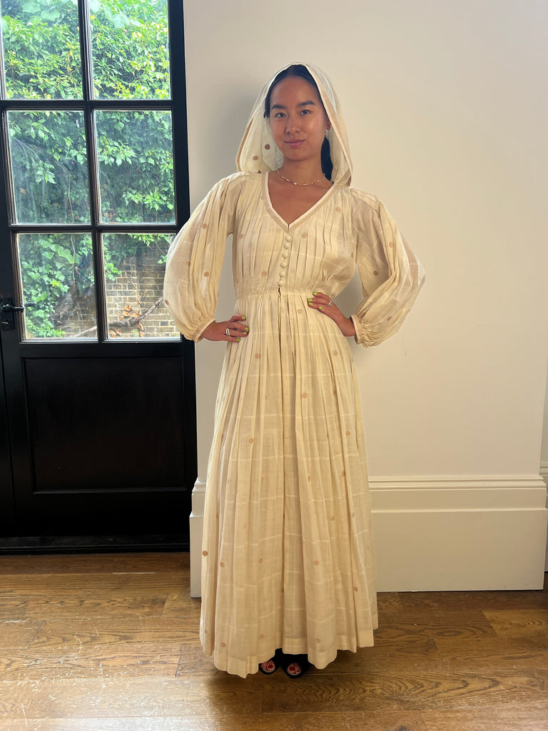 1970s Ted Lapidus Muslin Hooded Swiss-Dot Dress