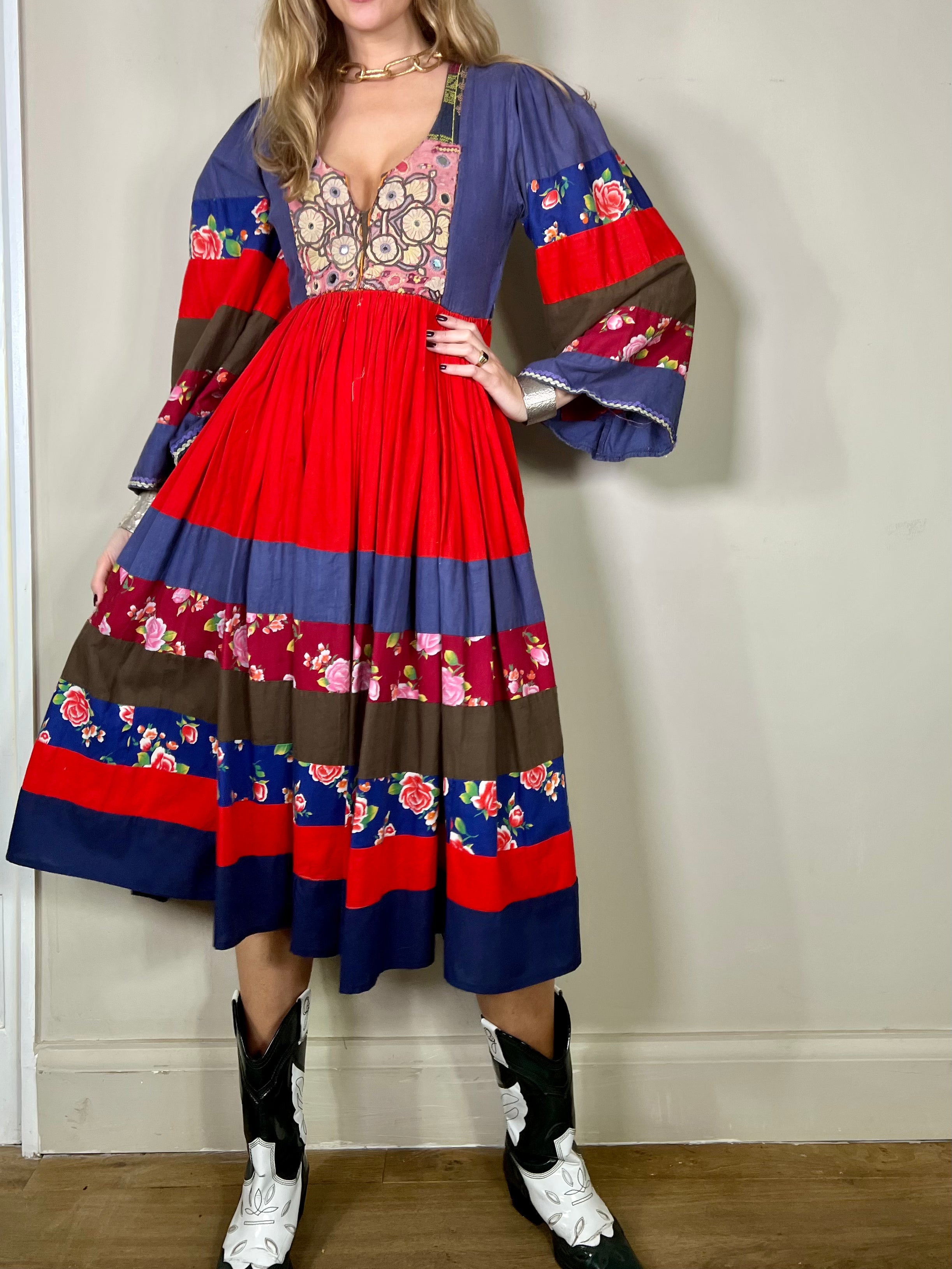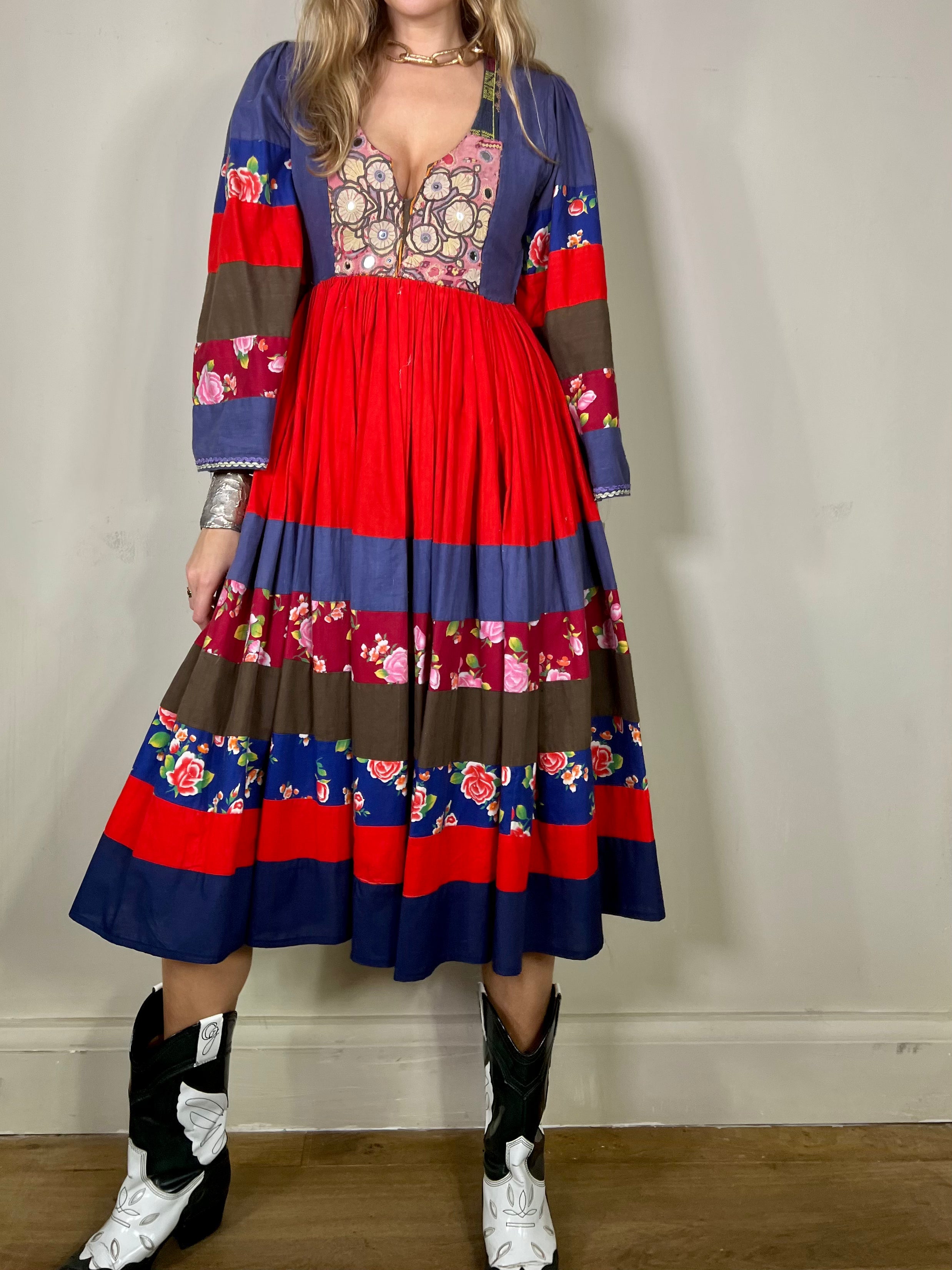 Ganesha, 70s Afghan floral dress