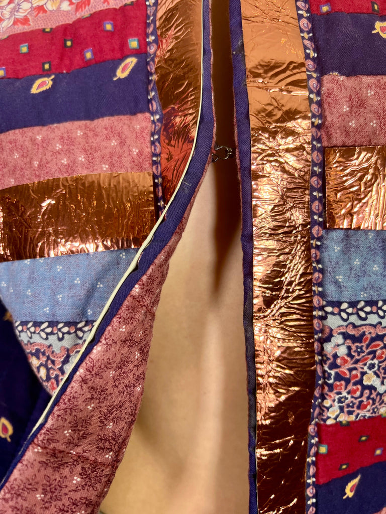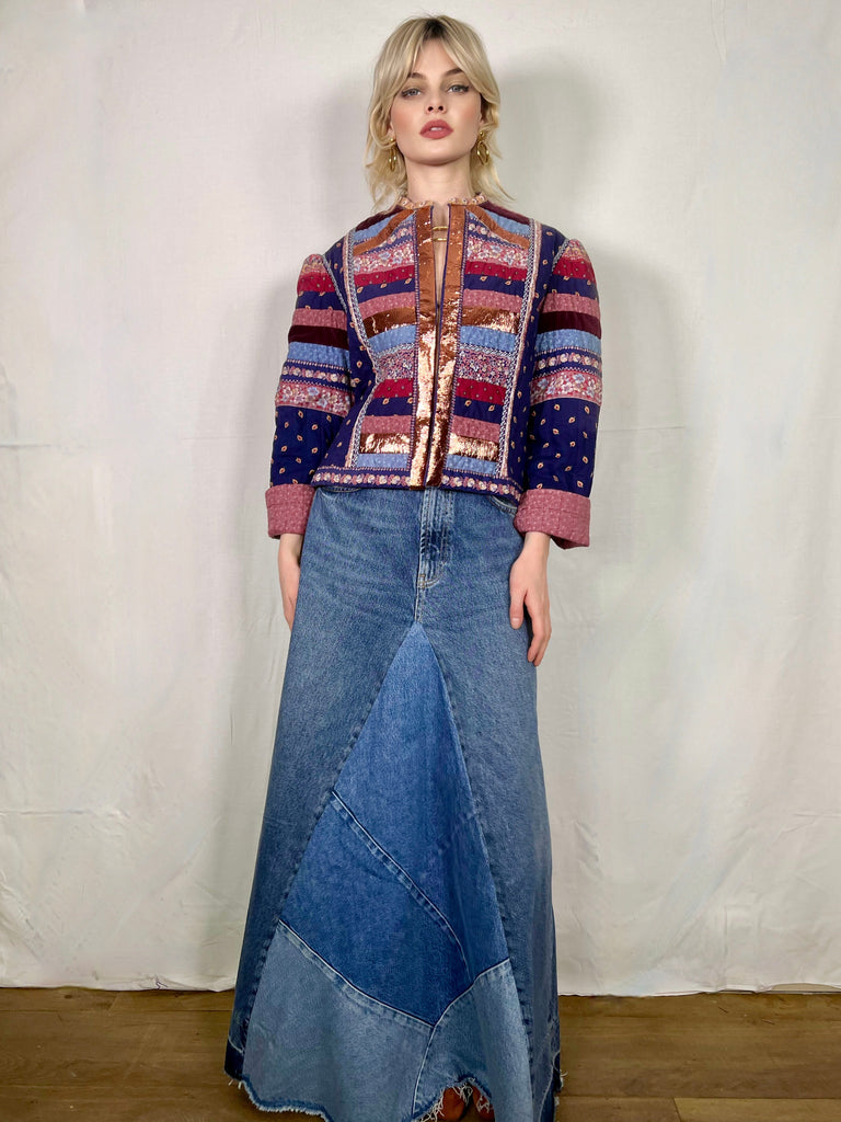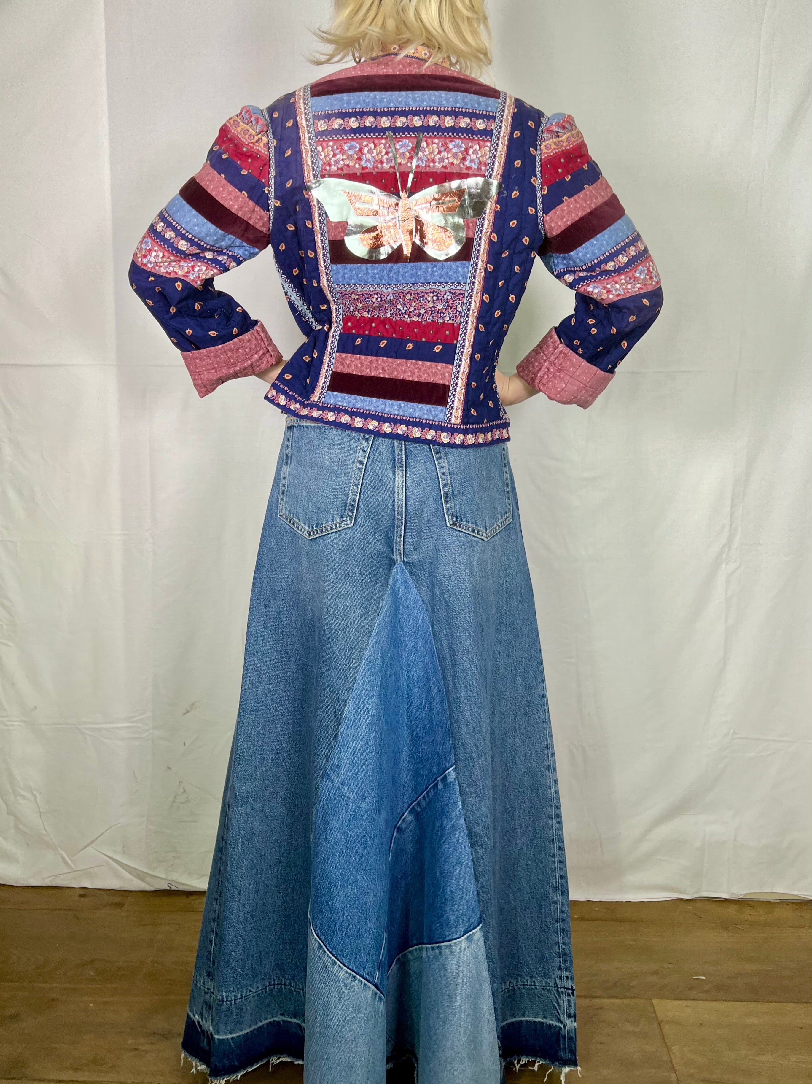 Sienna, patchwork 70s jacket with leather metallic butterfly