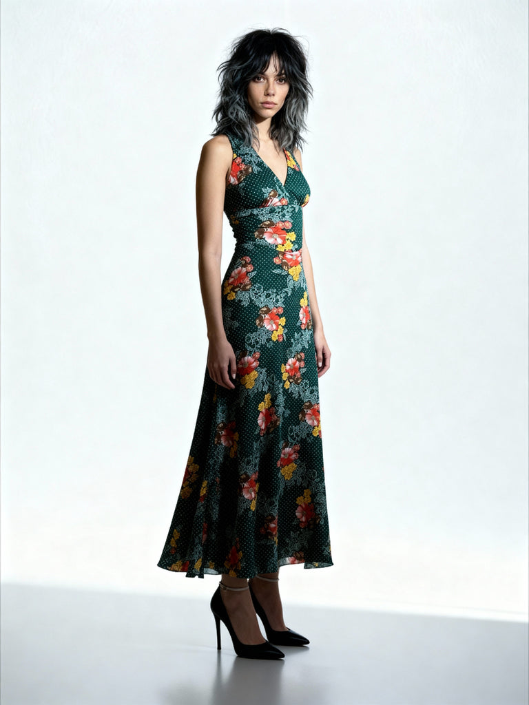 Original 1970'S Vintage Green Floral Dress Uk 8 - 10