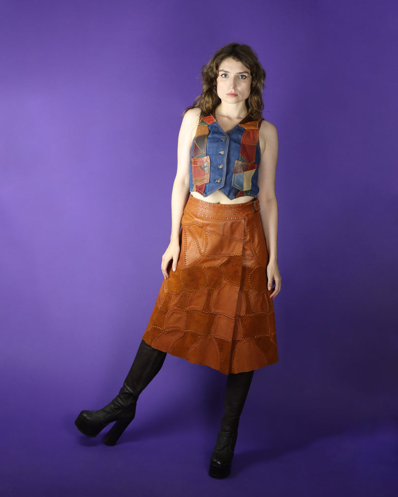 Vintage 1970s Serpent Snake Burnt Orange Suede Vest
