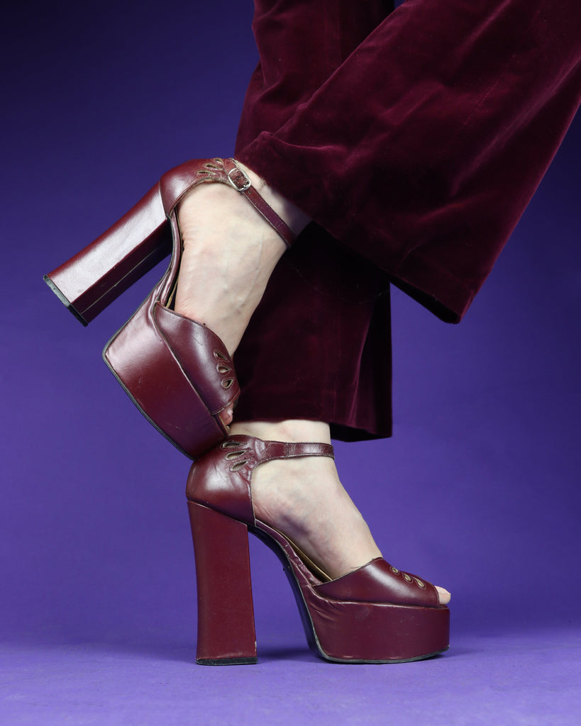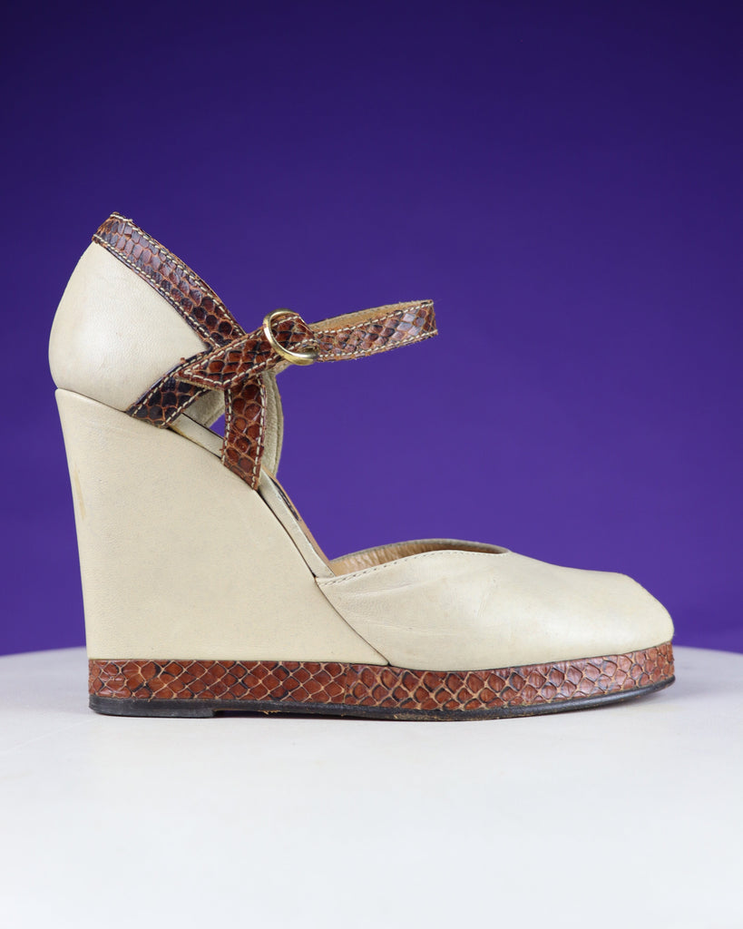 Vintage 1970s Snakeskin Trim Platform Wedge Shoes by Sergio Rossi