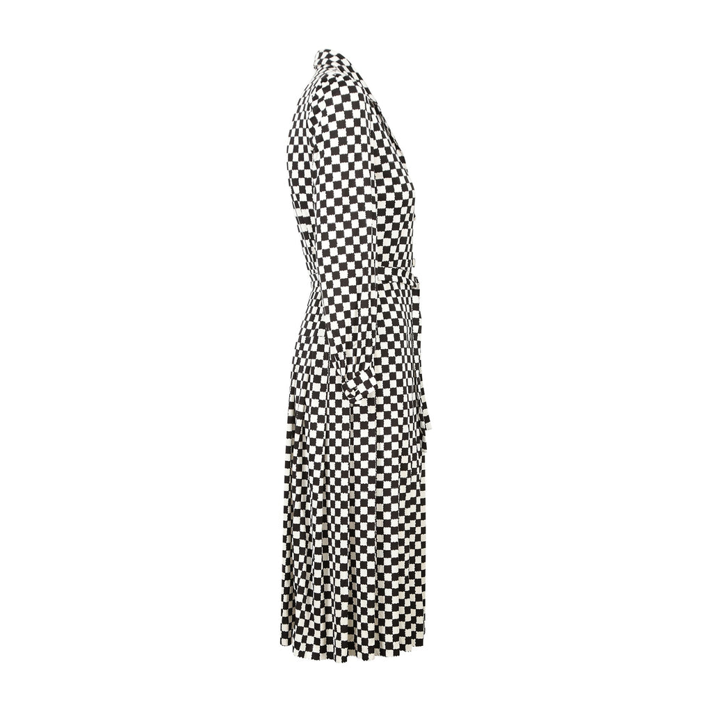 1980s Racine Black and White Checkerboard Silk Jersey Dress