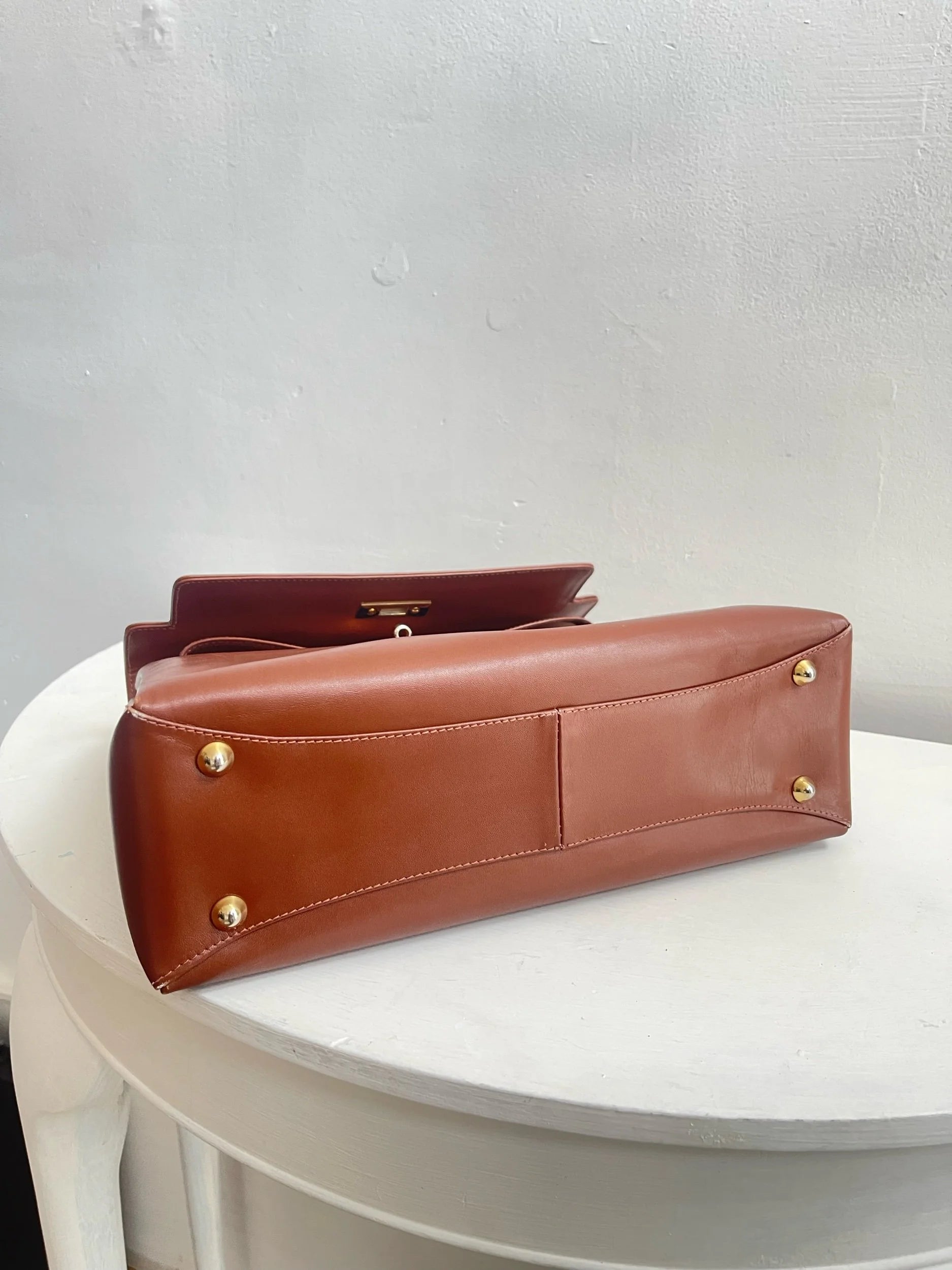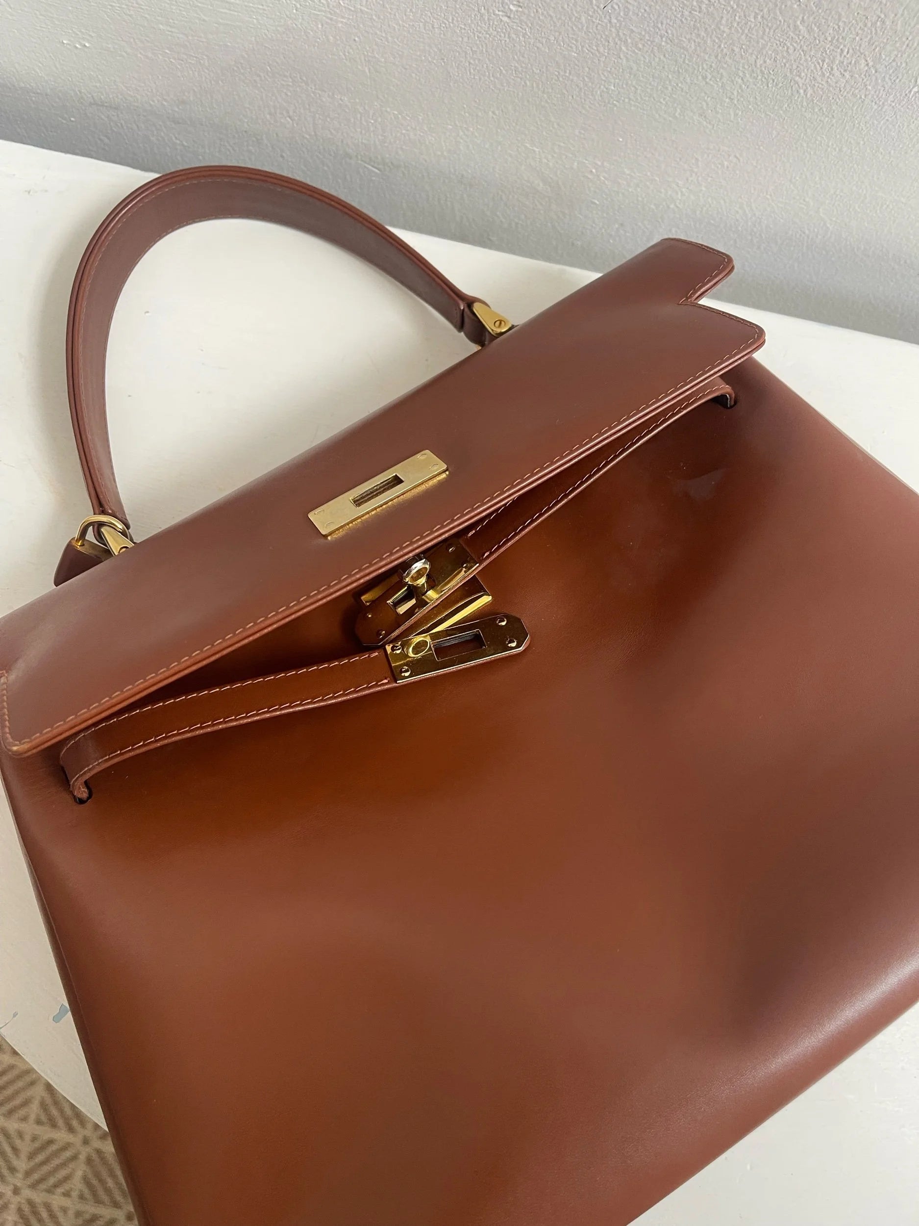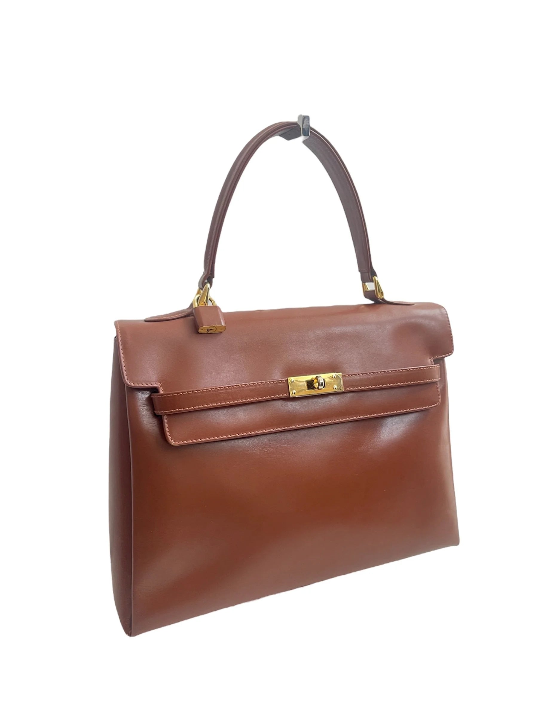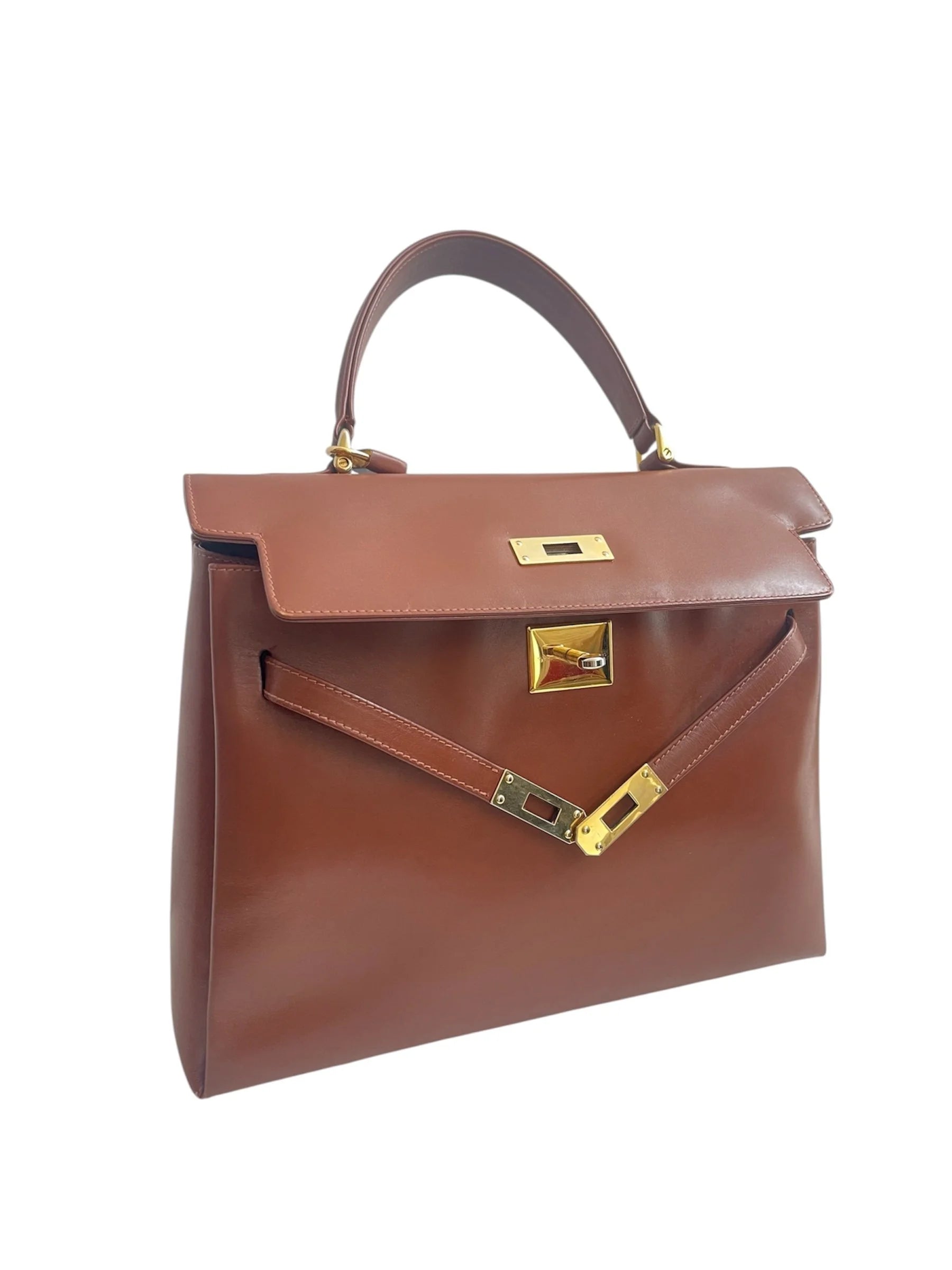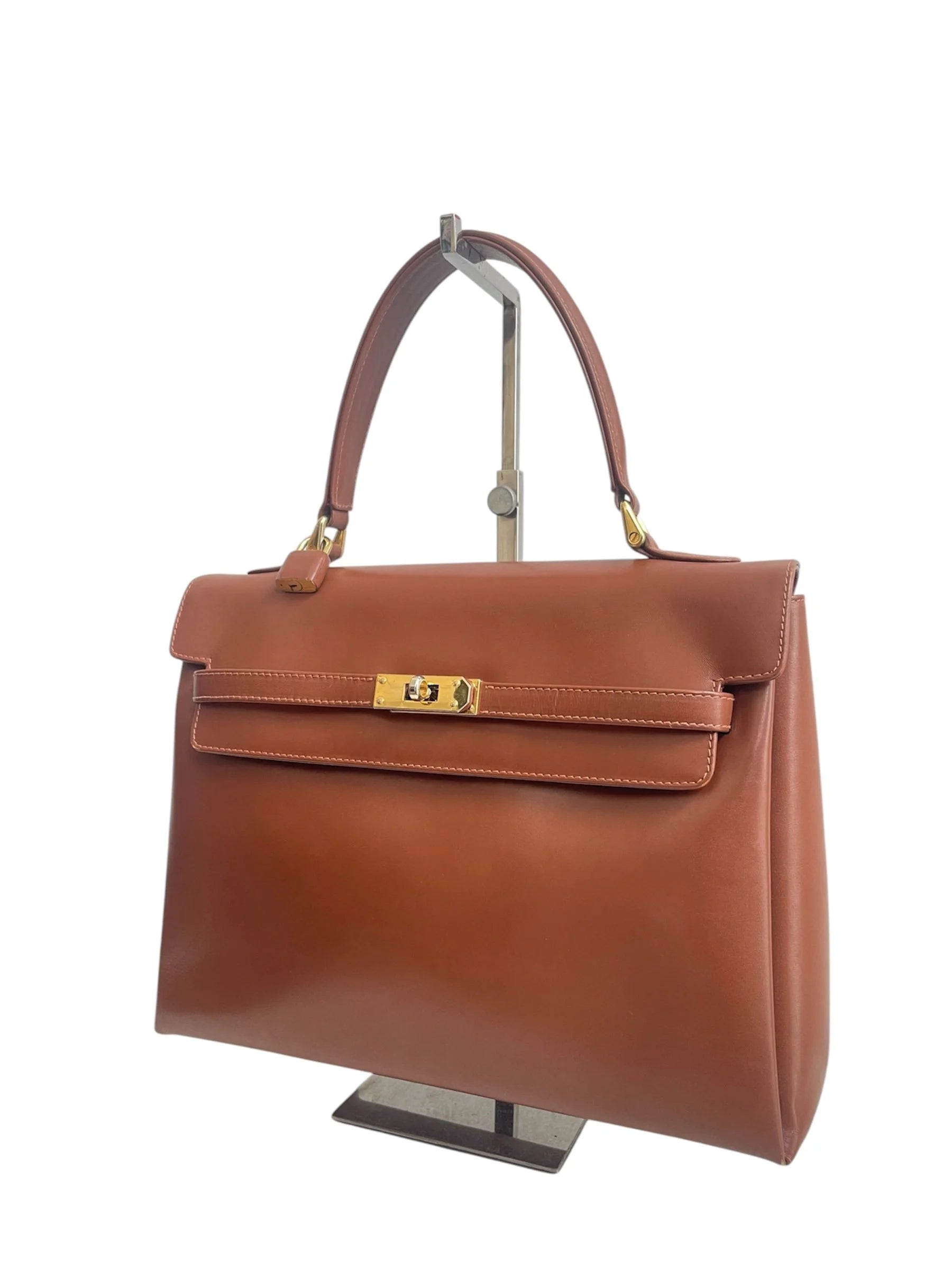Step back into the elegance of the 1990s with this exquisite Henry’s of London “Kelly” bag, crafted from supple tan leather in a timeless, structured silhouette. A nod to refined sophistication, this vintage treasure embodies understated glamour, making it a true forever piece.