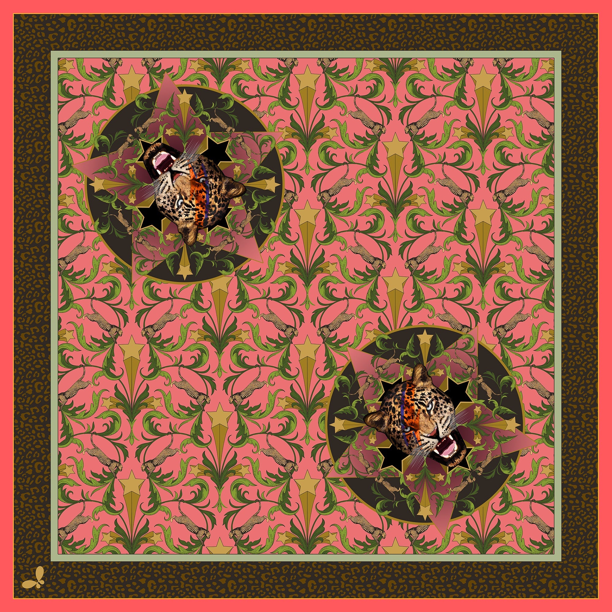 Stars, leopards and a nod towards Hollywood regency design. All original art work. Sheer, floaty and lightweight. Hot pink, green, gold, leopard!