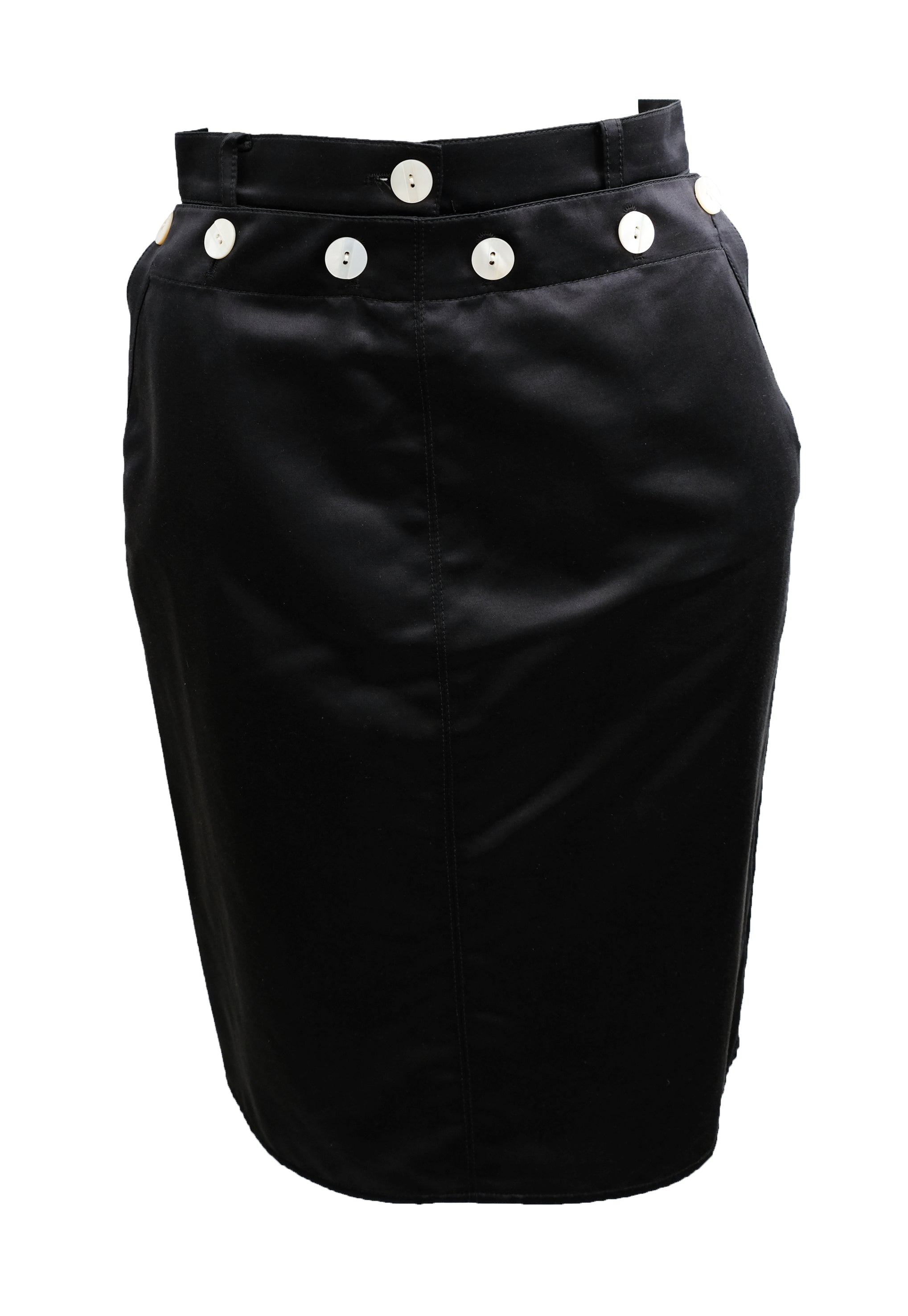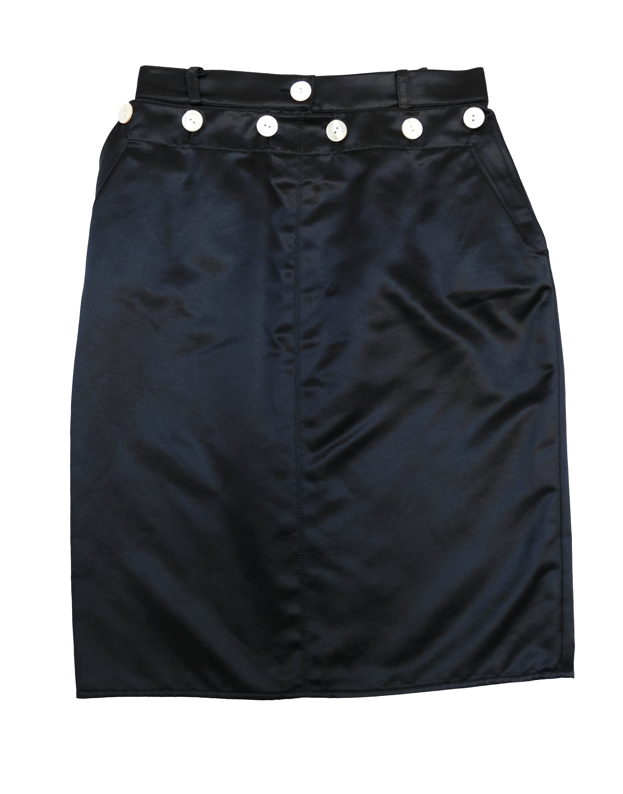 A 1990s vintage pencil skirt by Valentino, in lustrous heavy dark navy satin.