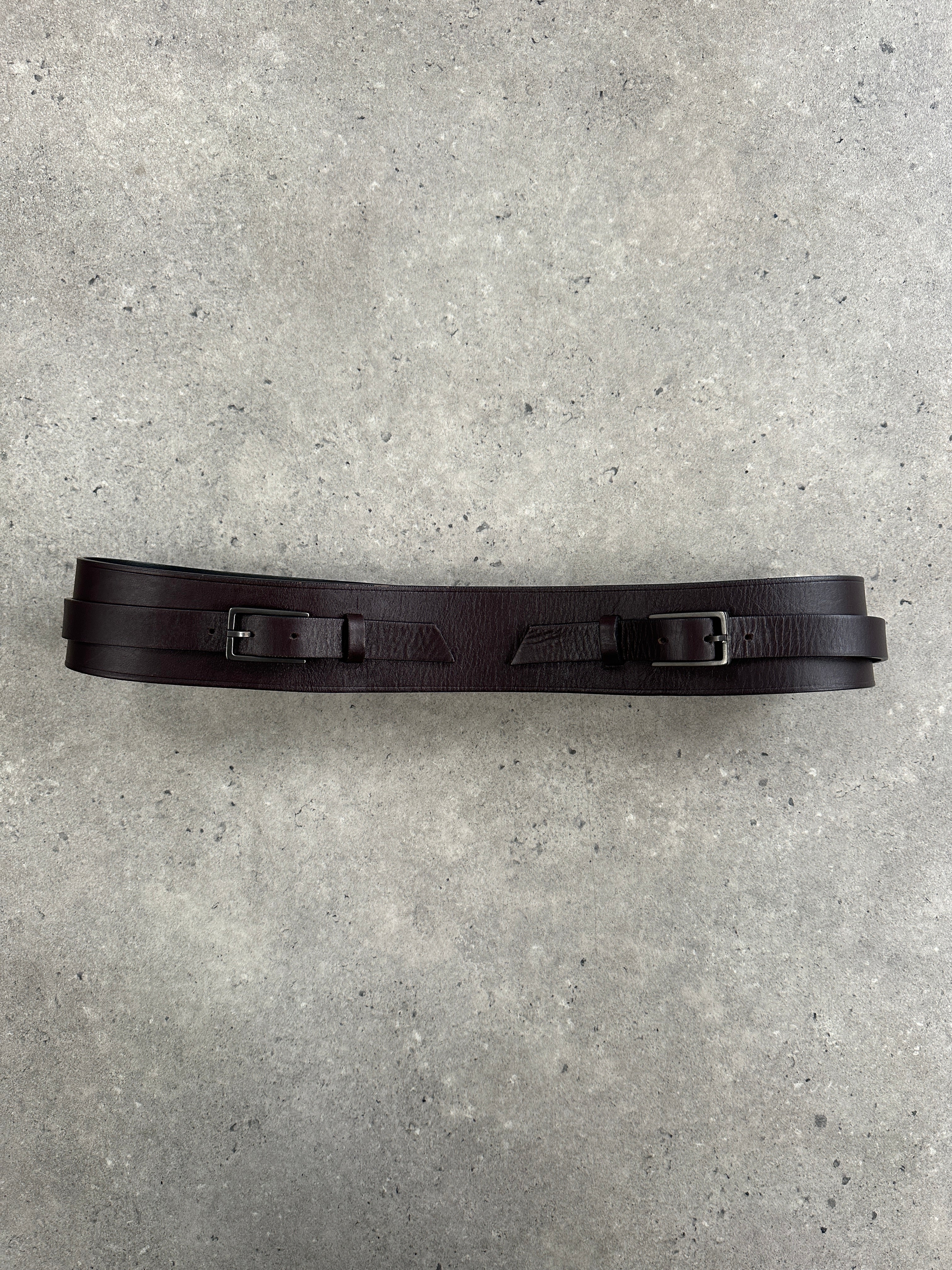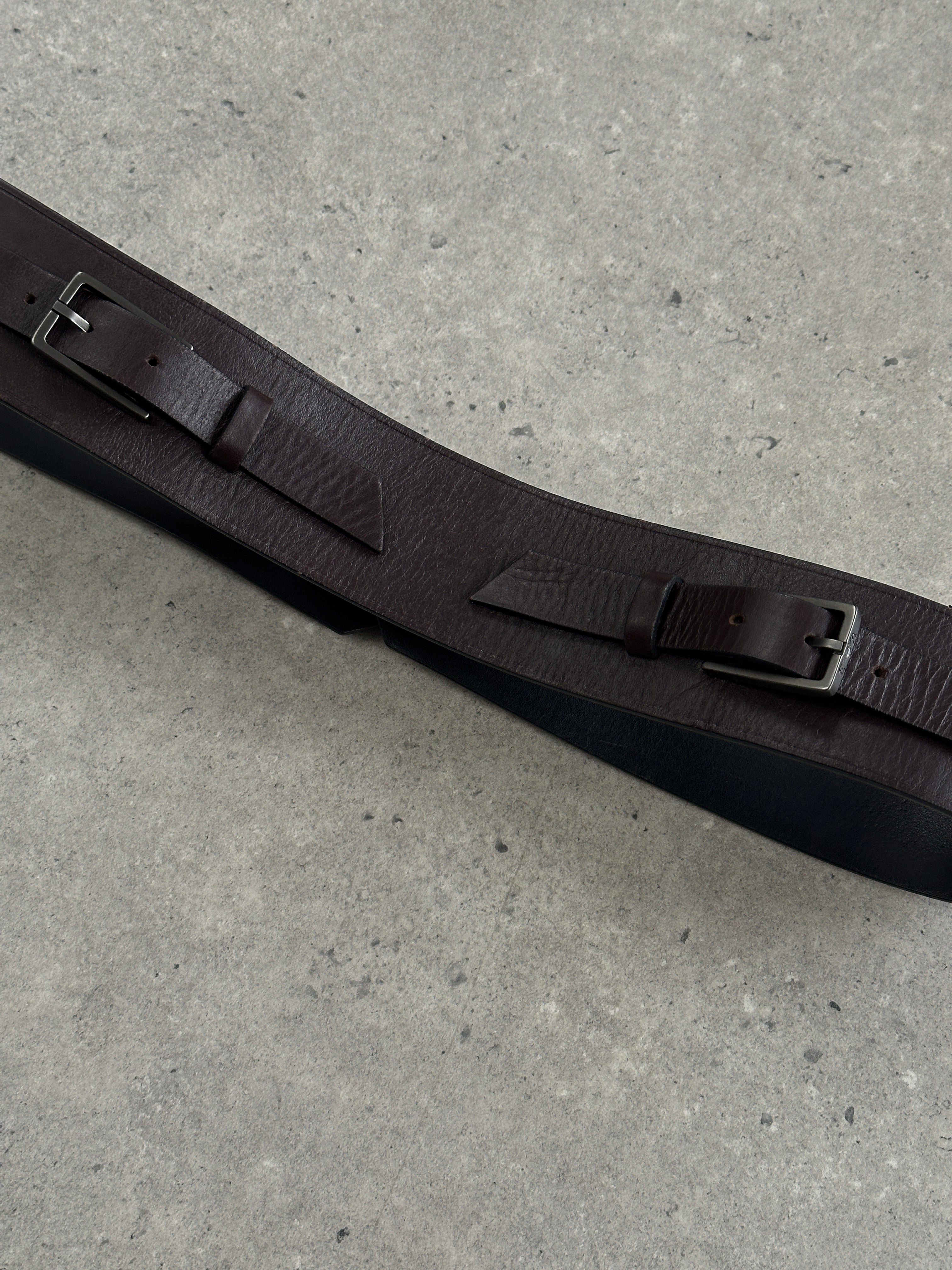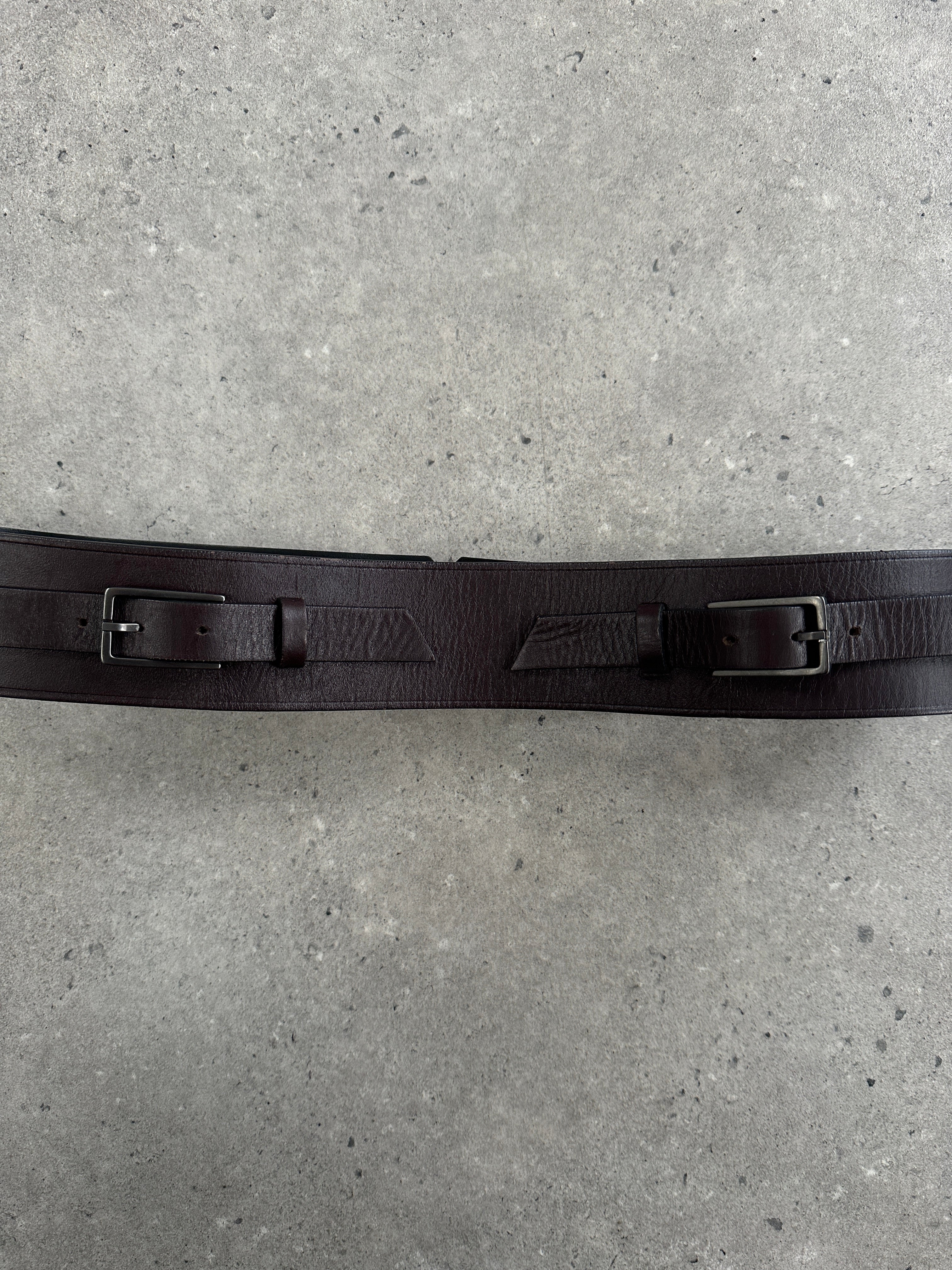 Emporio Armani 2000s Brown Leather EA Buckle Belt - W30–32