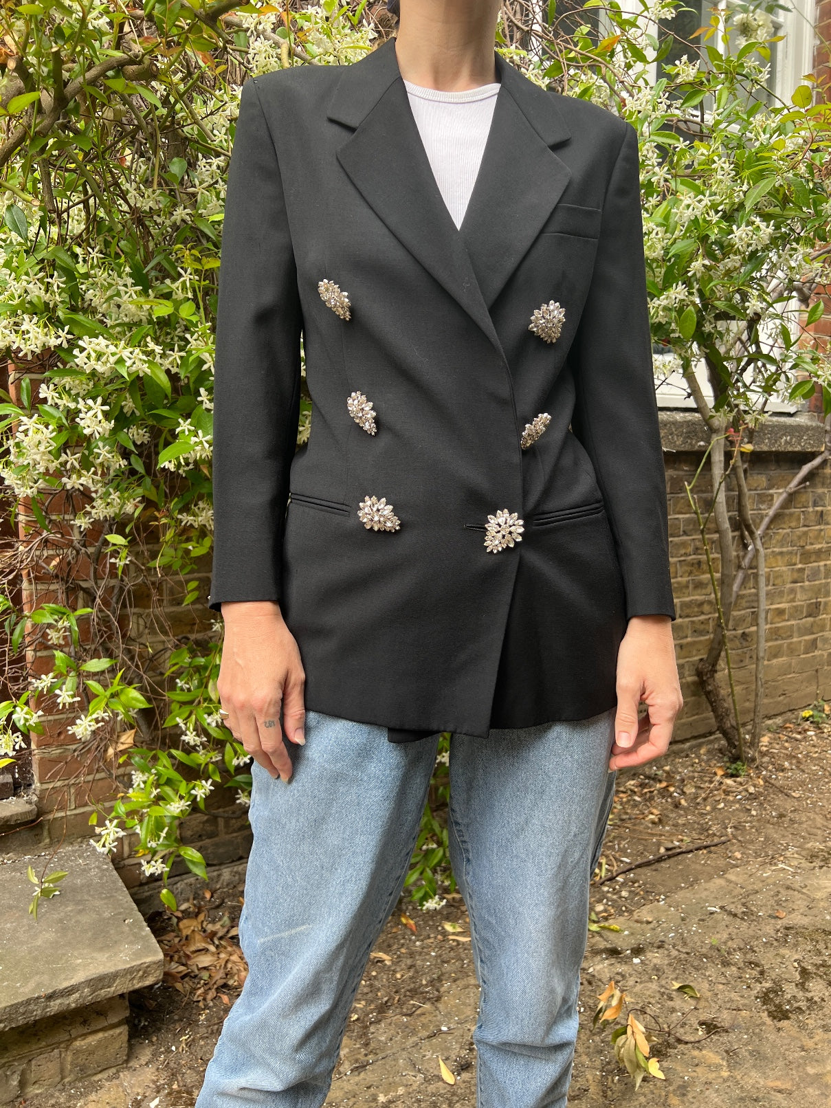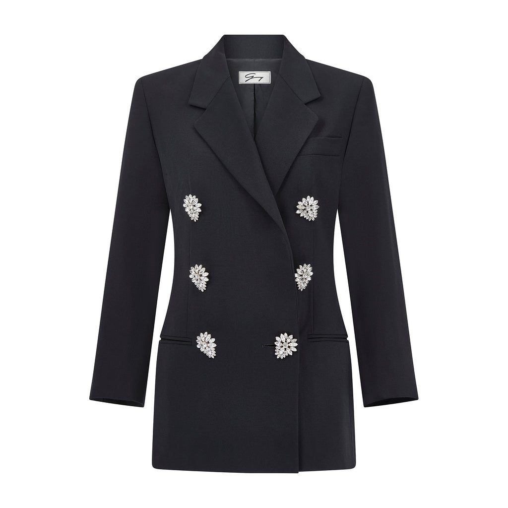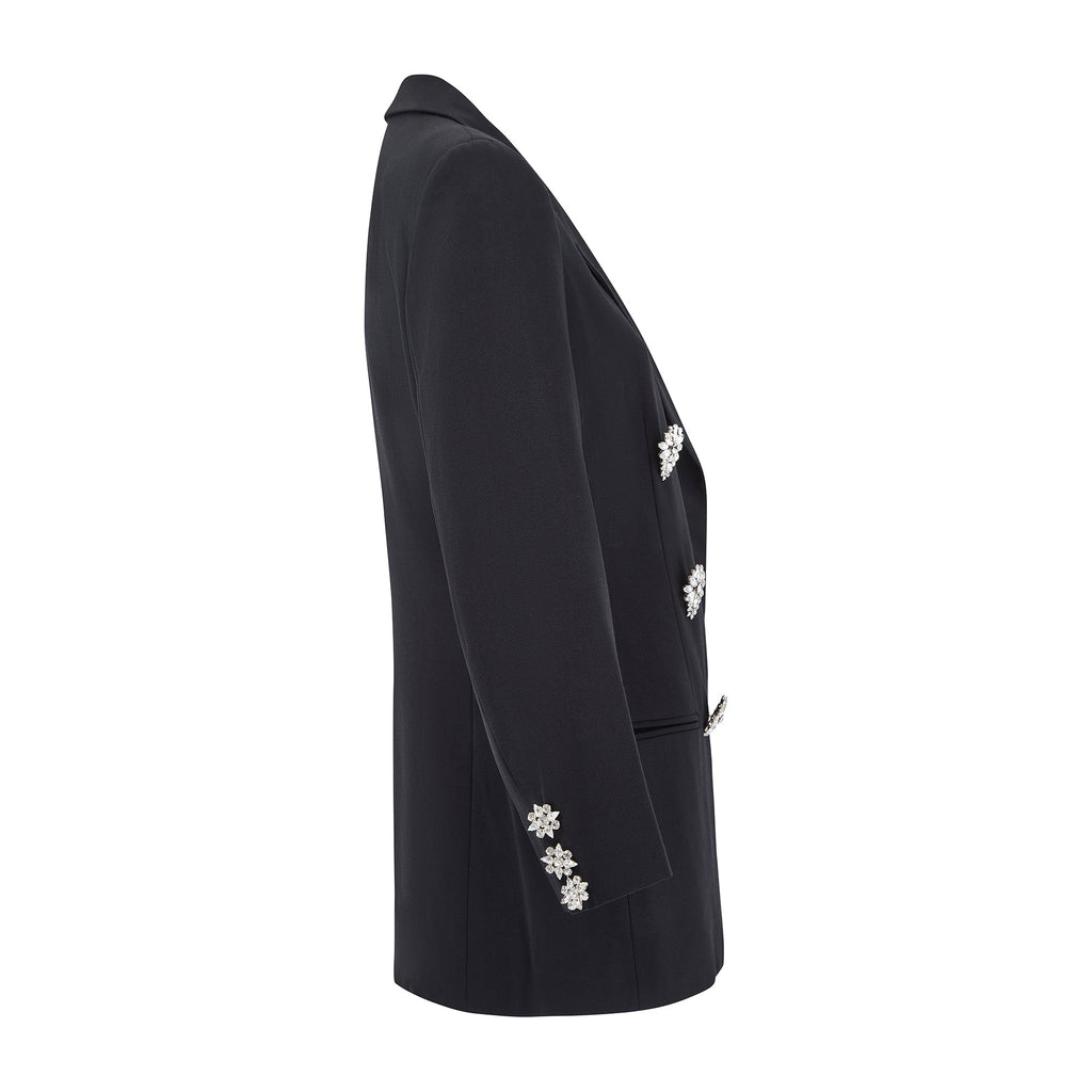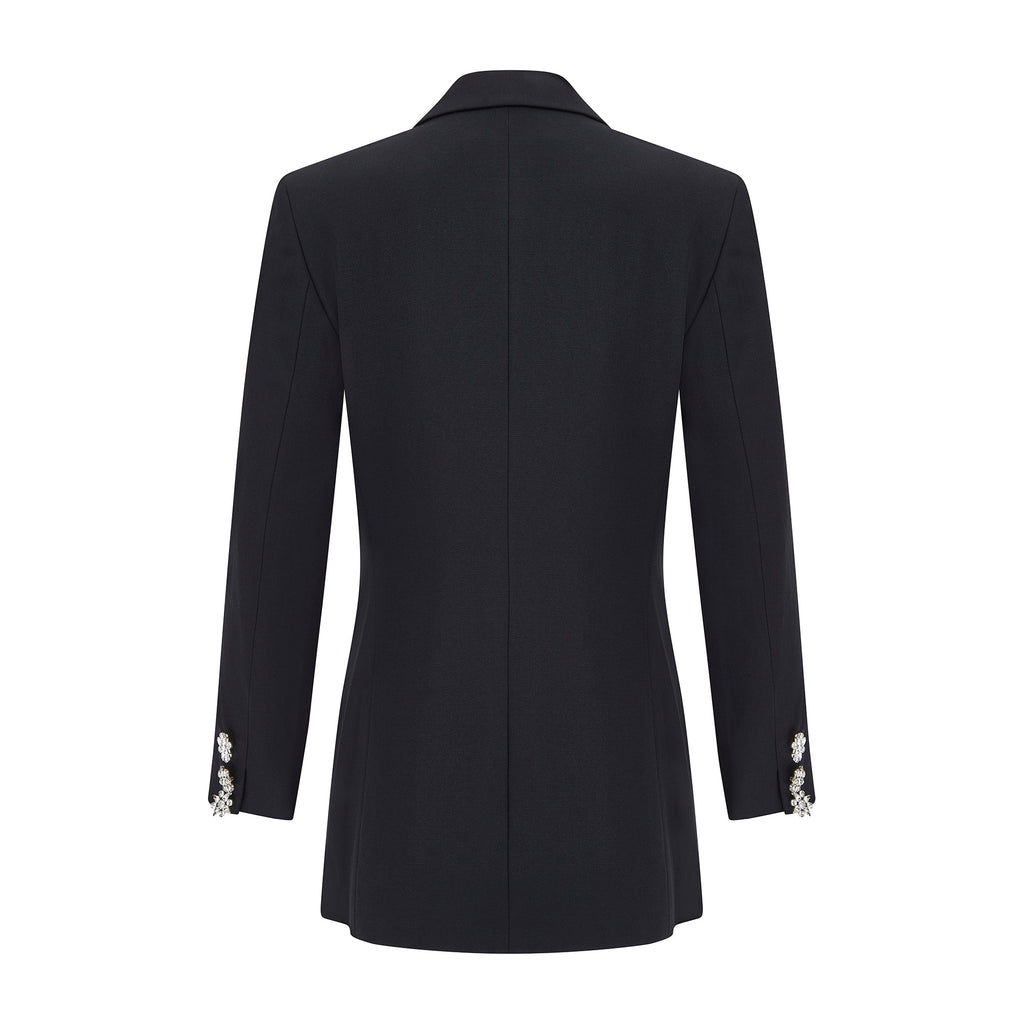 1990s Gianni Versace for Genny Black Jacket with Oversized Crystal Buttons