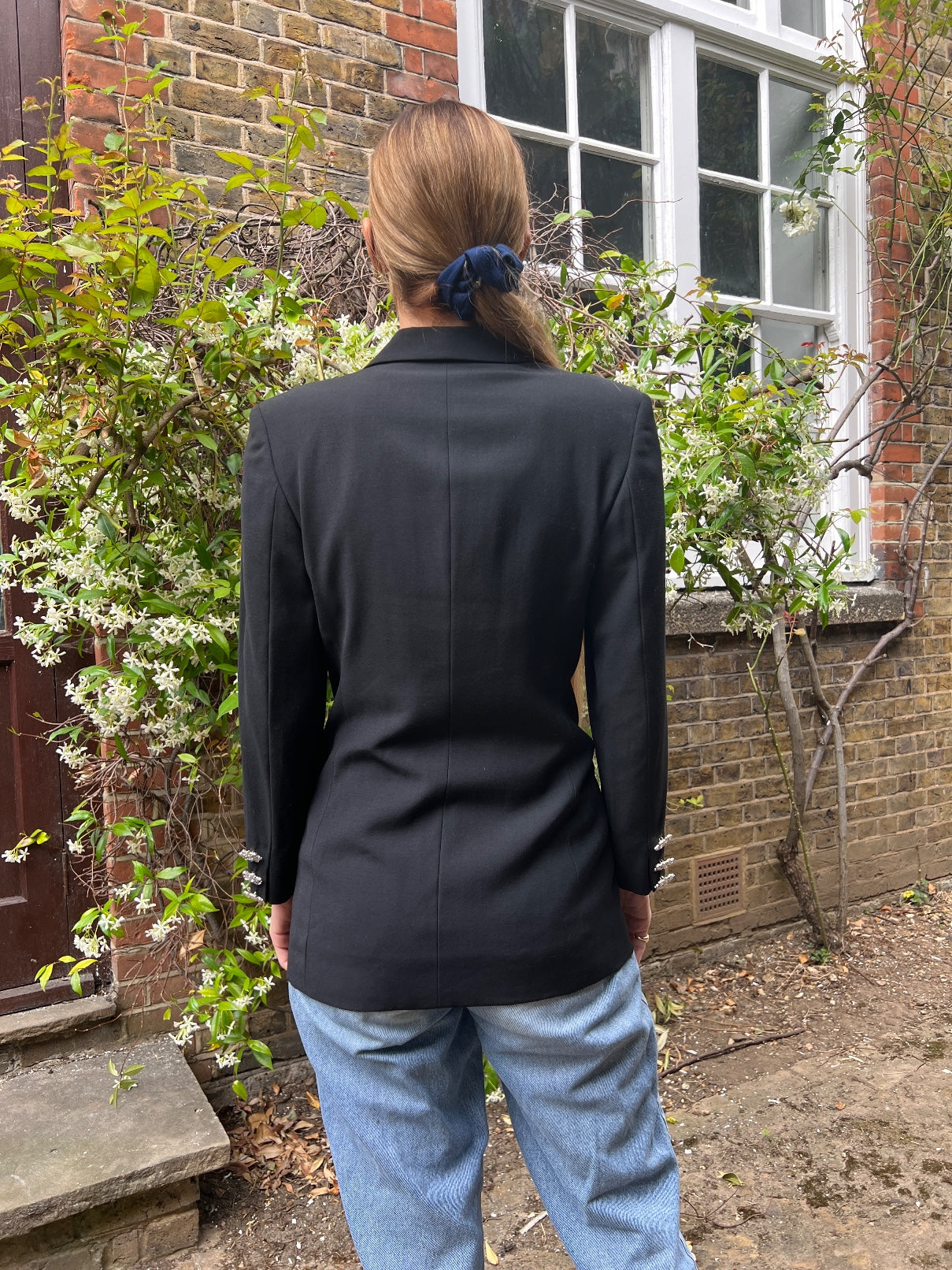 The jacket is in very good vintage condition; there is a small, repaired hole on the crease of the right shoulder which is very difficult to spot when worn. We only noticed with the jacket in hand during our studio shoot. The size label states that this is an Italian size 40, a UK size 8 or US 4. Our model is a UK 8-10, US 4-6 and 5ft 11in. (180cm) and this was quite tight fit without moving the buttons so we are going with true to size on this one. There is always the option to play around with the buttons if you need a bit of extra space. The composition label states that this is 100% Wool with a lining of 100% Cupro. The fabric has no stretch.