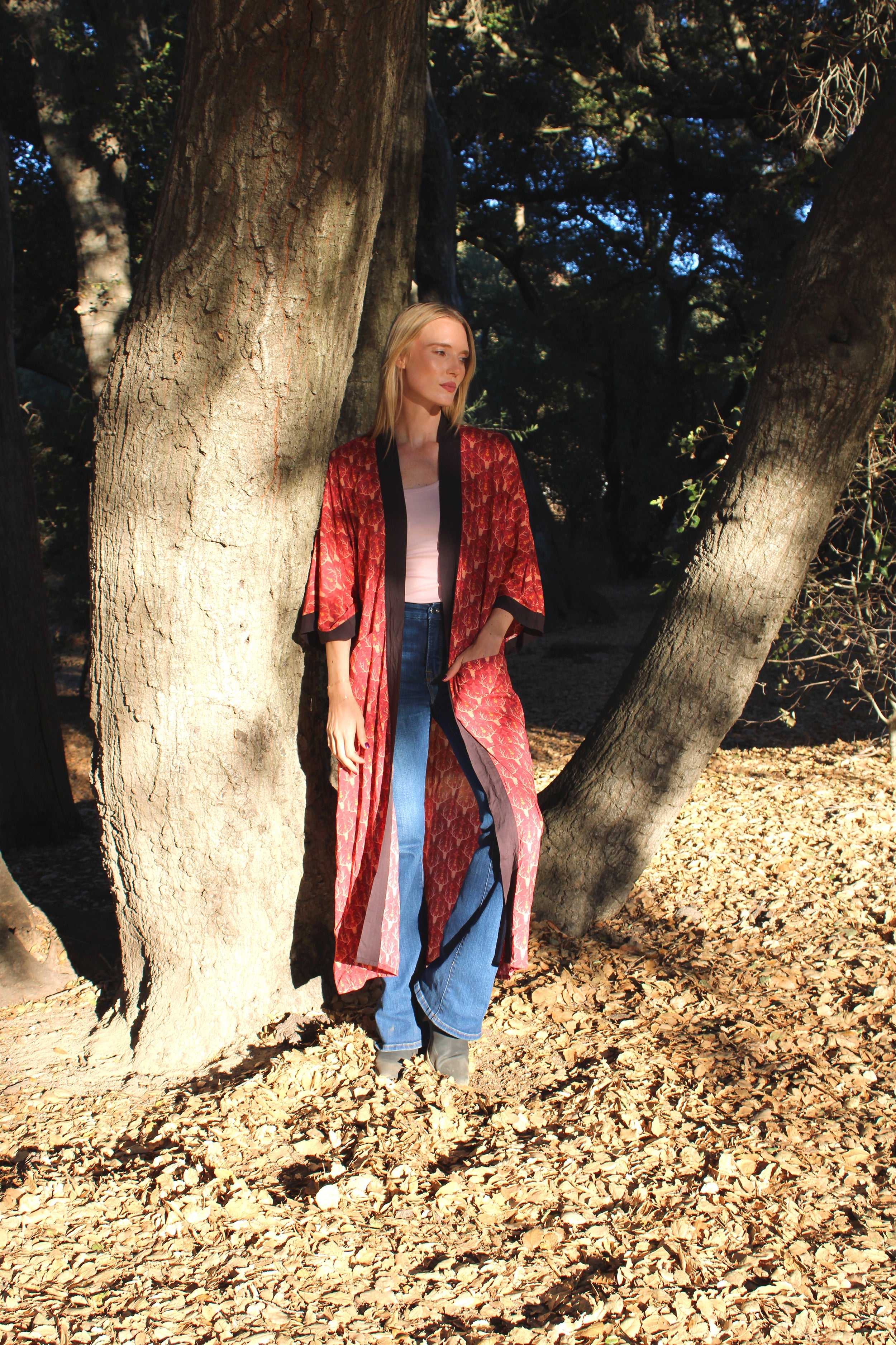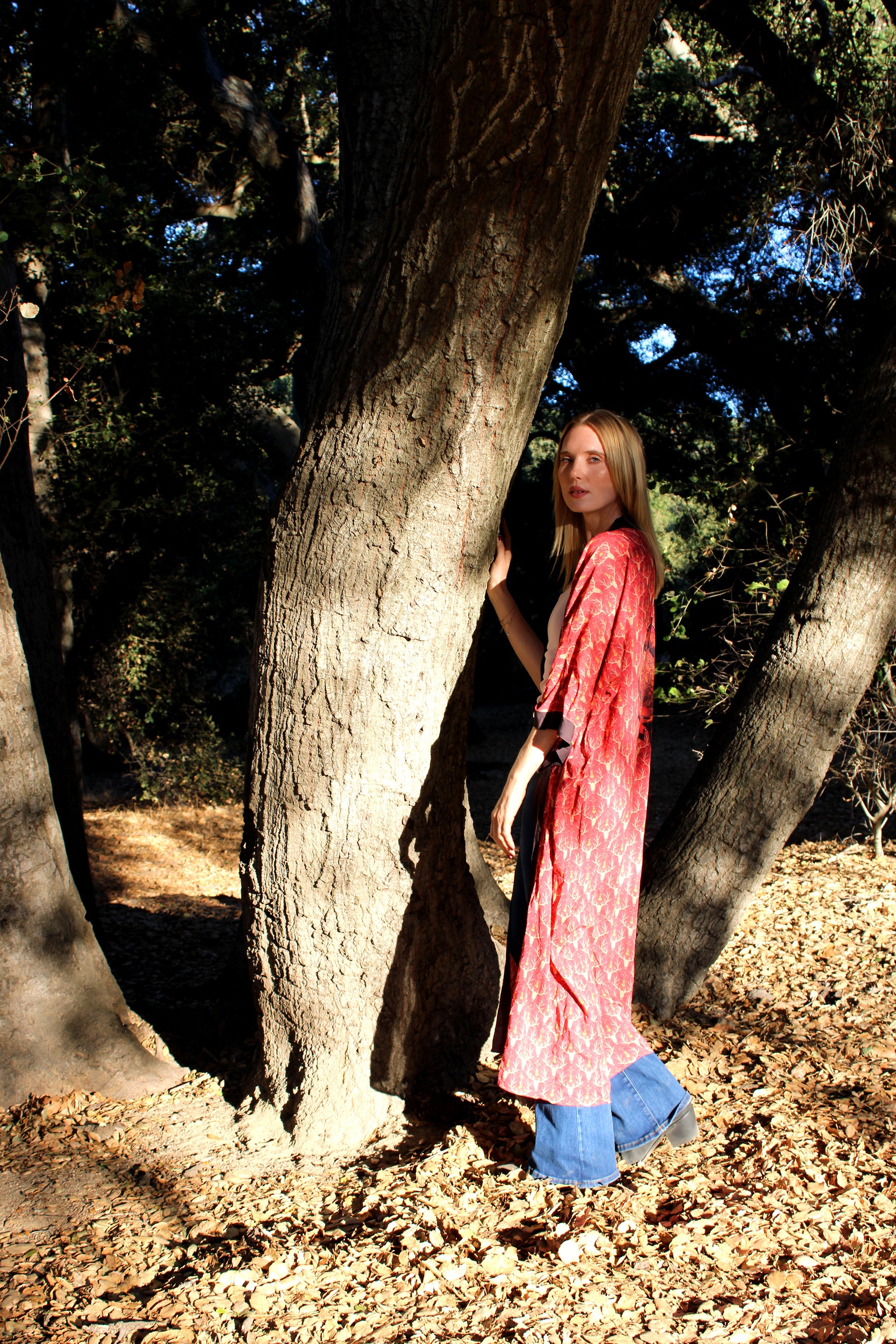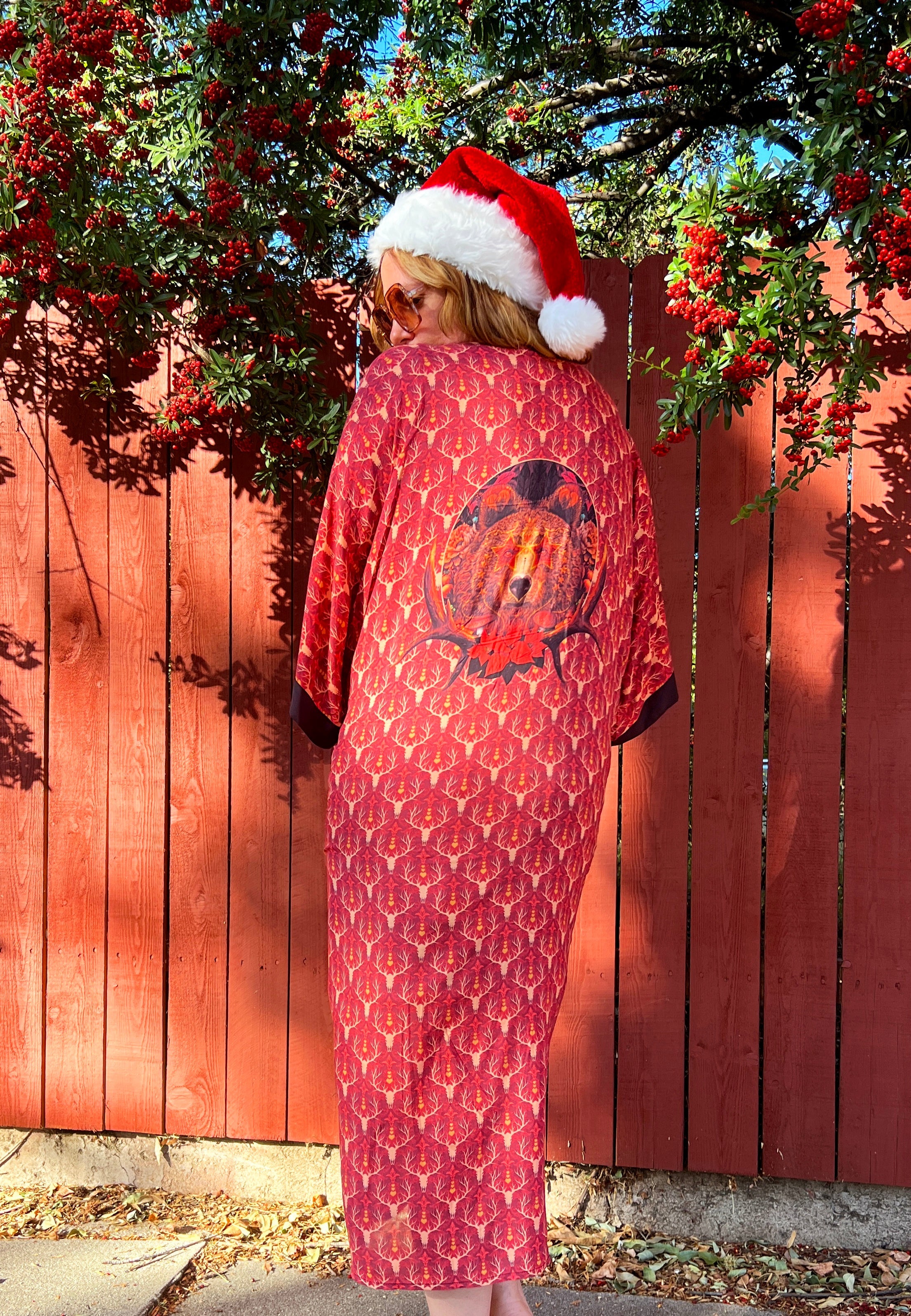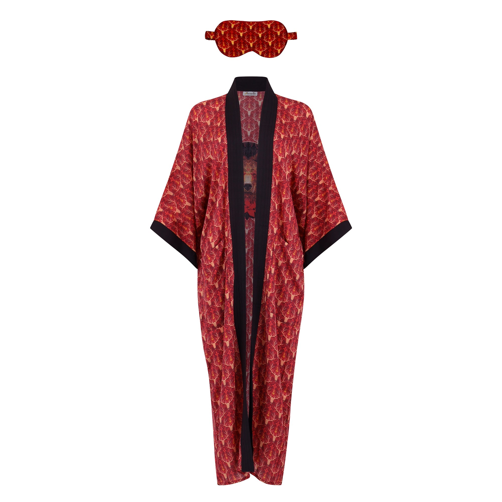Antler and heart print featuring Bear back piece, inspired by the Sierra Mountains, Cali.  Duster robe and silk sleep mask. Just add a log cabin and roaring fire. All original artwork printed with environmentally friendly inks.