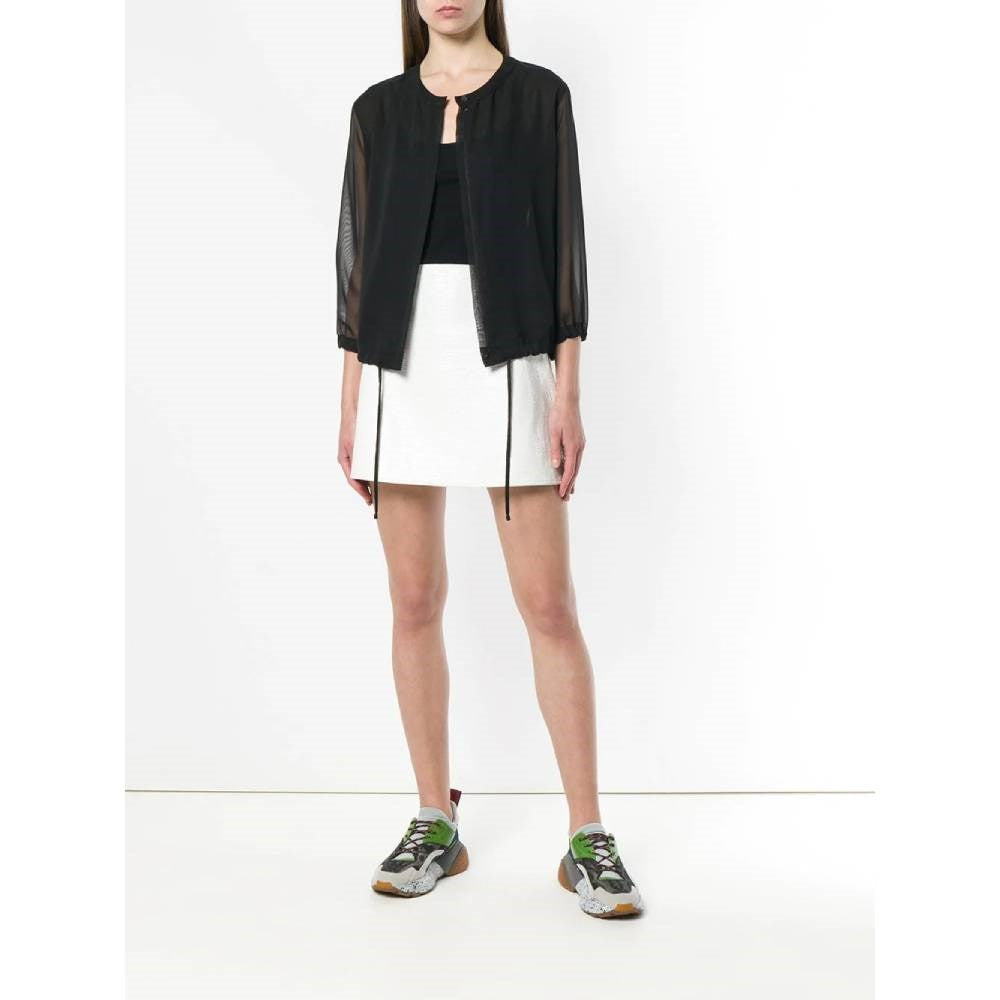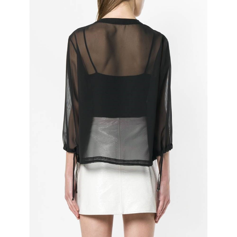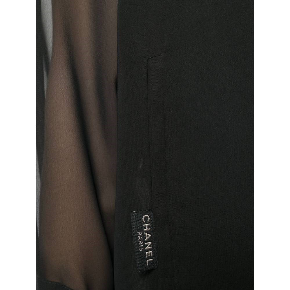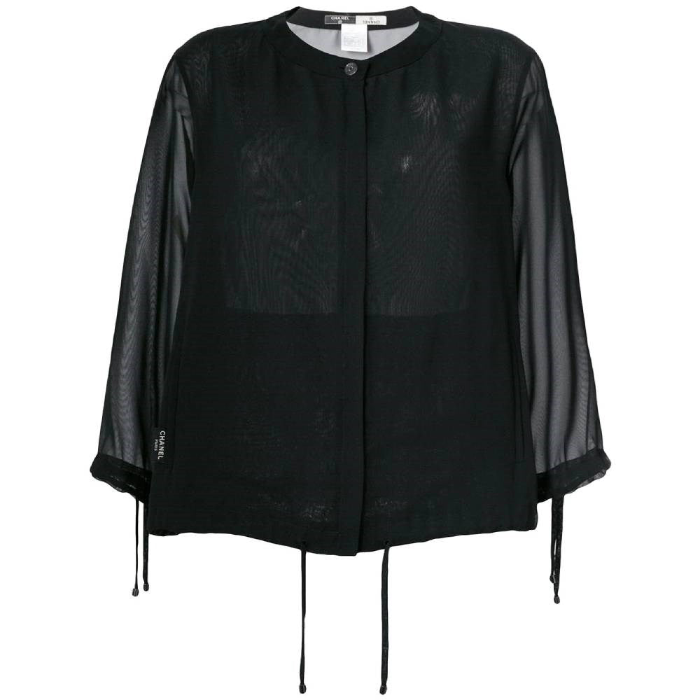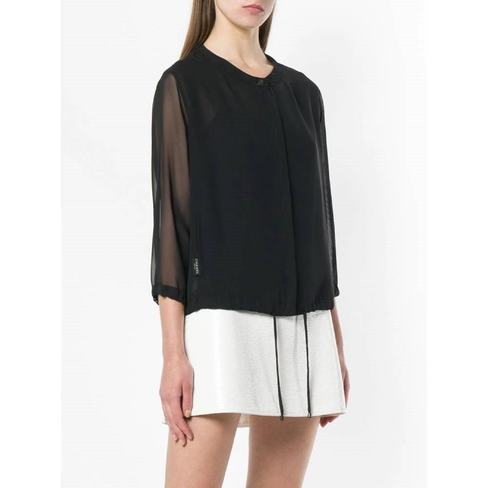 Chanel black semitransparent polyester cardigan. Model with crew neck, three-quarter balloon sleeves, concealed zip fastening, strings on the waist and cuffs.