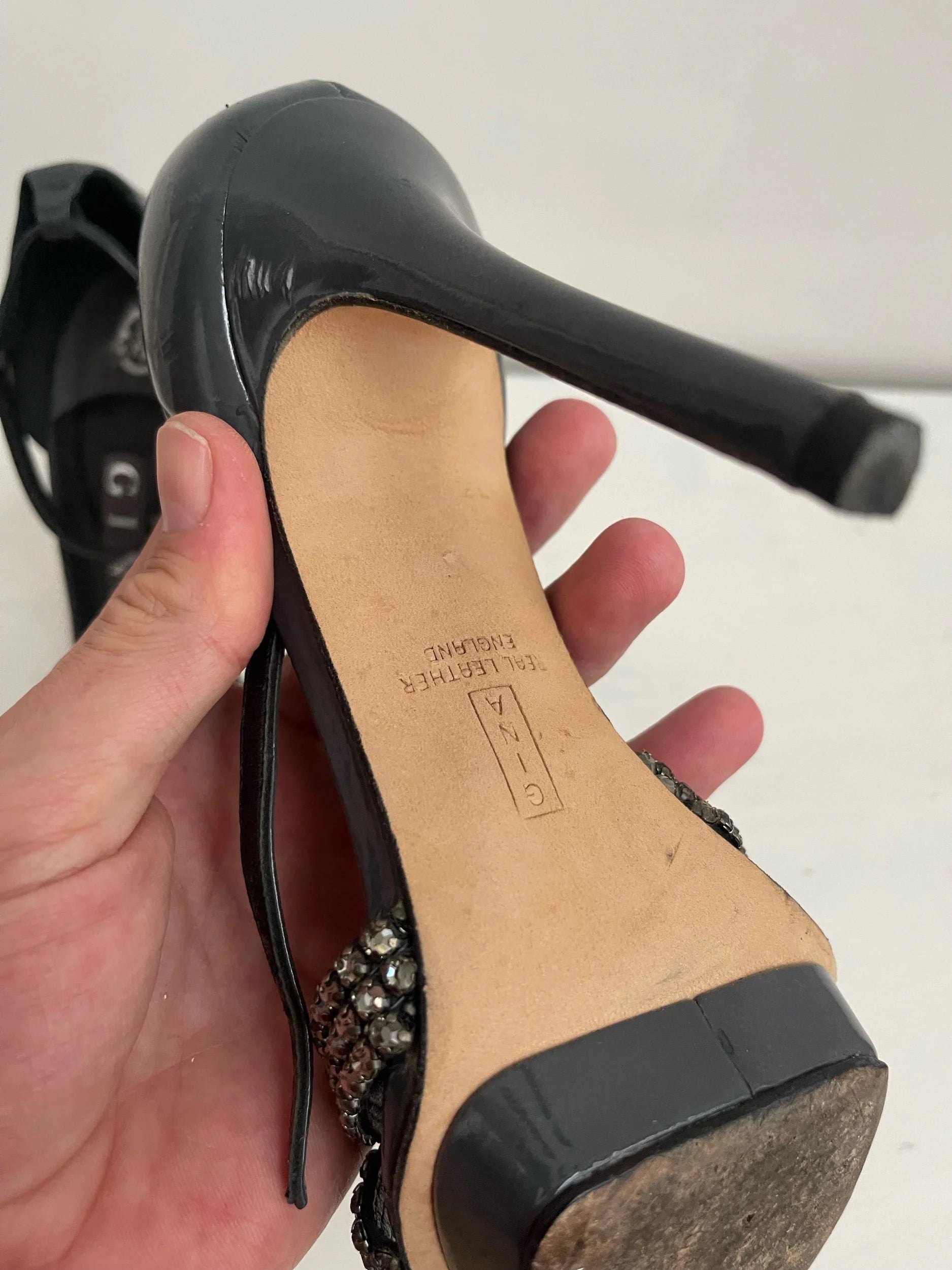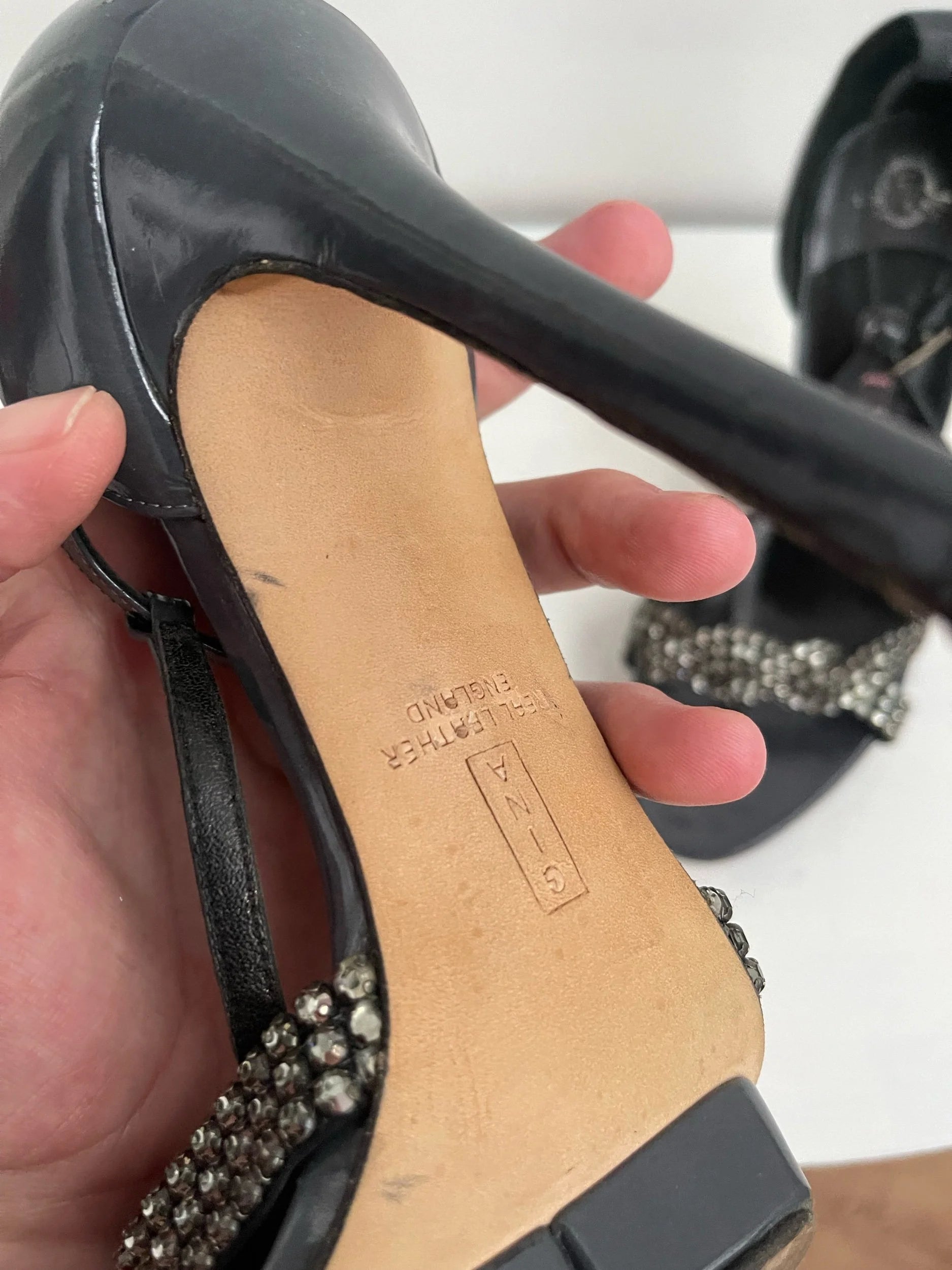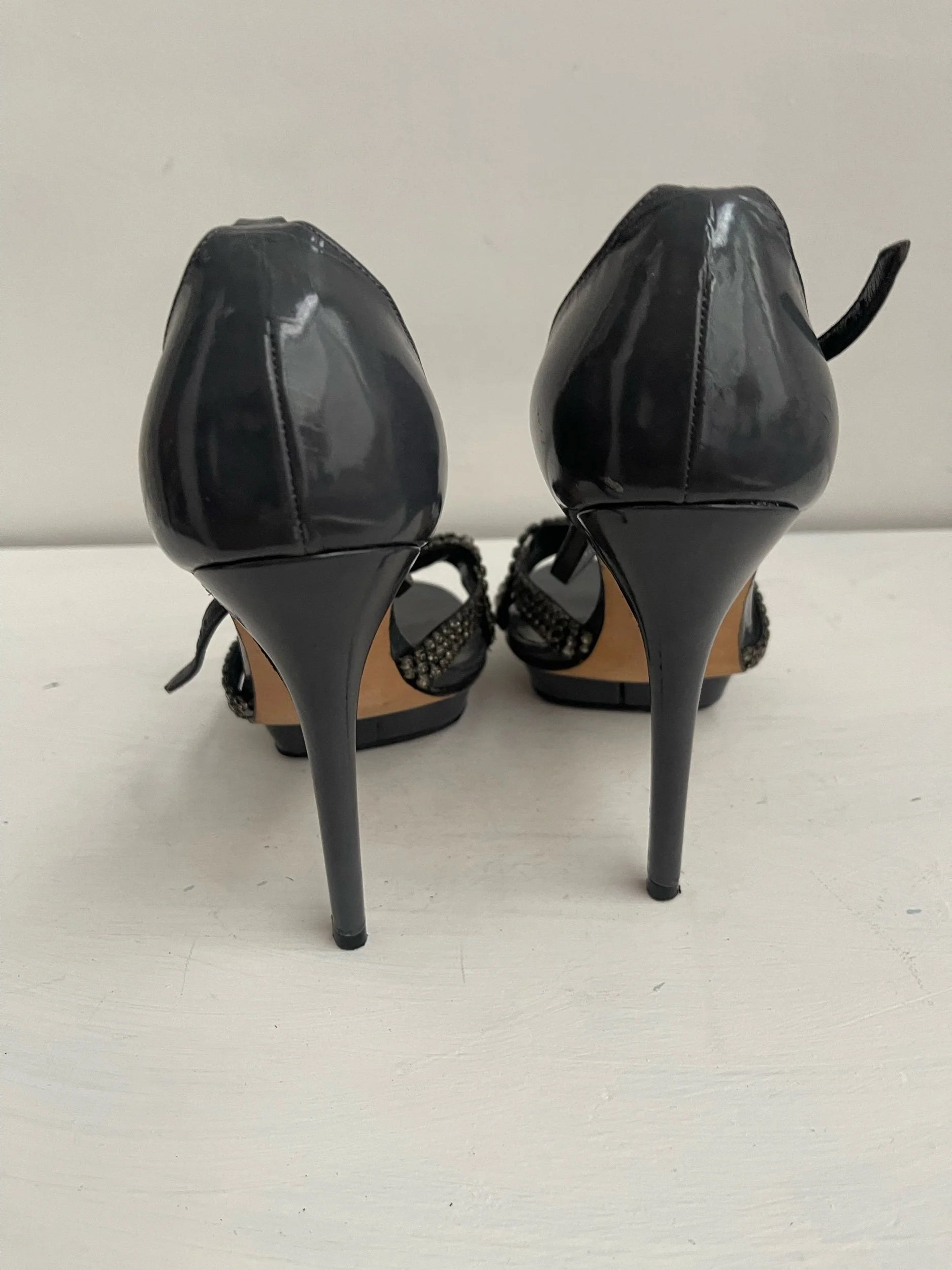 Gina London Patent Platform Sandals with Crystal Twist – Size UK 5