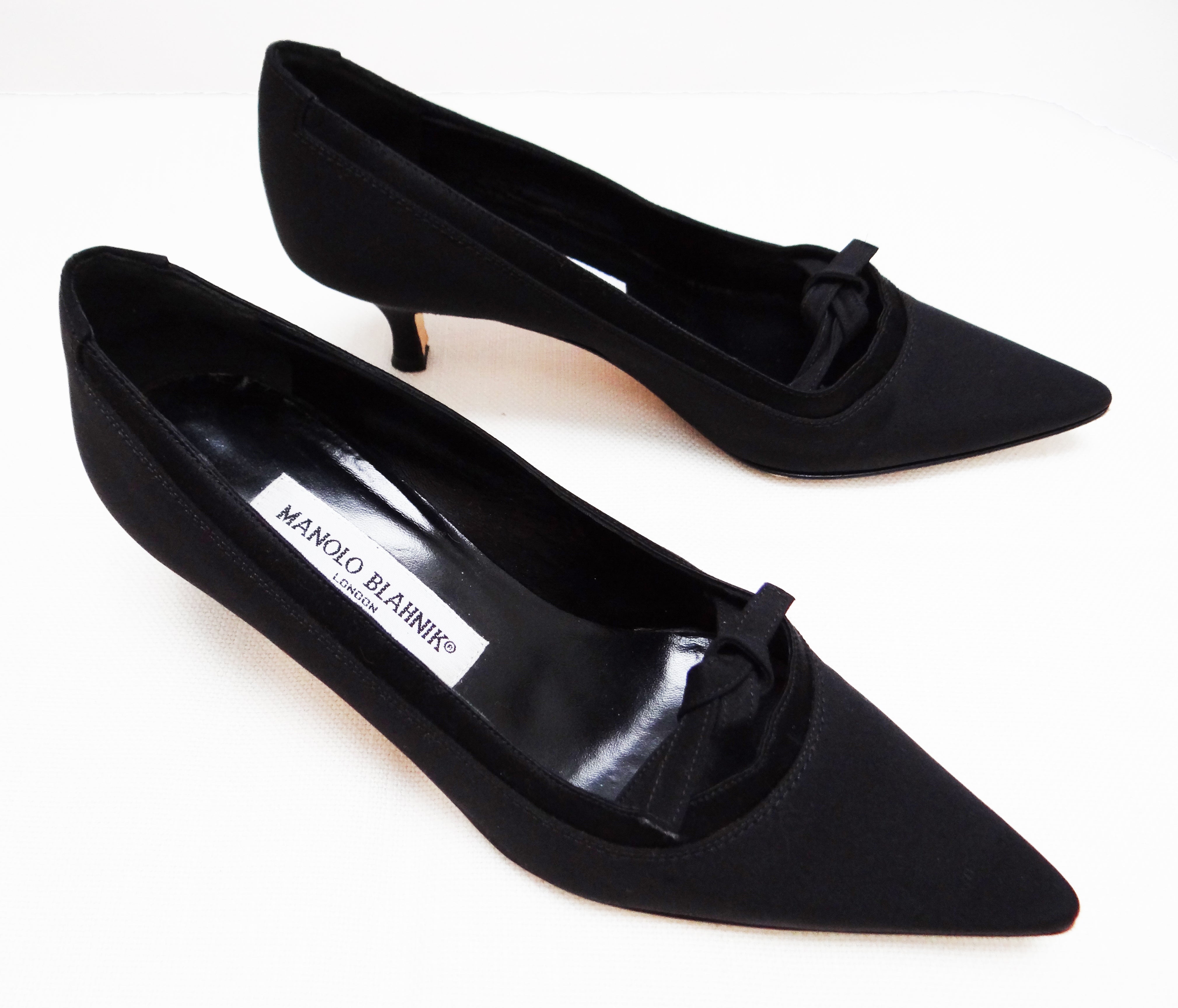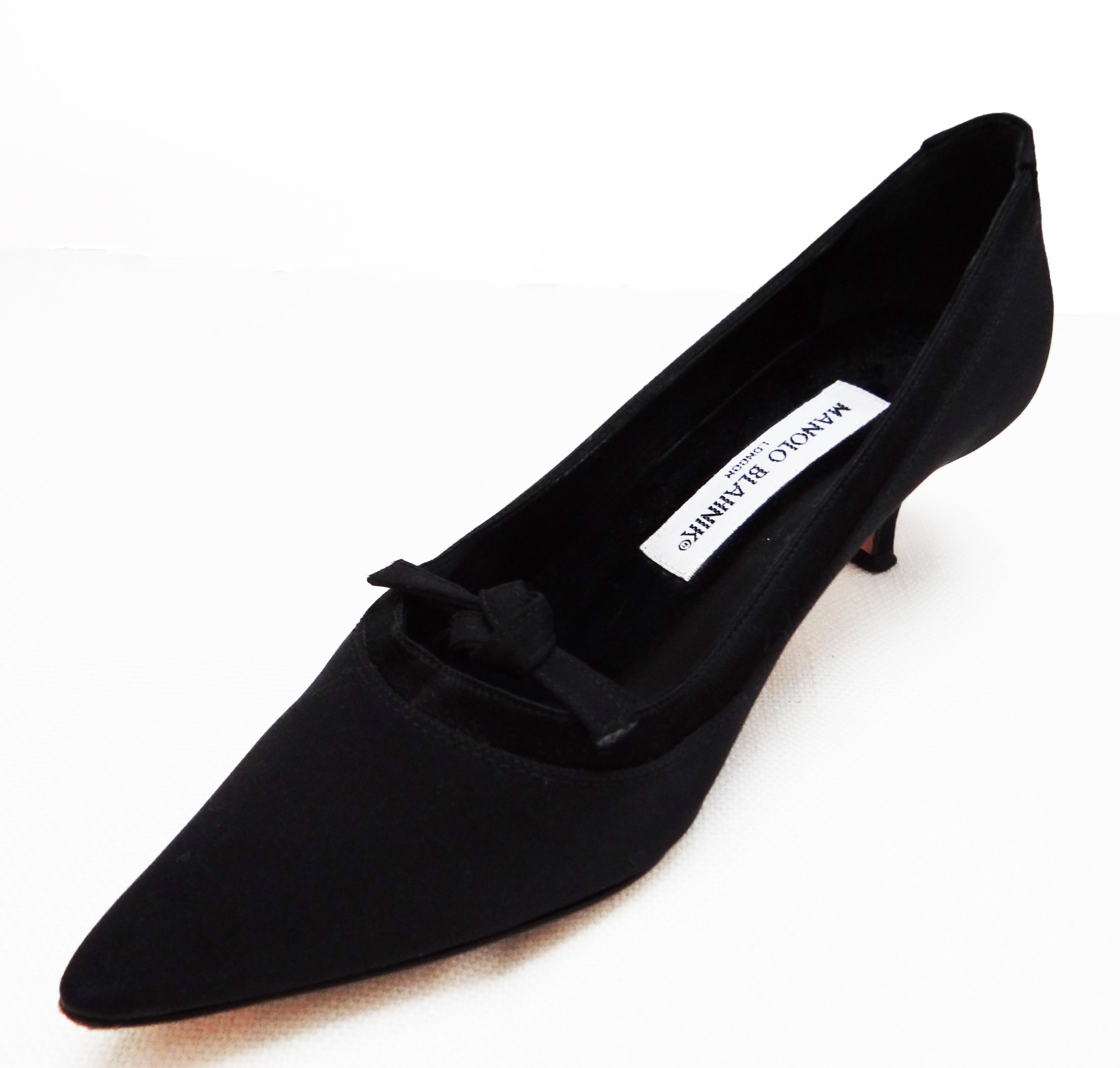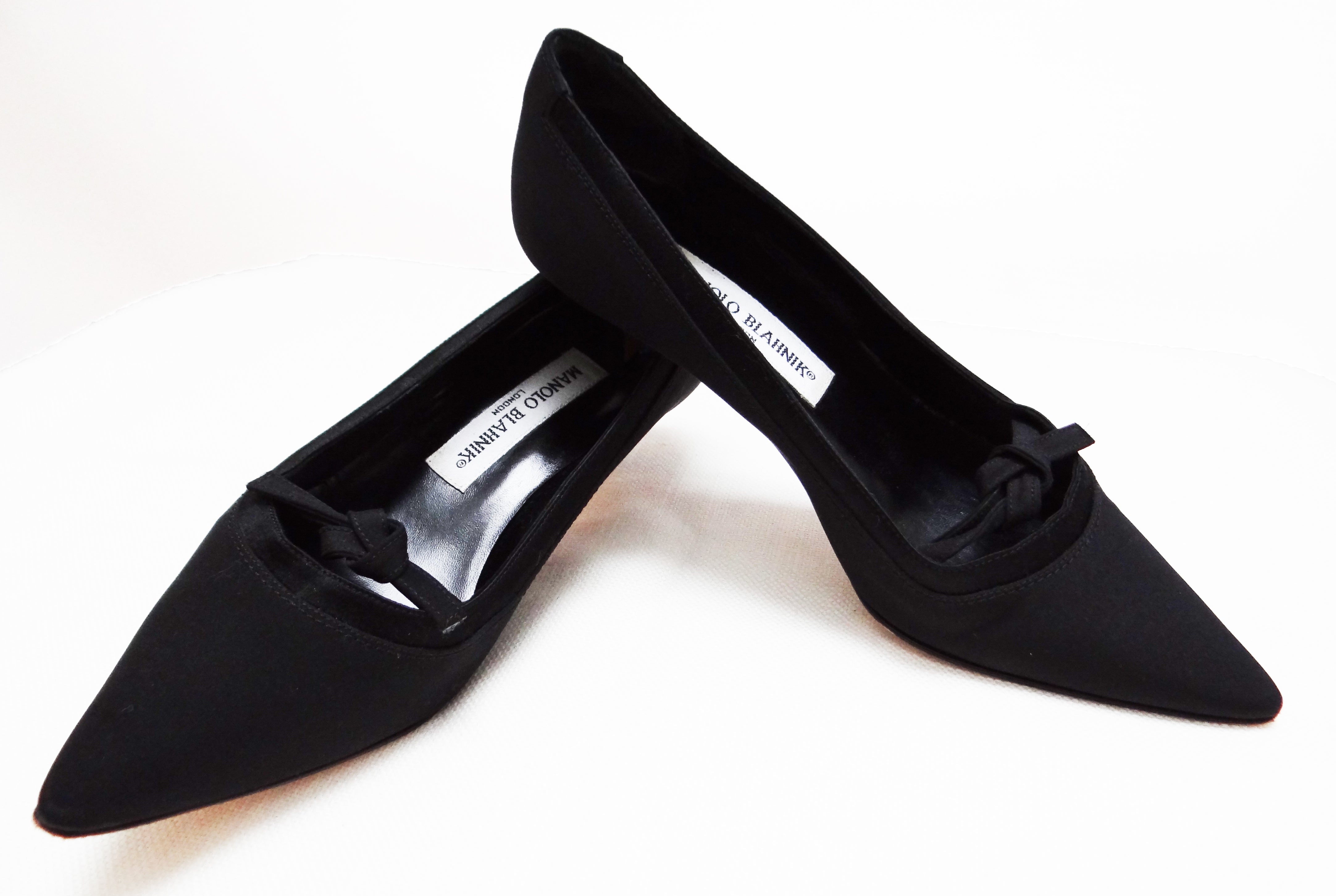 Manolo Blahnik Black Satin Evening Shoes, EU35.5