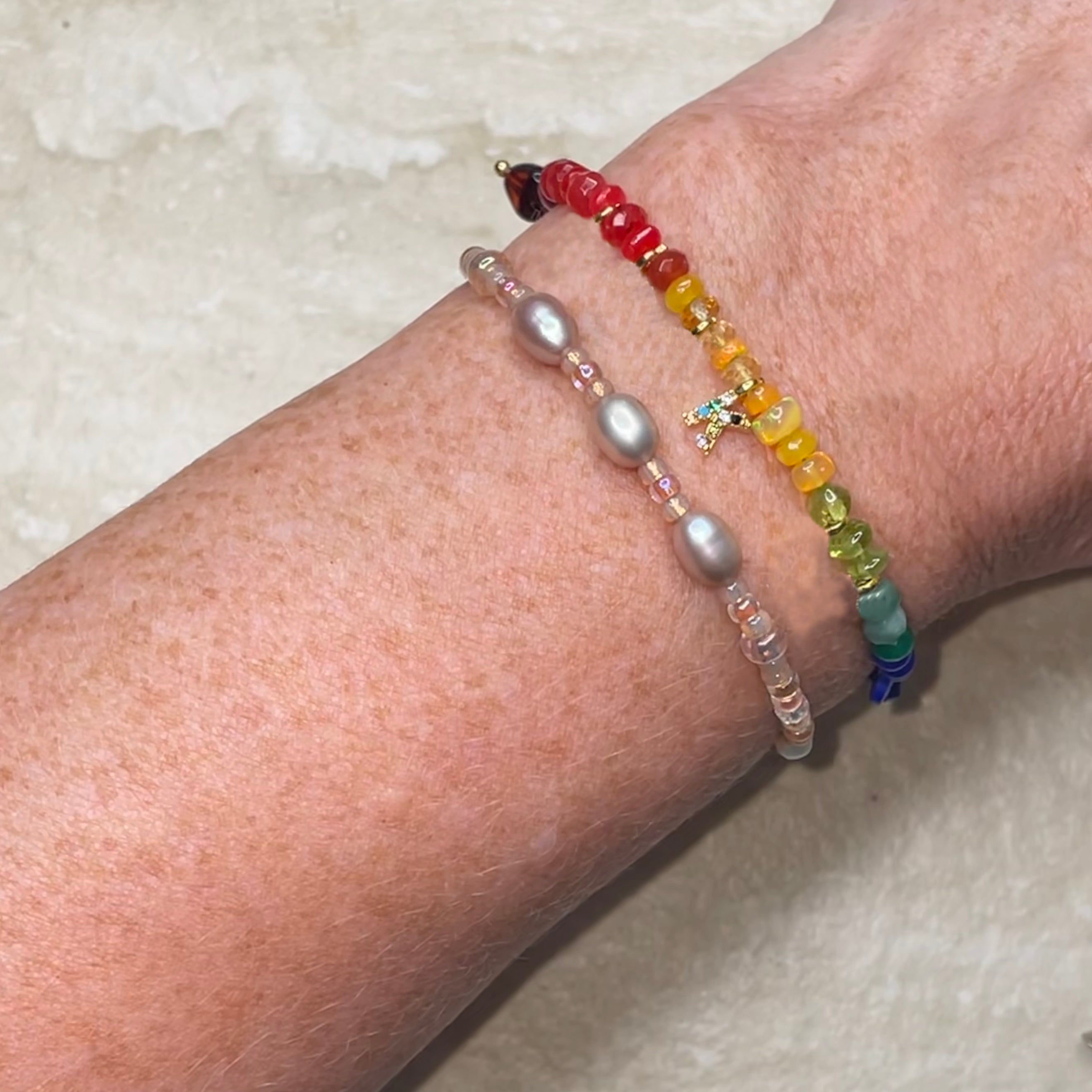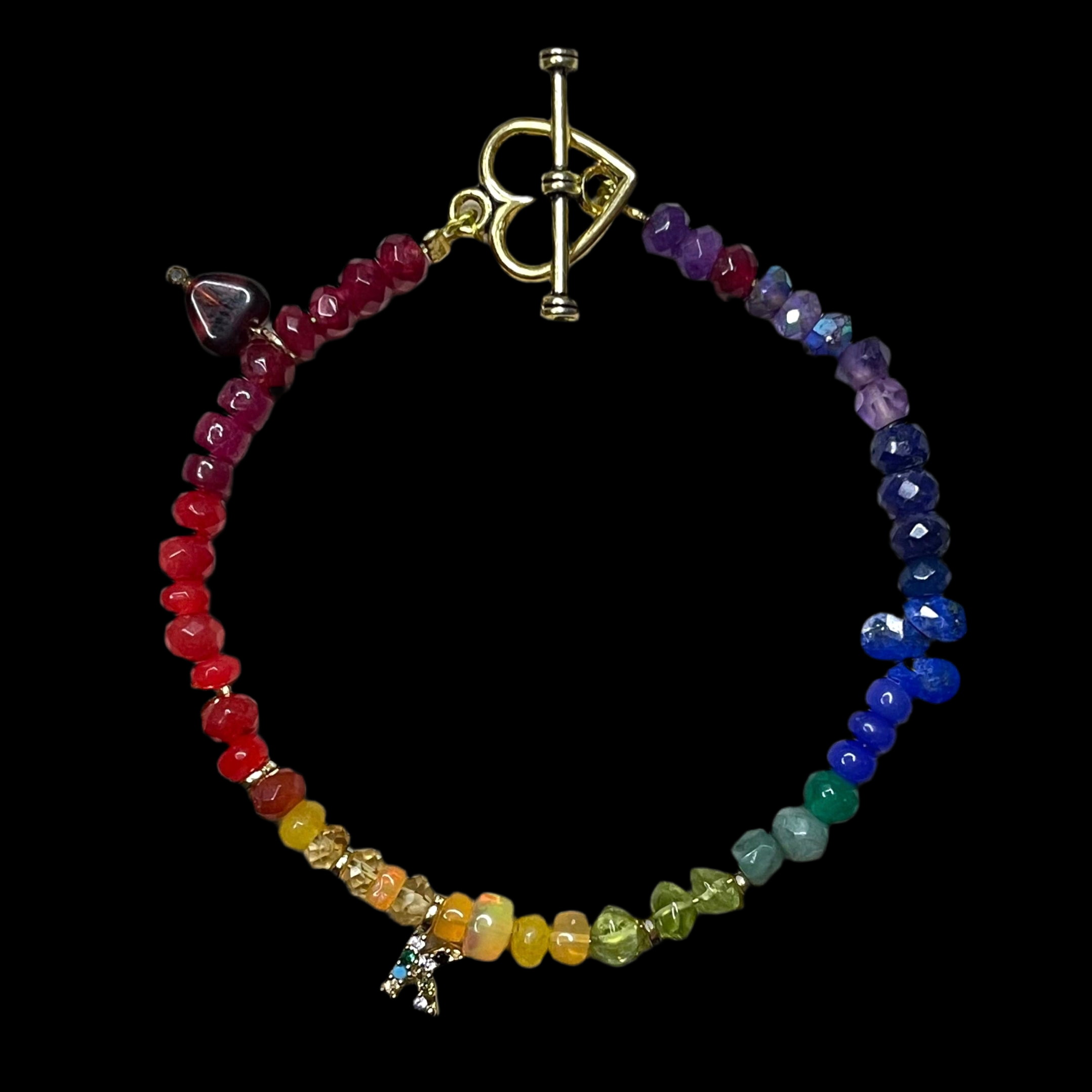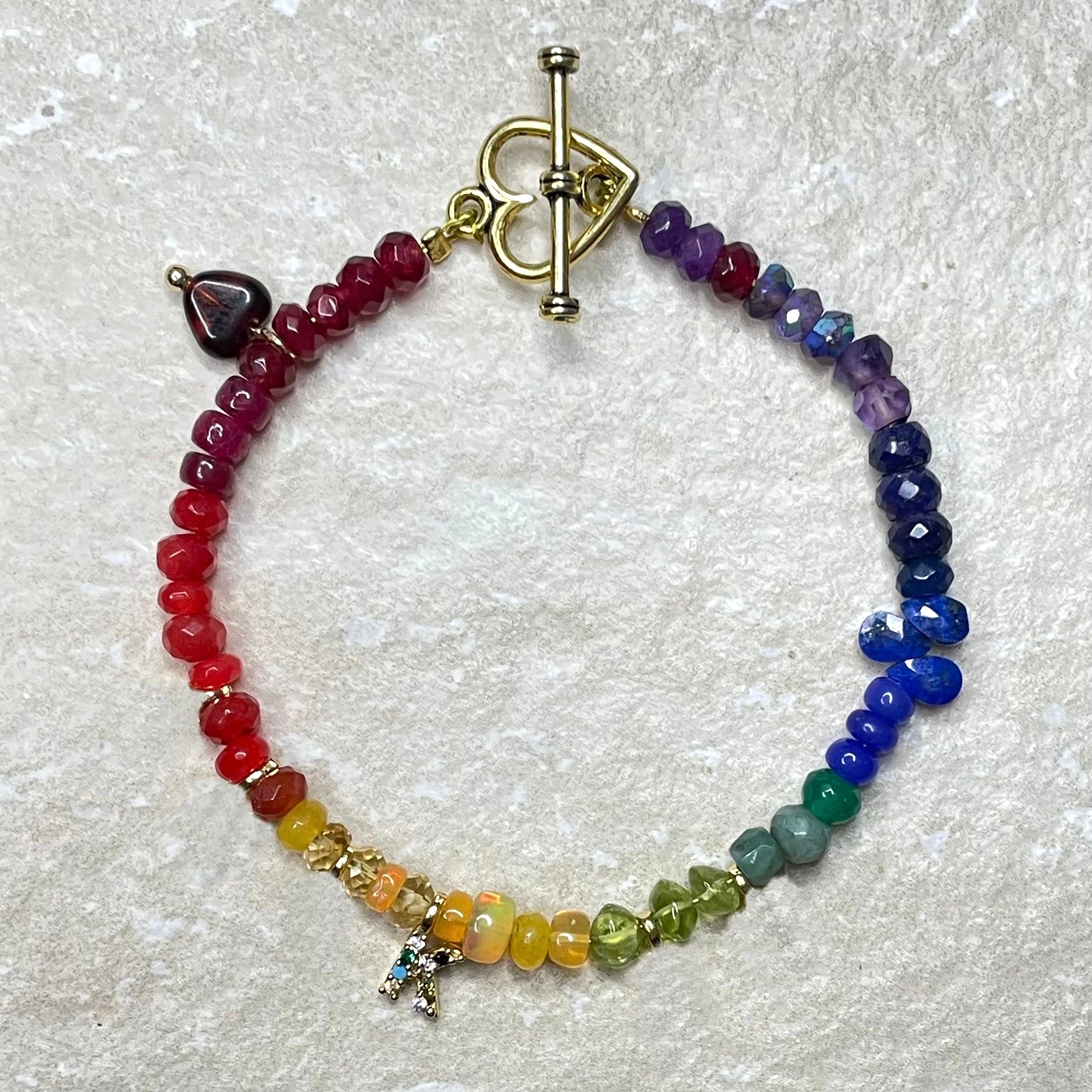 Part of our Precious Elements Collection, the Everything Bracelet blends rainbow shades of precious and semi-precious stones including sustainably sourced ruby, carnelian, Ethiopian opal, citrine, peridot, emerald, lapis lazuli, sapphire, amethyst and moonstone.