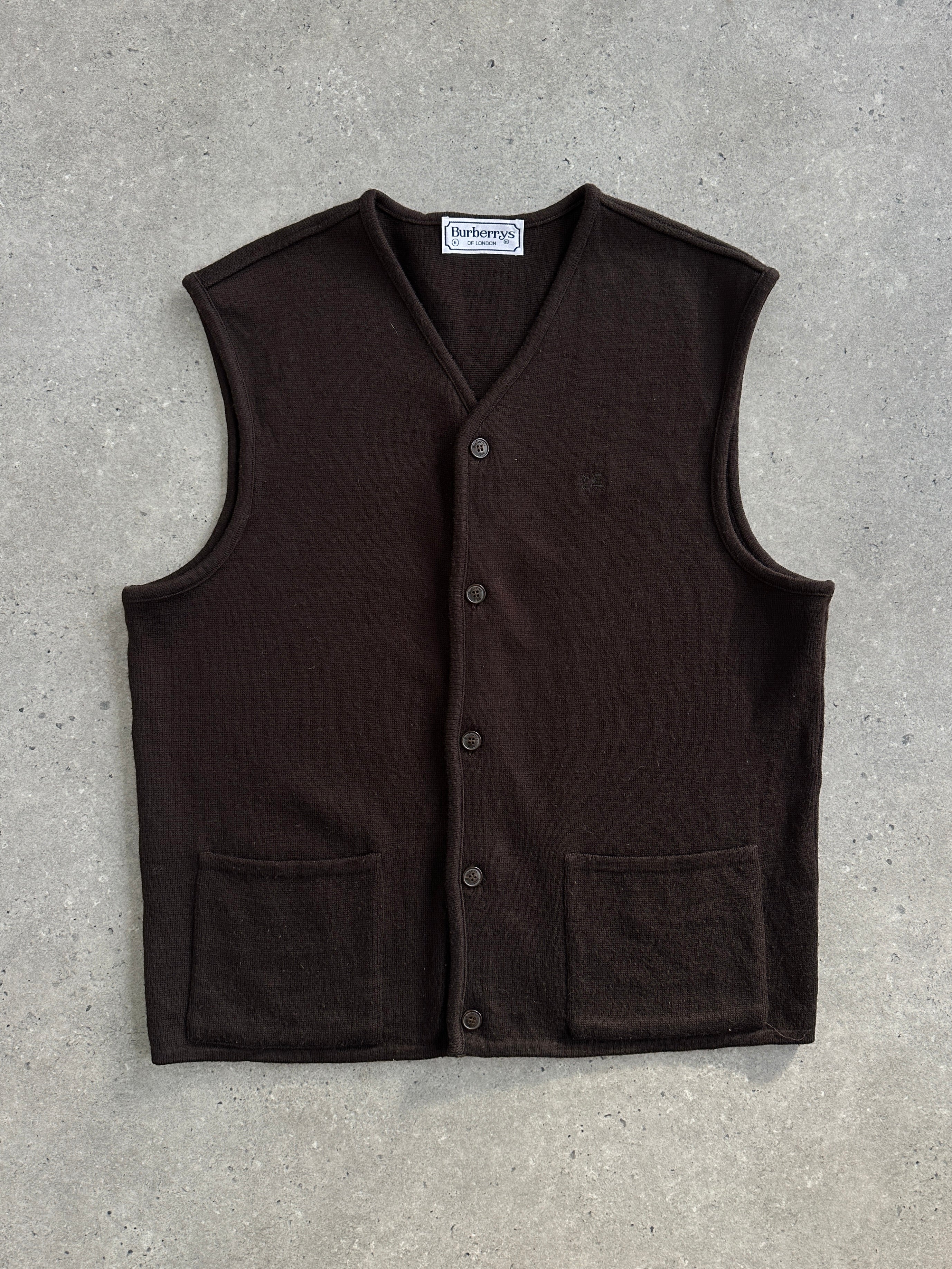 Burberry 1990s Merino Wool Logo Sleeveless Waistcoat - M