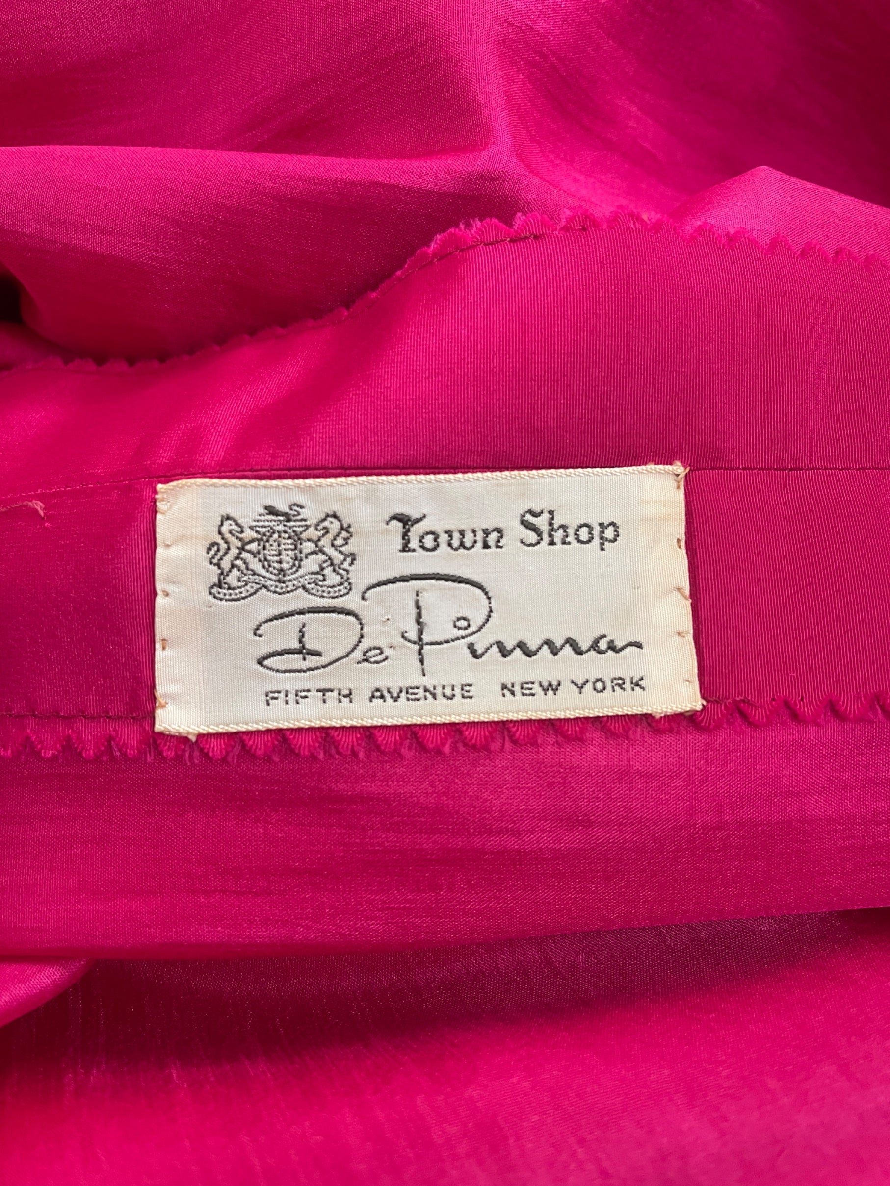 The label reads “De Pinna - Town Shop - Fifth Avenue, New York”. It is presented in remarkable vintage condition with no discernible faults. The fabric has no stretch so a best fit in our opinion for a UK 8-10 or US 4-6.