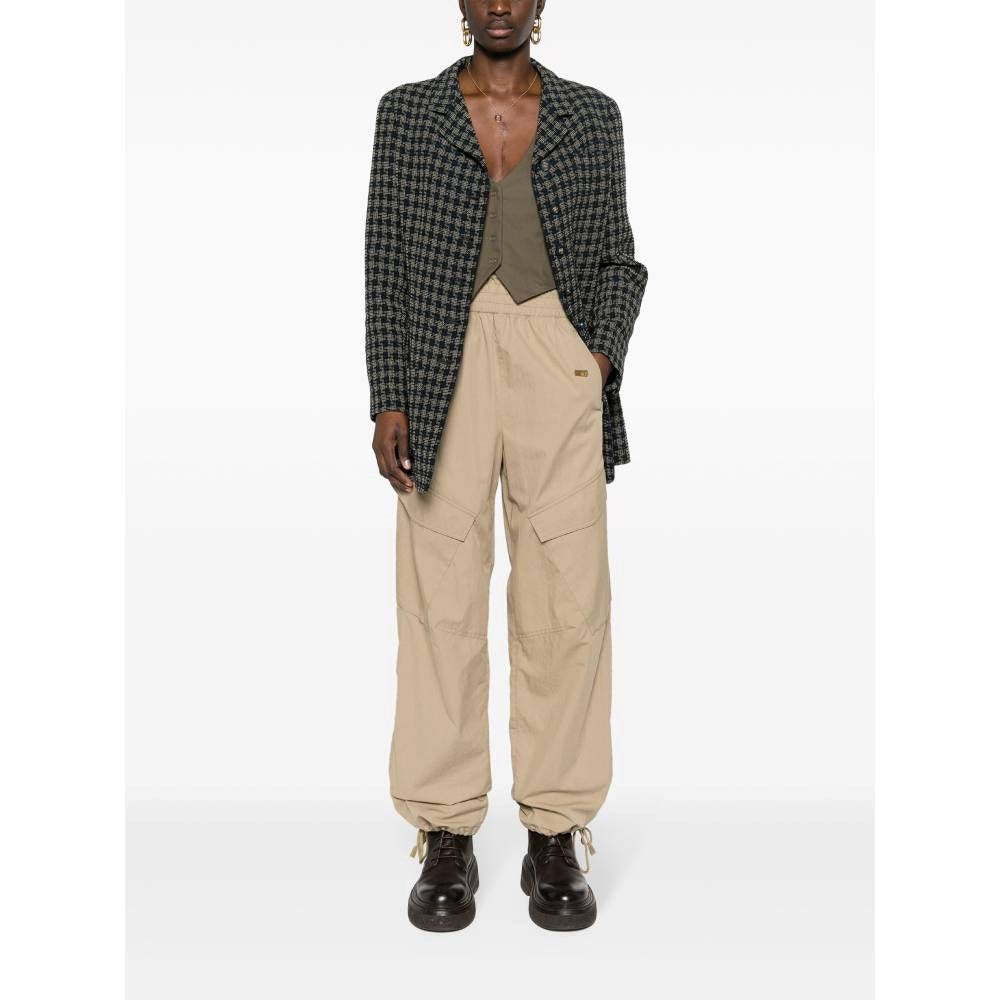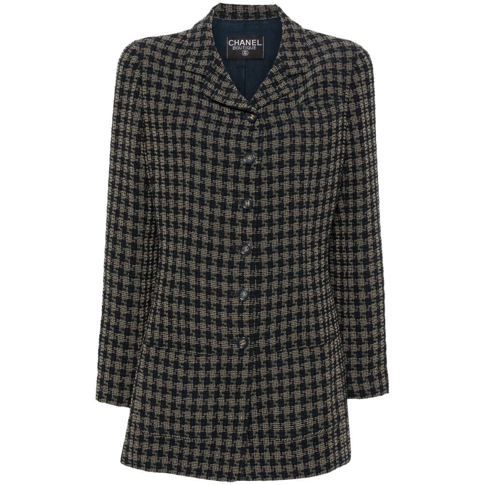 Chanel blue and beige checked blend wool 2000s jacket. Lapel collar, central buttoning, two frontal patch pockets, buttoned cuffs and slighlty padded shoulders.