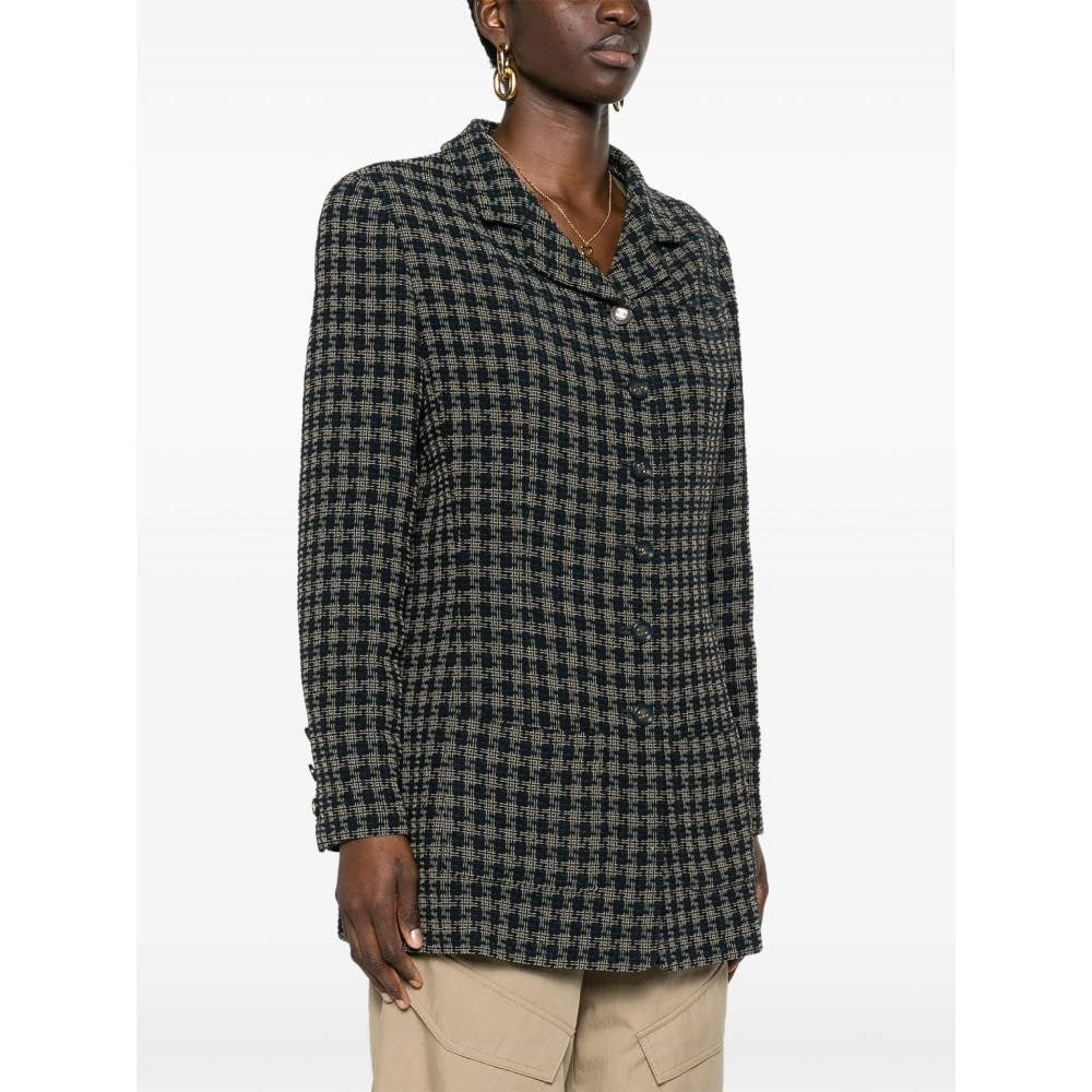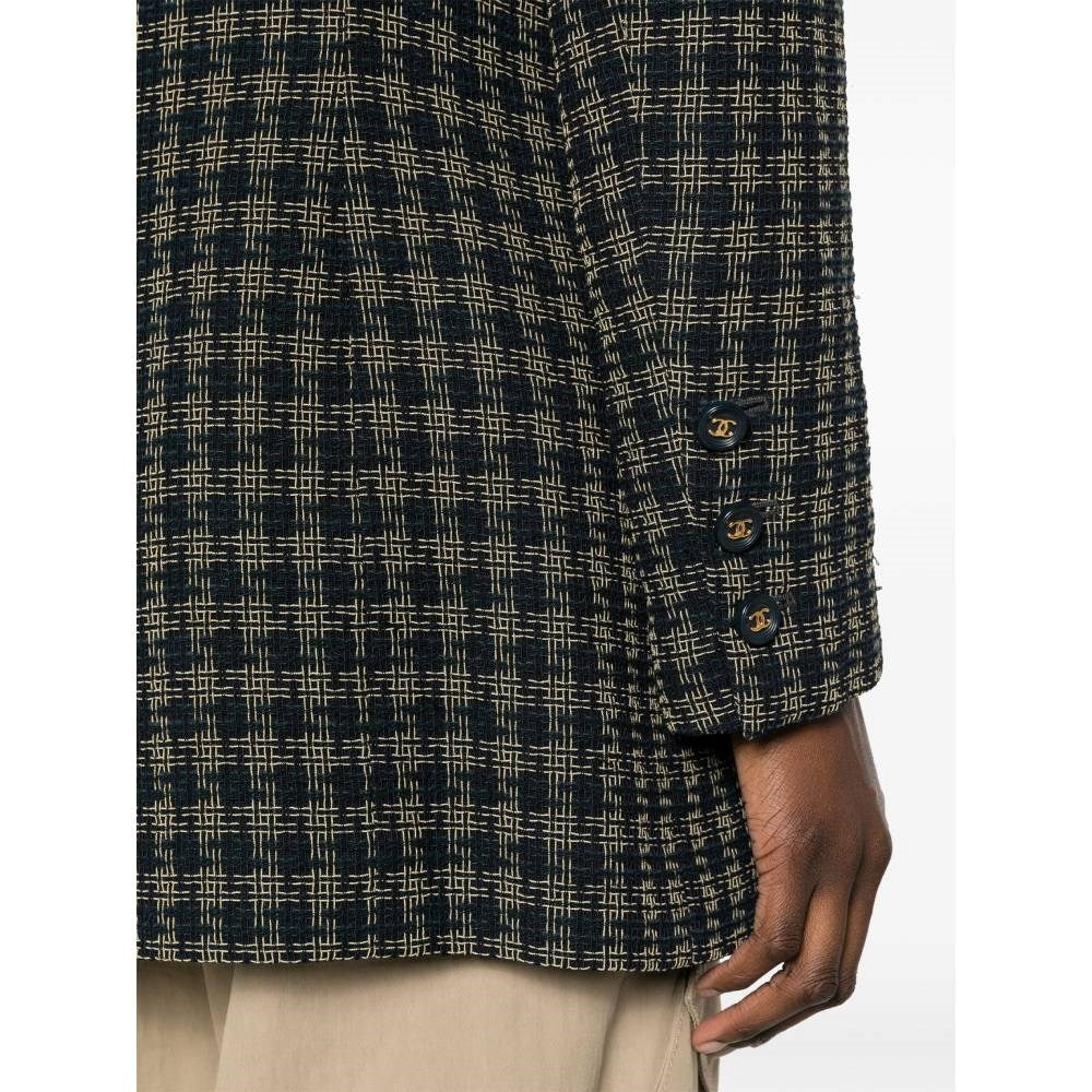 Chanel Blue and Beige Checked Wool Jacket - 2000s