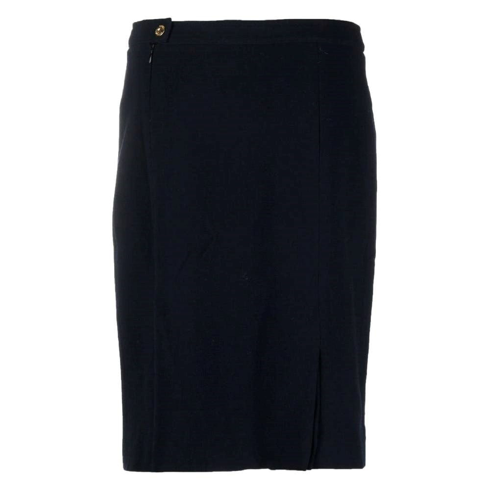 Chanel Dark Blue Wool Midi Skirt - '90s