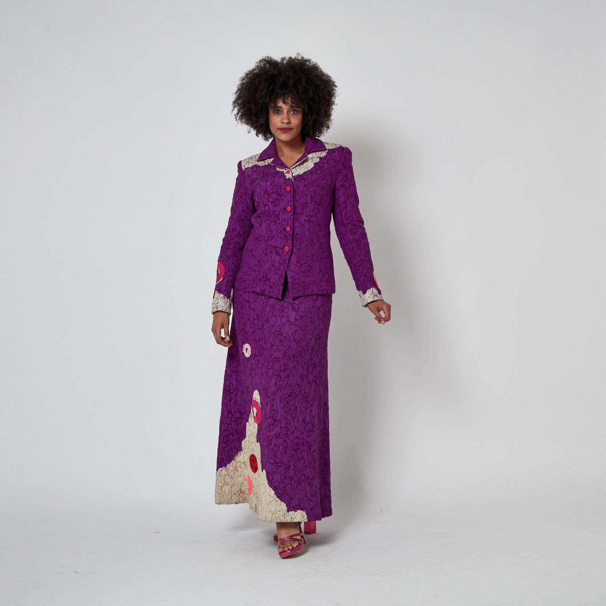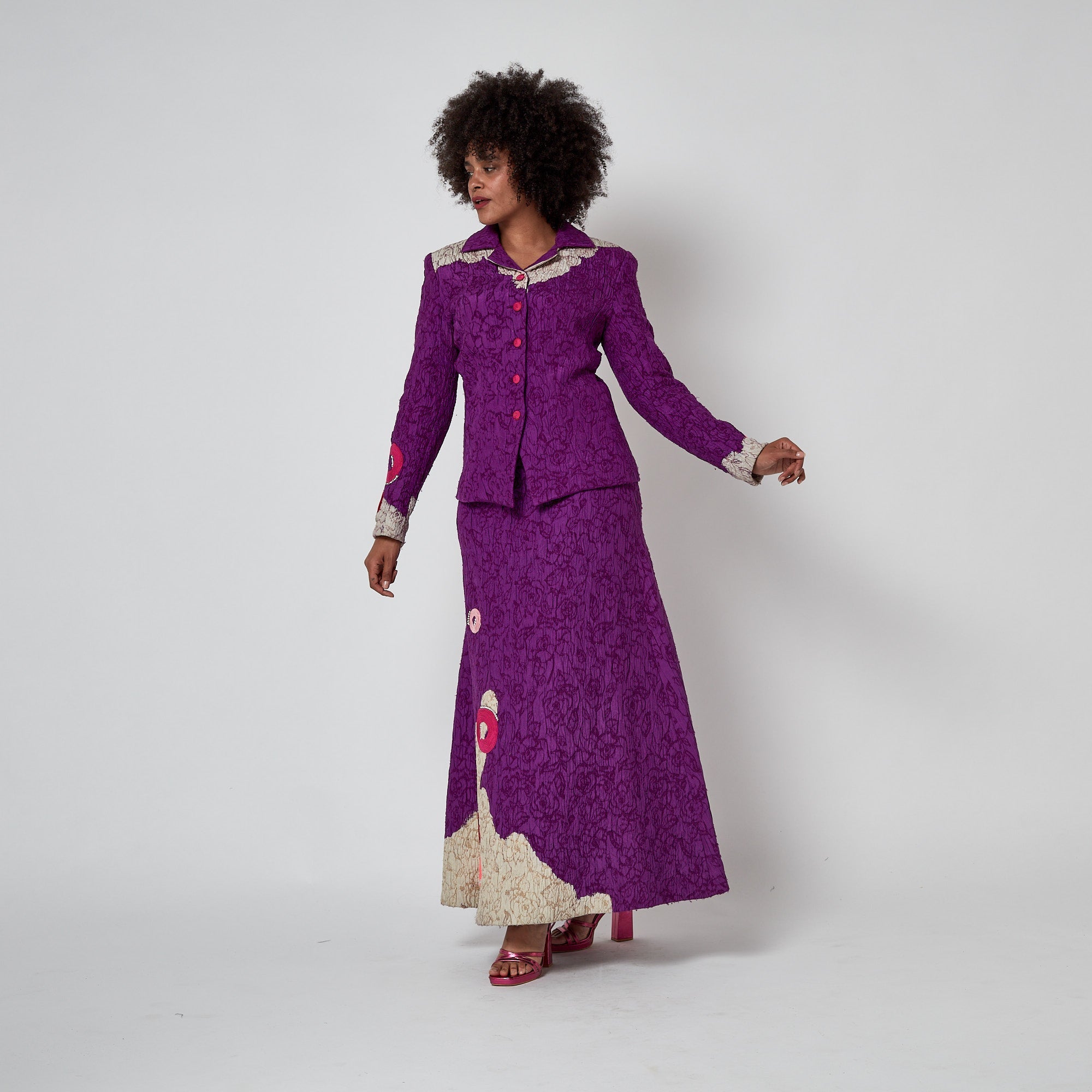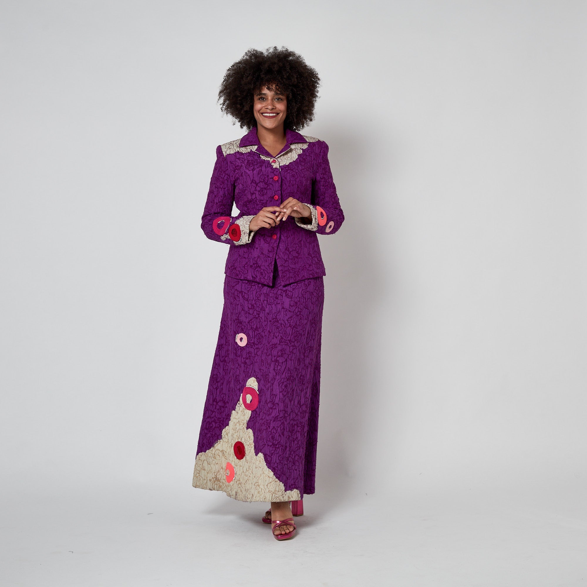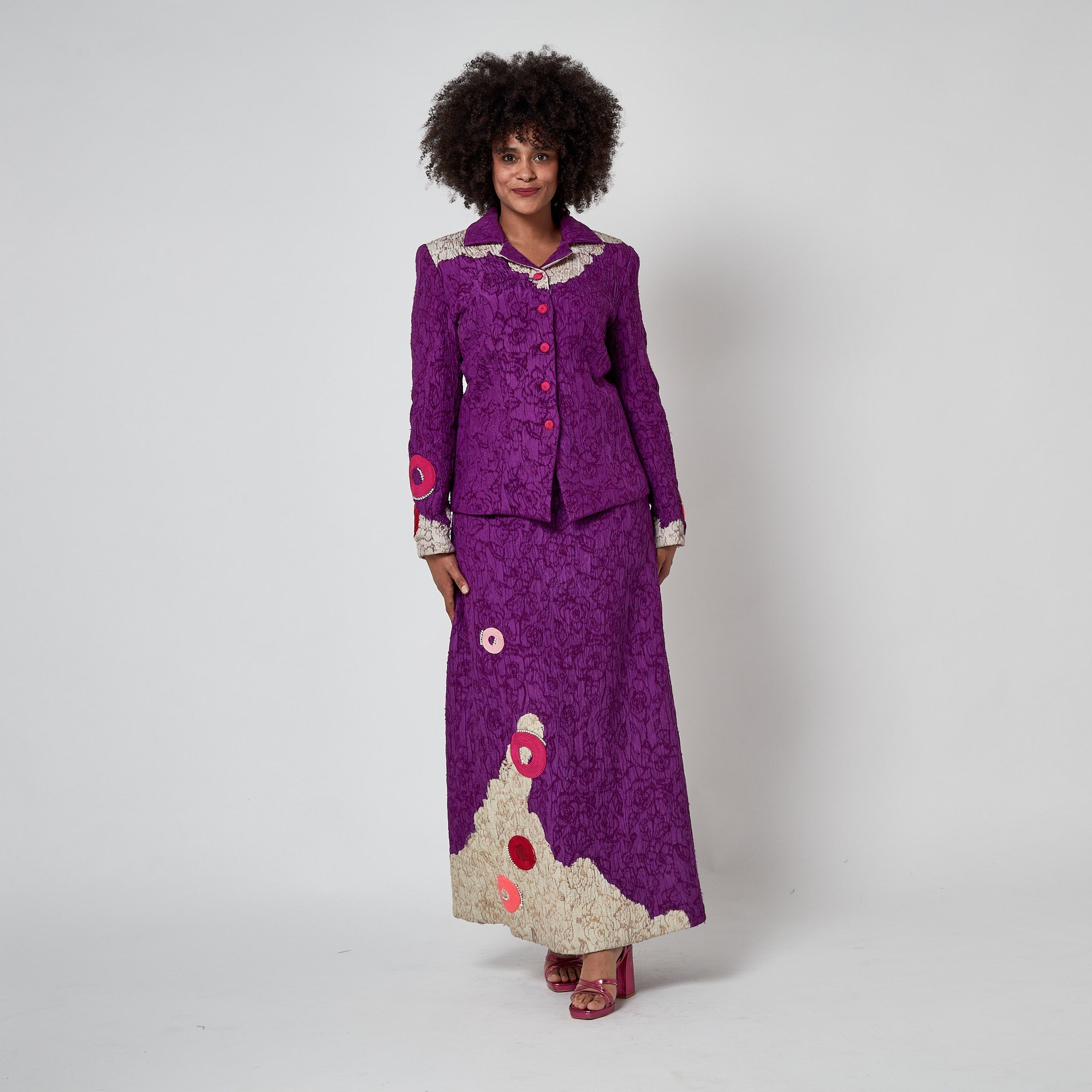 2000 Christian Lacroix Couture Purple Textured Skirt Suit
