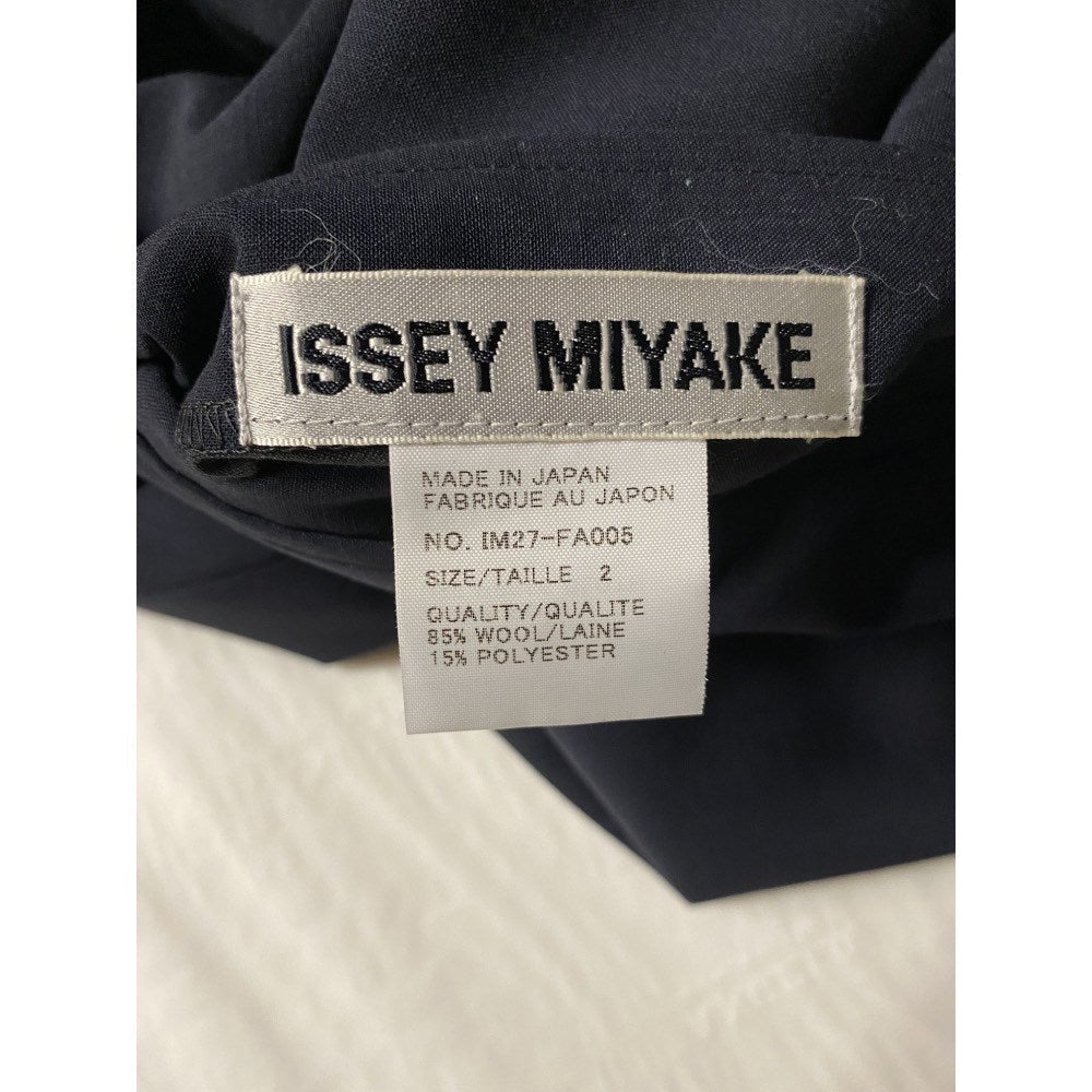 Issey Miyake dark blue and light blue wool reversible overcoat. Shawl collar, front buttoning and welt pockets.