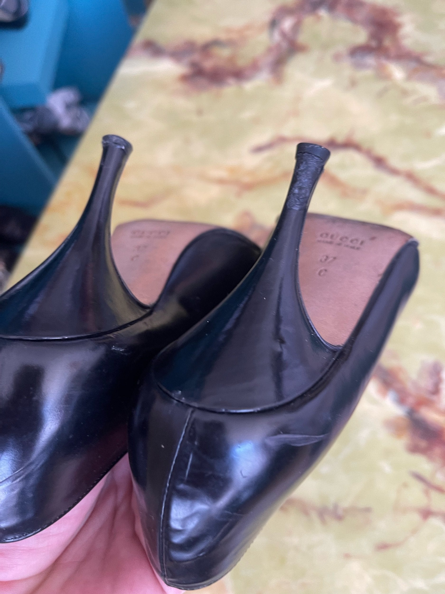 These court shoes embody sleek, timeless elegance with a pointed toe and structured silhouette — perfect for both collectors and those looking to add a touch of vintage sophistication to their wardrobe.